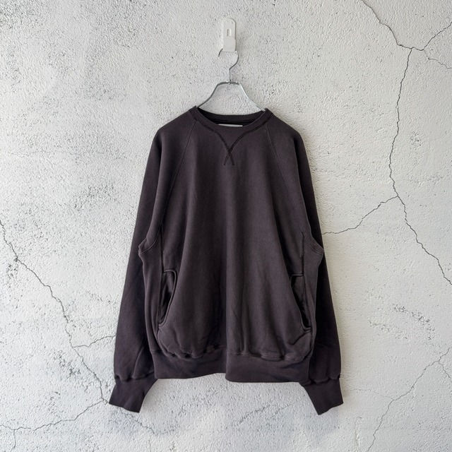 SUGARHILL / CREW NECK SWEAT PULLOVER 製品染めを施し、洗いをかけたヴィンテージ感のある風合いが特徴のスウェット 程よく肉厚でタフな生地感です ラグランスリーブ 身幅に適度にゆとりを持たせ、着丈は少しすっきりめのバランスの良いシルエット ウエストのポケットも特徴的です 着ていくにつれて生地がなじみ、色落ちや風合いの経年変化も楽しめます 当店ではsize 2をセレクトしています 【注意事項】 ※製品染めの加工を施しているため、着用の際、摩擦による色移りが生じることがございます。また、洗濯の際に色落ちや色移りが起こりますので、単独での手洗いをお願いいたします。 ※撮影時の光の加減やページの閲覧環境により、商品画像と実物とで色味が異なる場合がございます。あらかじめご了承ください。 ※お客様都合による返品はお受けできません。あらかじめご了承ください。 ブランド SUGARHILL シュガーヒル シーズン 25AW 品番 25330902 素材 COTTON 100% サイズ 2 : 身幅64cm 裄丈95cm 着丈66.5cm