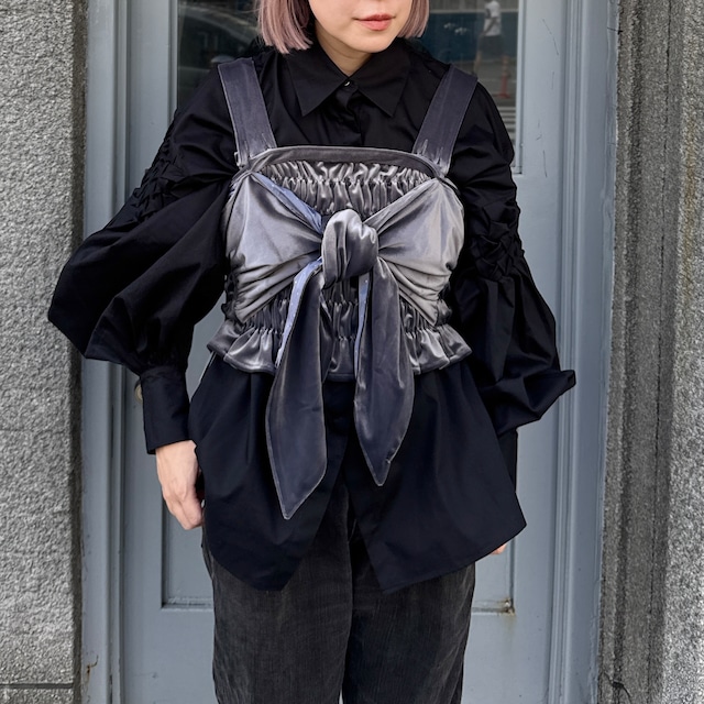 Create Clair / Shirring ribbon bustier / Gray-velor