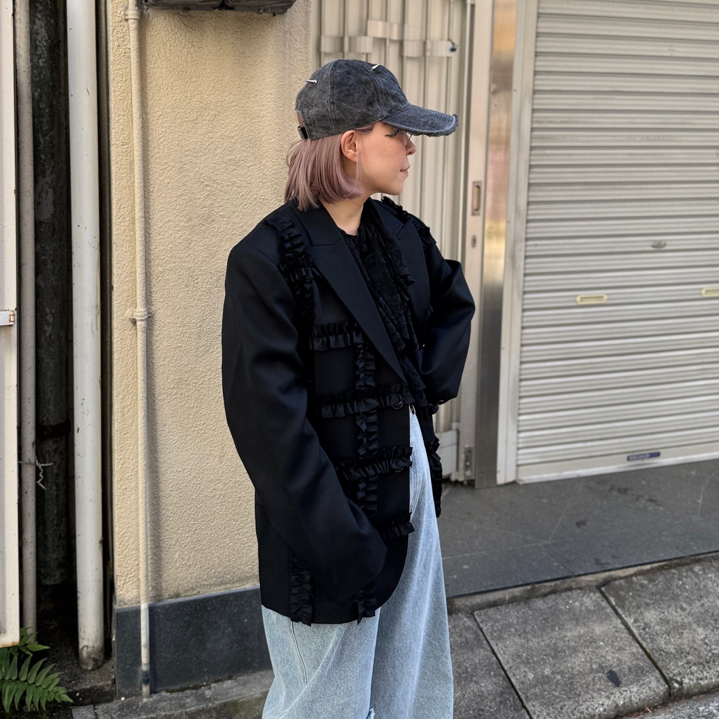 VIVIANO MENS / Ruffle Blazer / BLACK