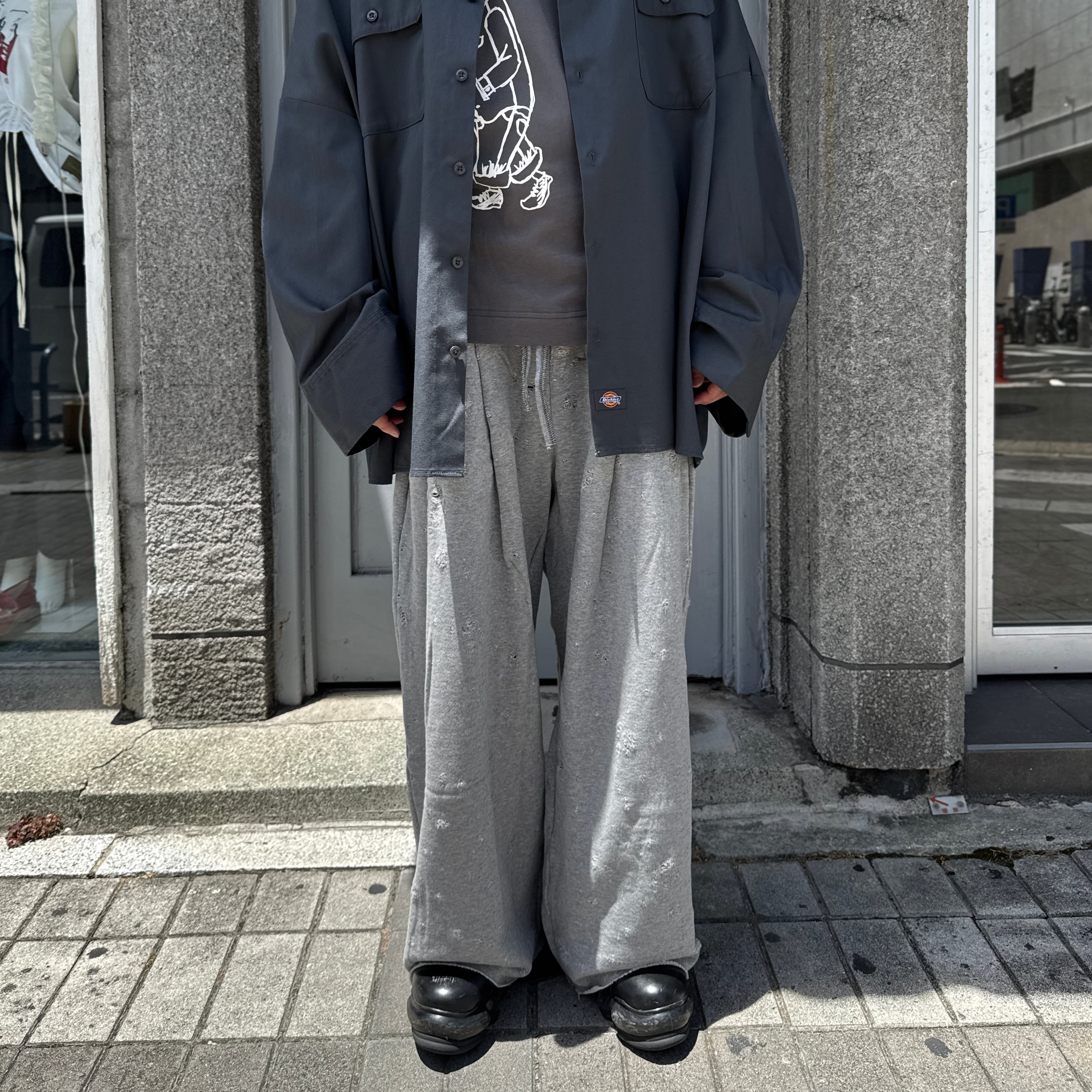 ダメージ加工を施したスウェットのBAGGY