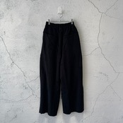 深い2タックを入れ、中縫いを長めに入れることによって腰回りをすっきりとさせながら大胆な太さを出しています