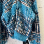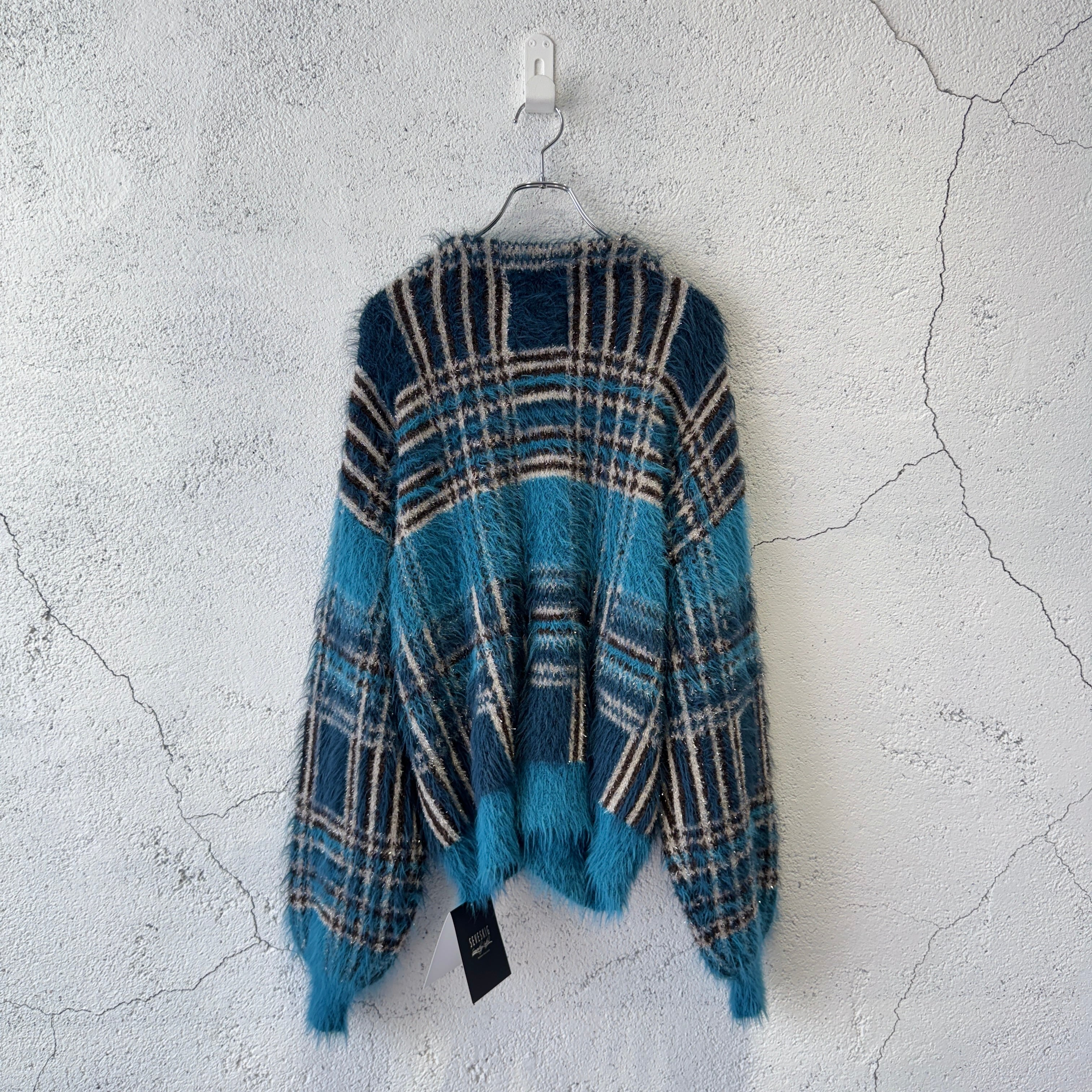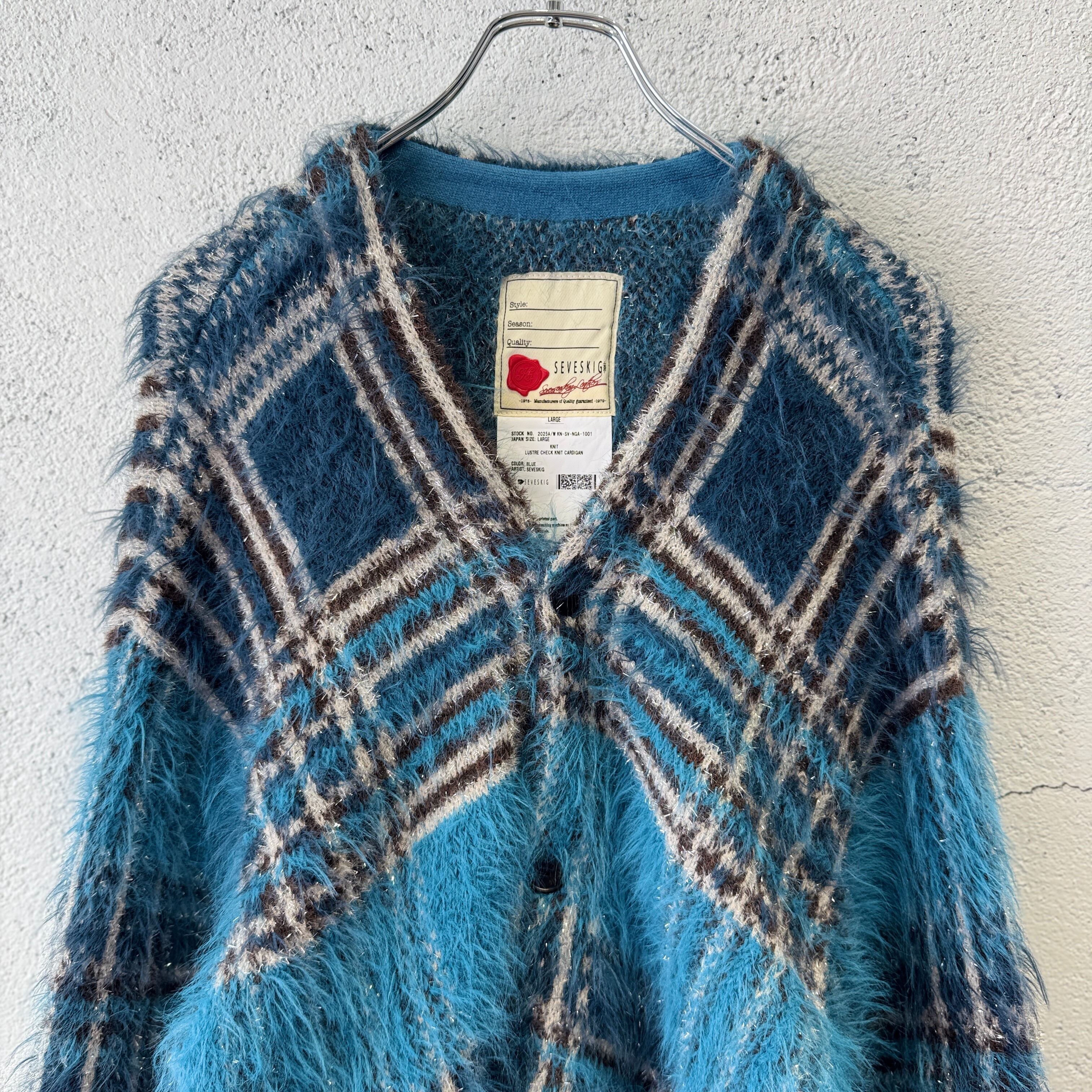 SEVESKIG / Lustre Check Knit Cardigan / BLUE