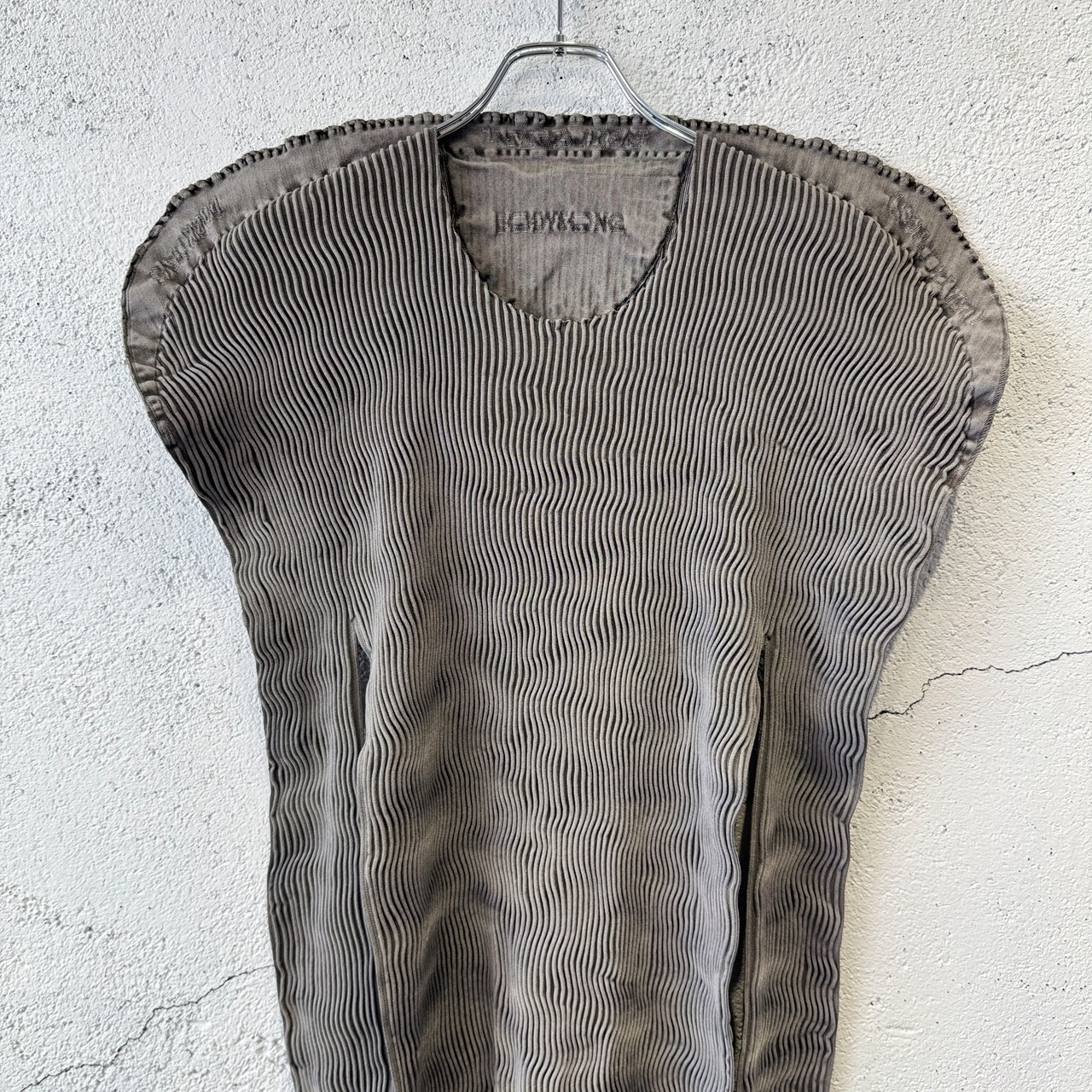 「大量生産され、破棄される運命にあるものは出来る限り使っていきたい」という想いから、工場で残っている糸のみで仕上げたニットや、端切れをデザインに取り入れたアイテムも展開し、普段使わないものに焦点を当てた服作りが、ボディソングの魅力のひとつとなっている。