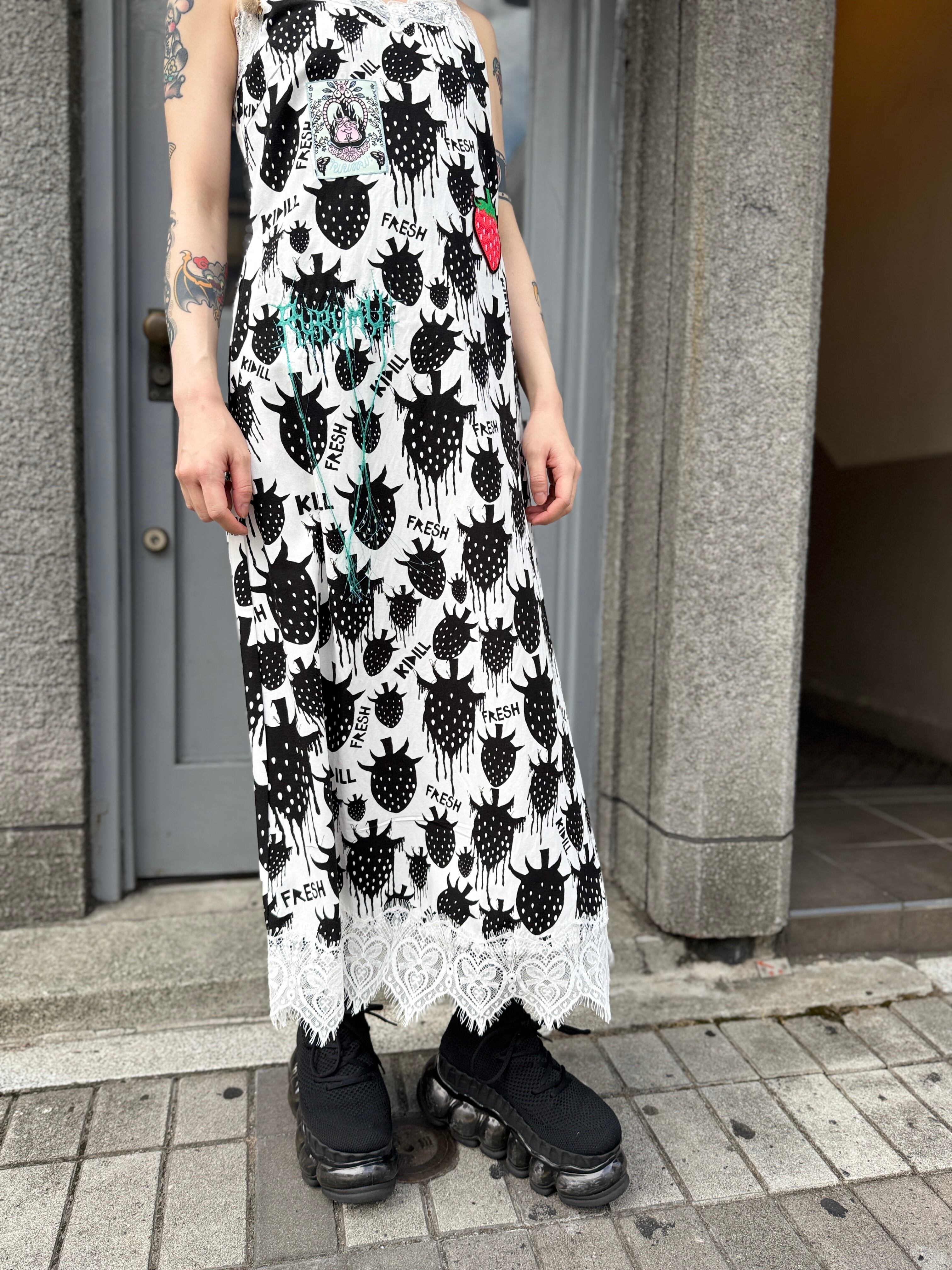 KIDILL / STRAWBERRY RIOT GRRRL DRESS rurumu: / WHITE × BLACK STRAWBERRY