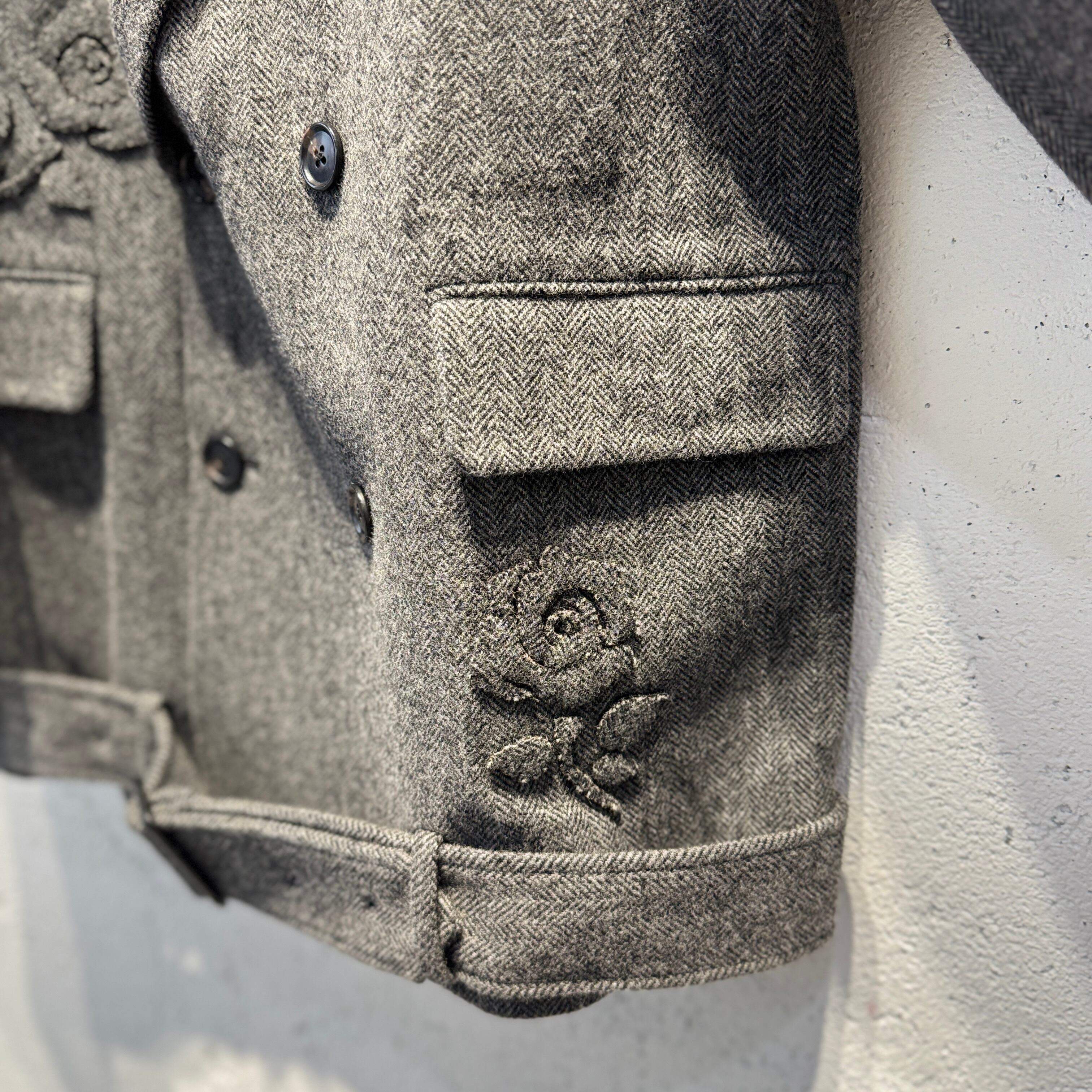 薔薇のアップリケが全体に施されたヘリンボーンのオーバーサイズのジャケット
