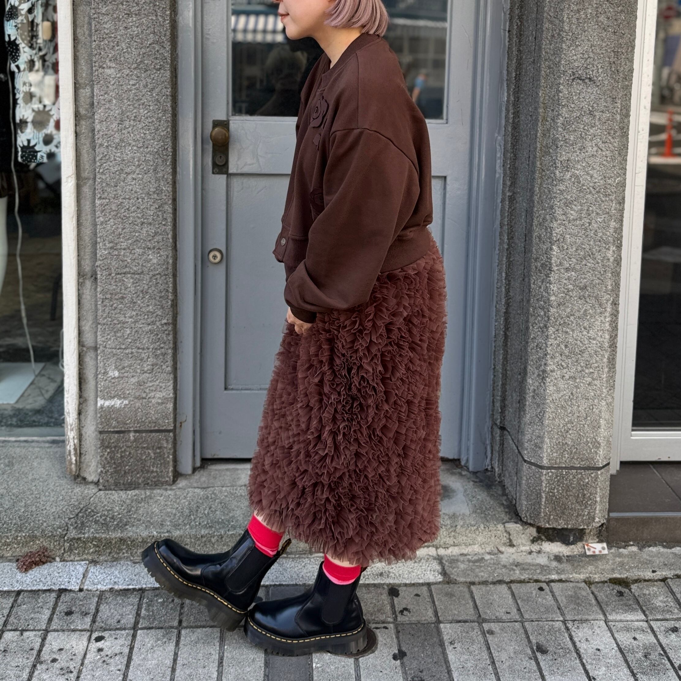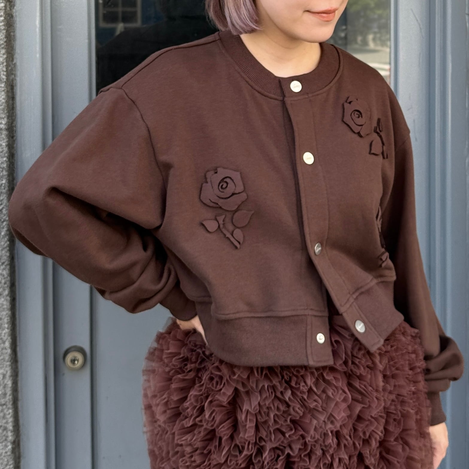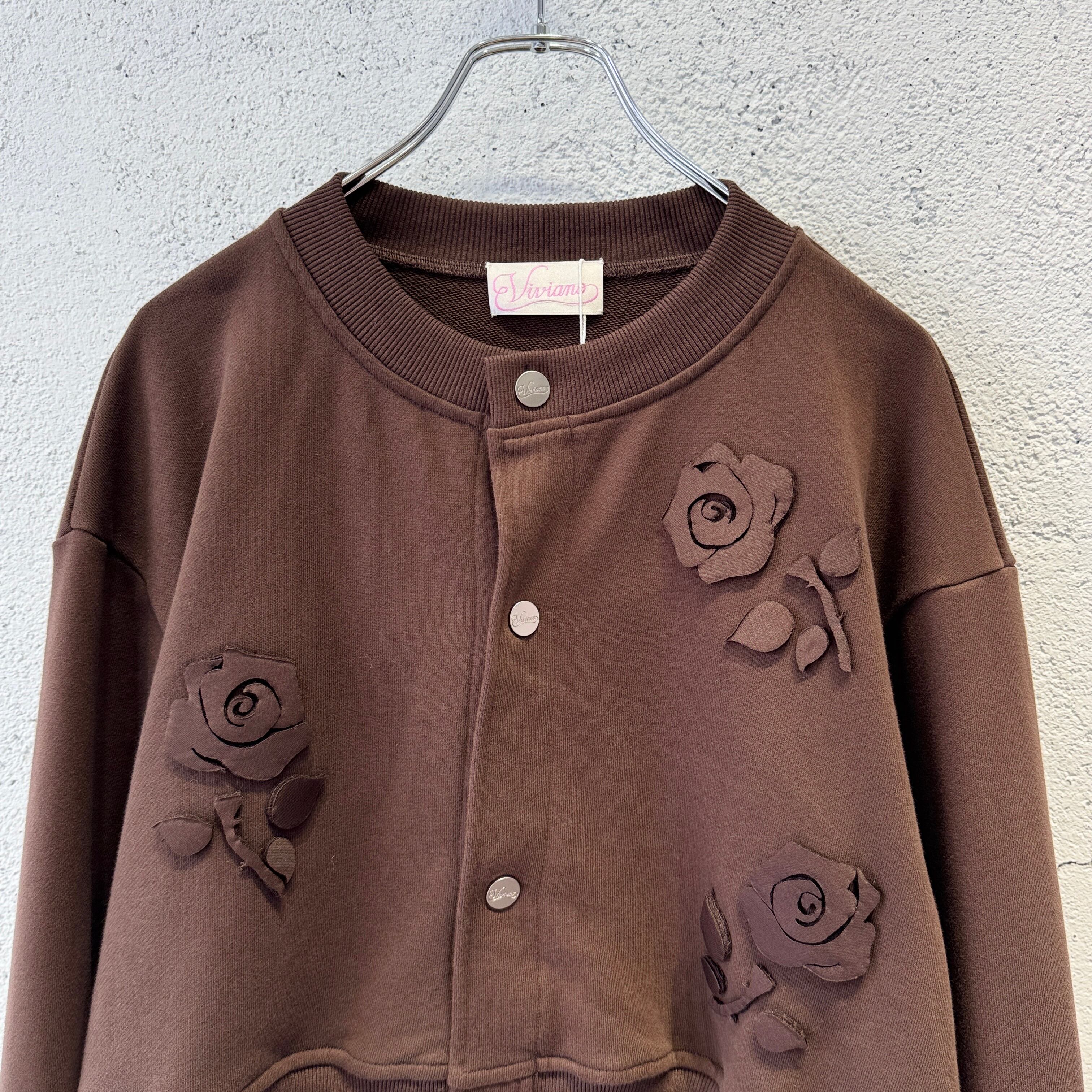 VIVIANO / Flower Applique Jersey Cardigan / BROWN