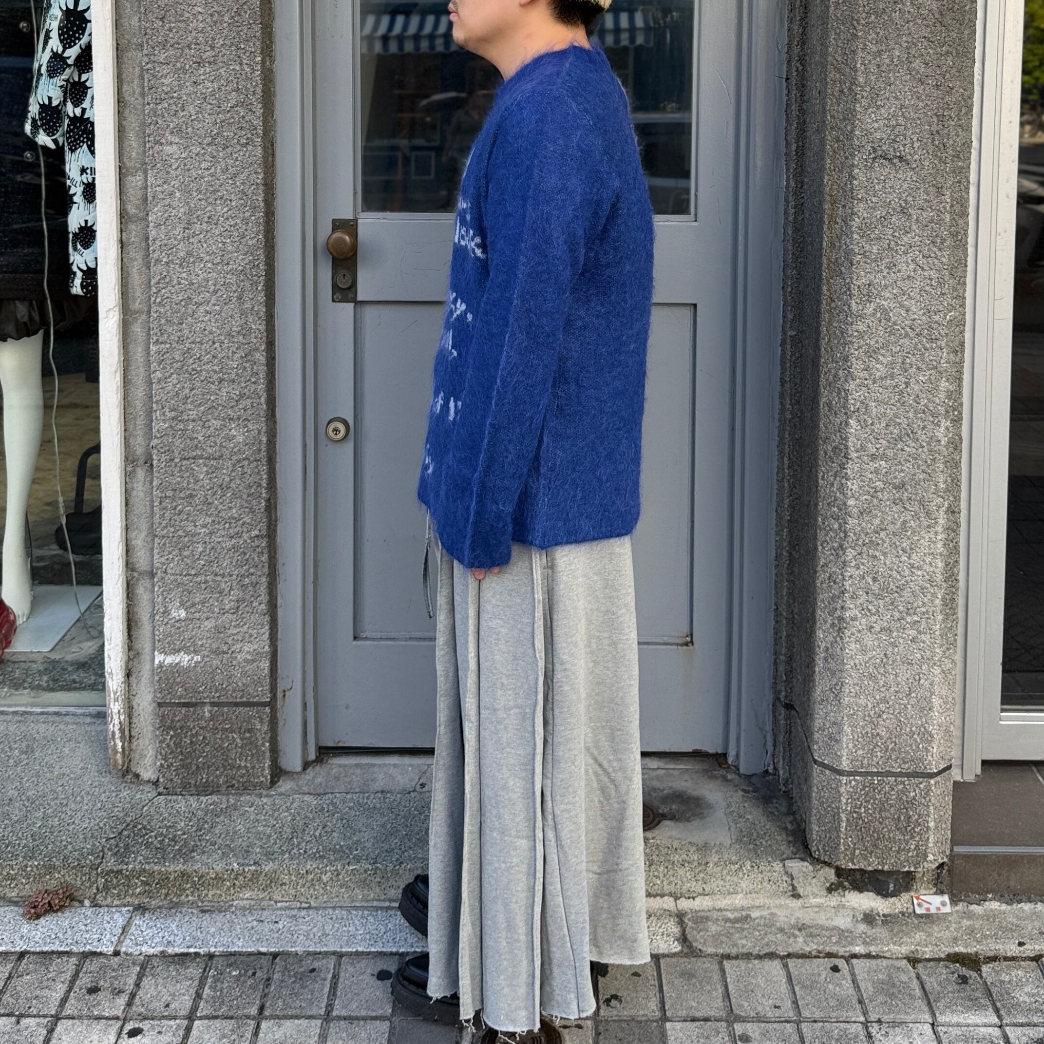デザイナーによる手描きのテキストを編みで表現したモヘヤニット