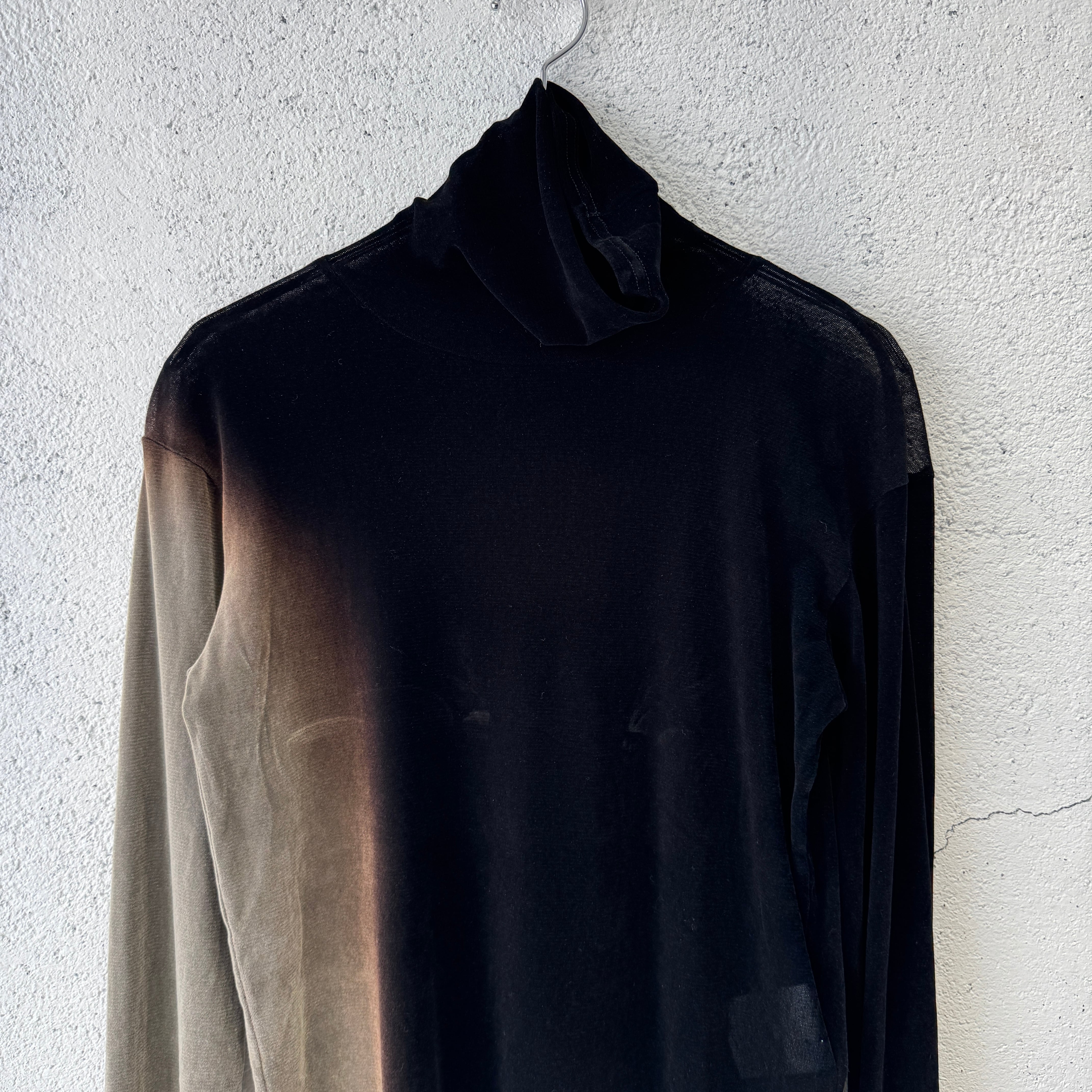 チュール地にフロッキープリントを施した、毛足のあるカットソーのタートルネック。