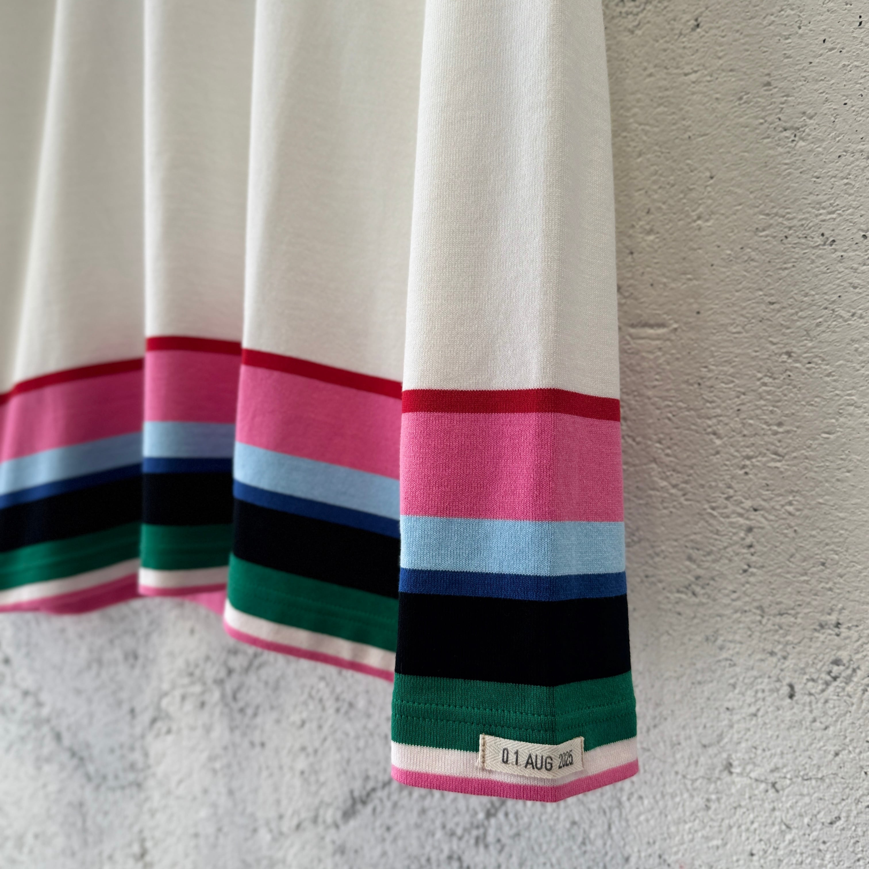 裾周りだけマルチボーダーになったタートルネックのカットソー