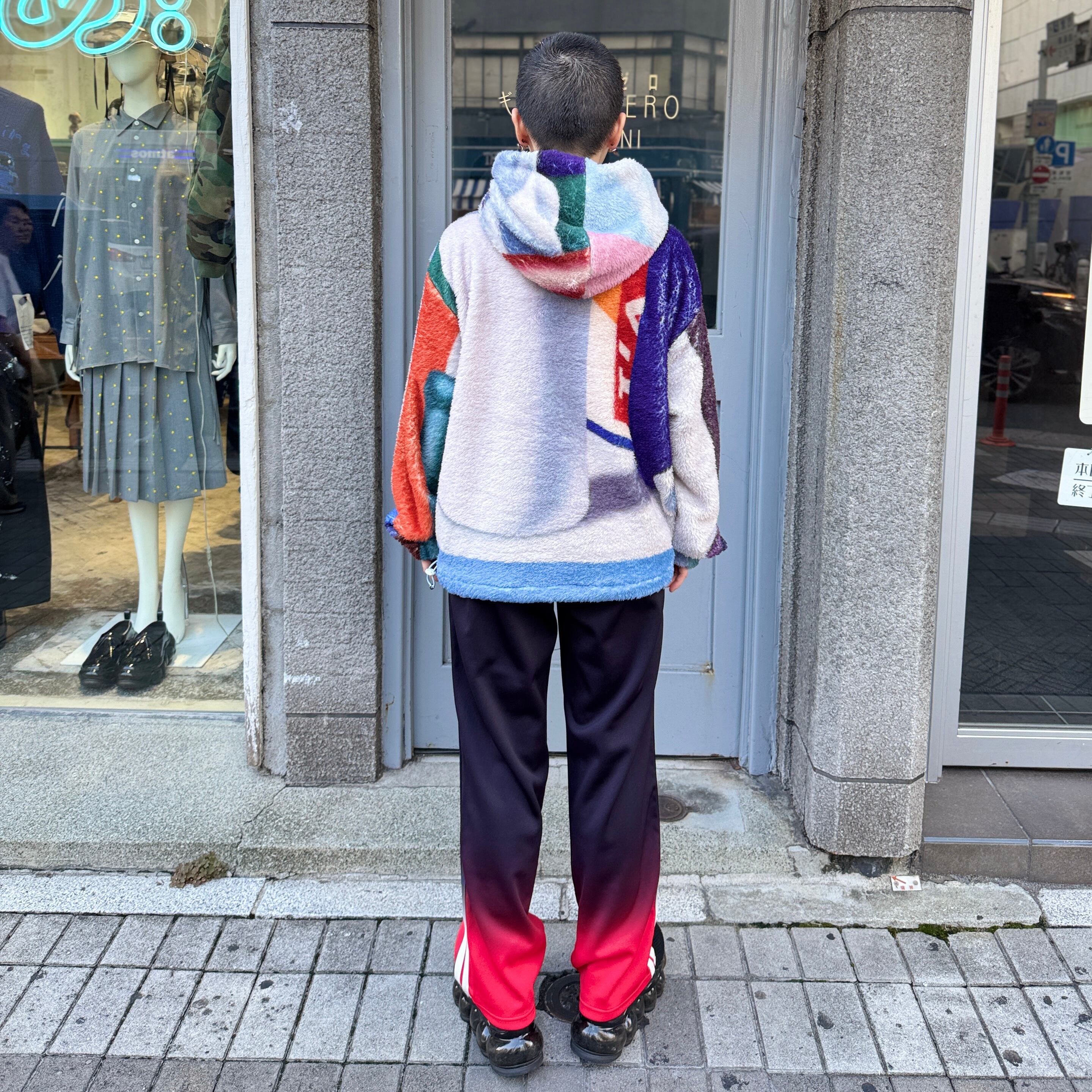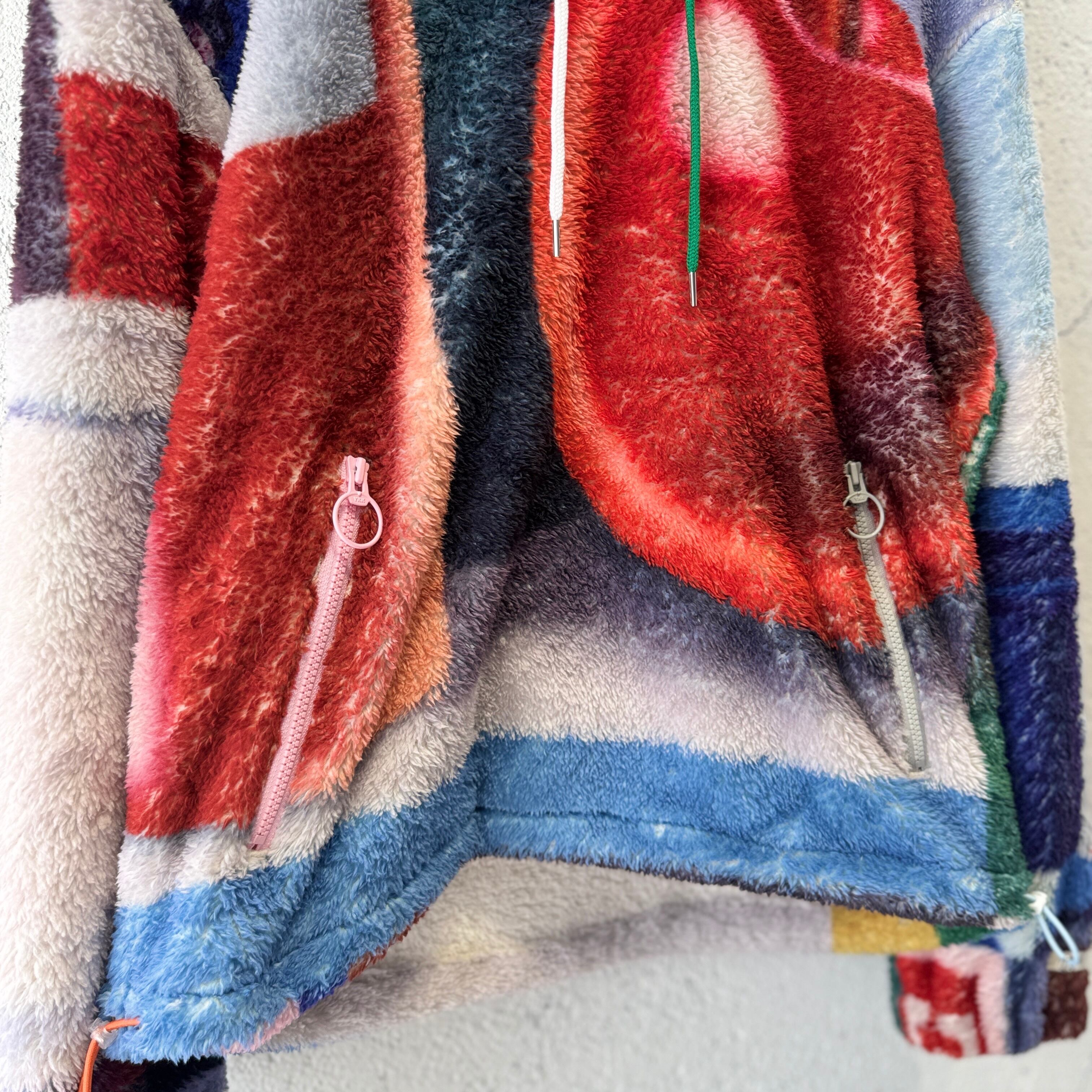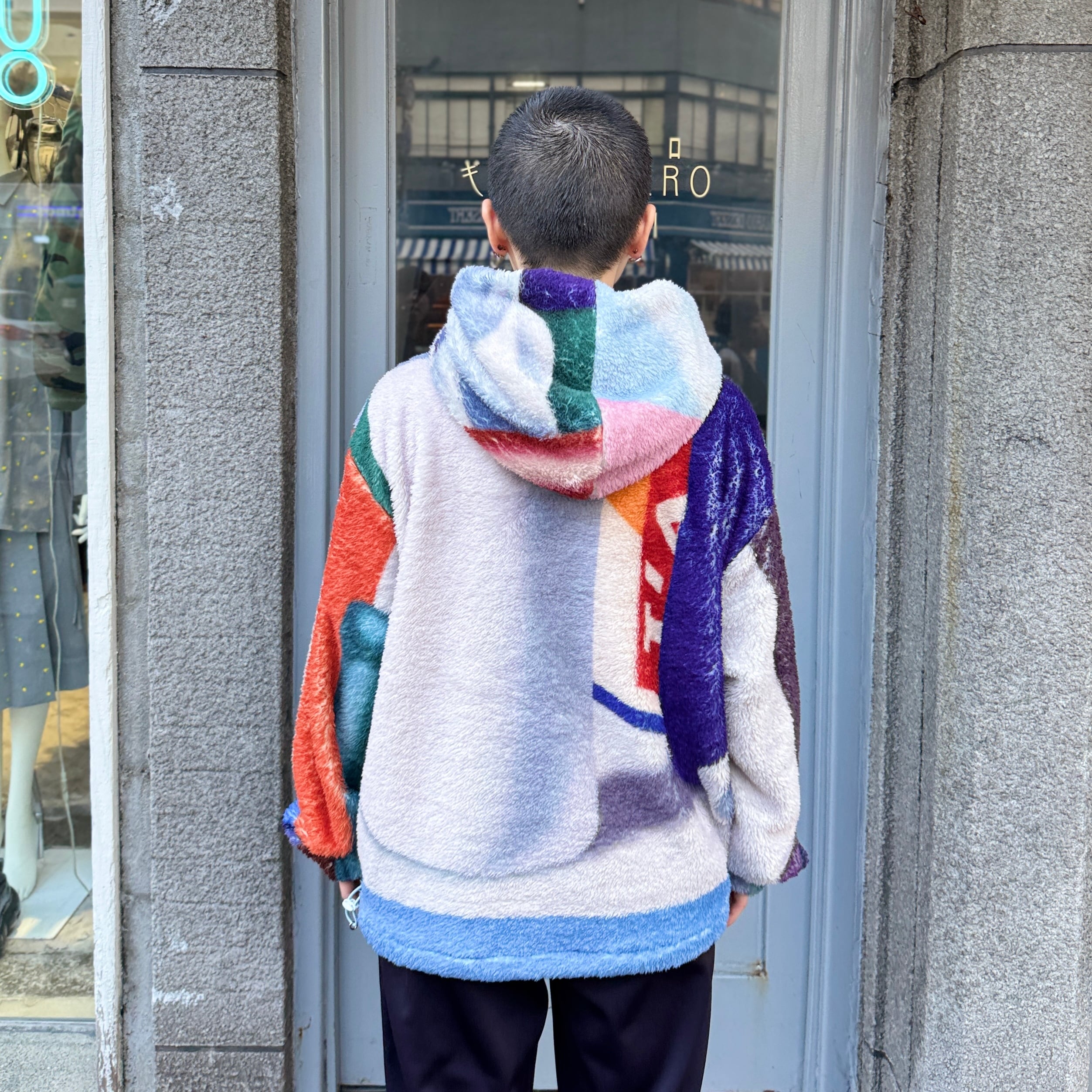 色鮮やかなグラフィックをプリントしたフリースのフーディー