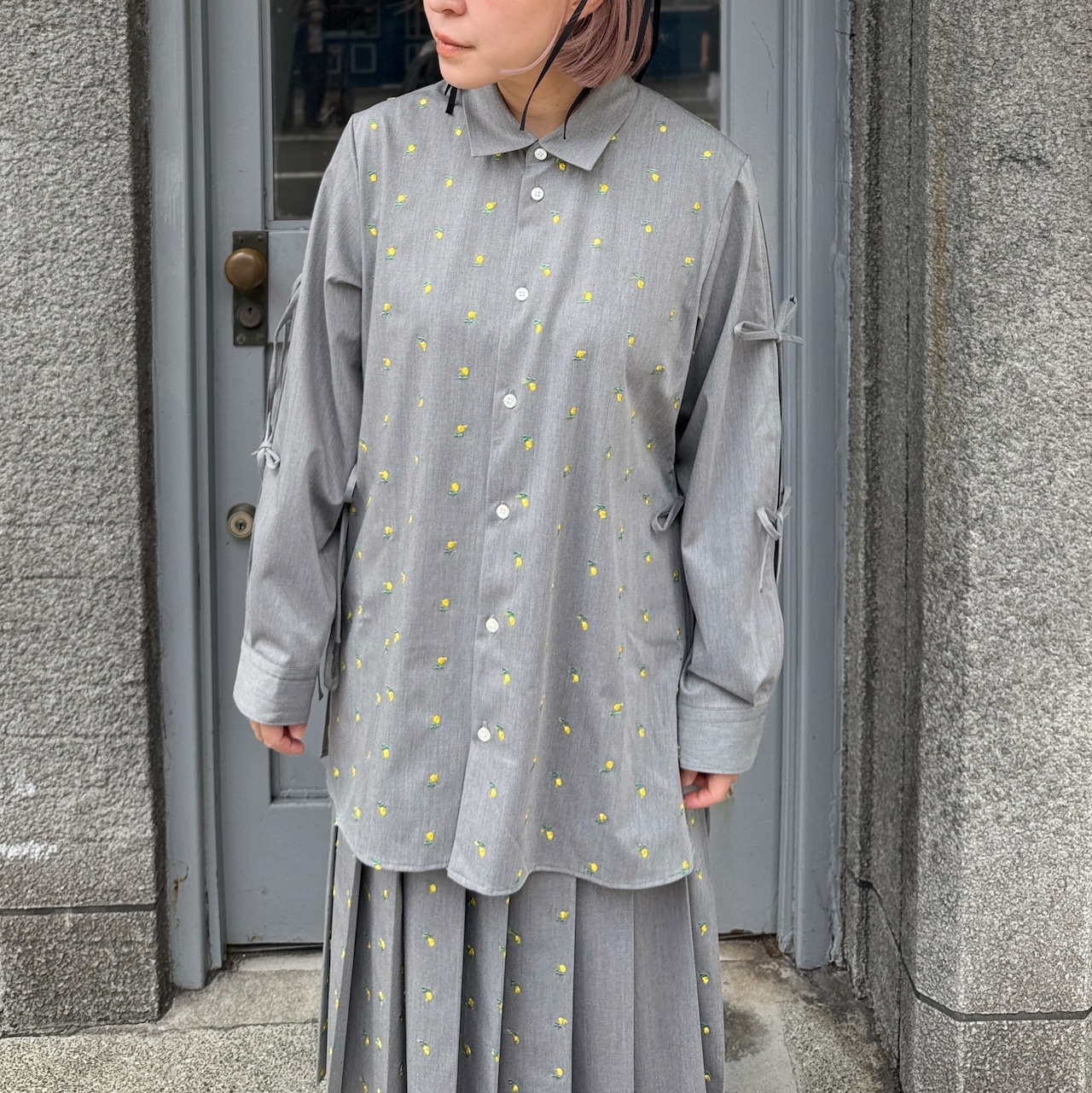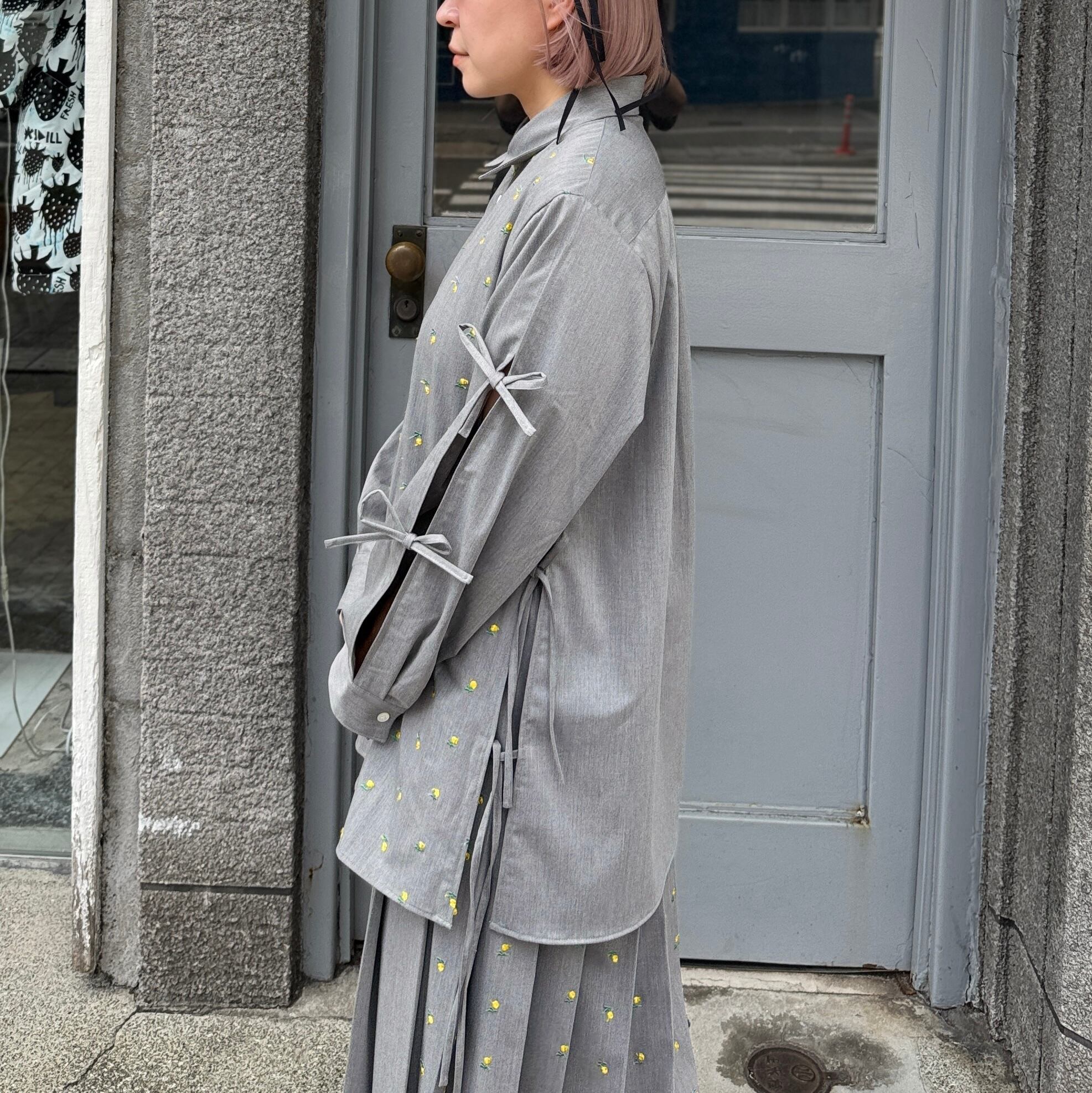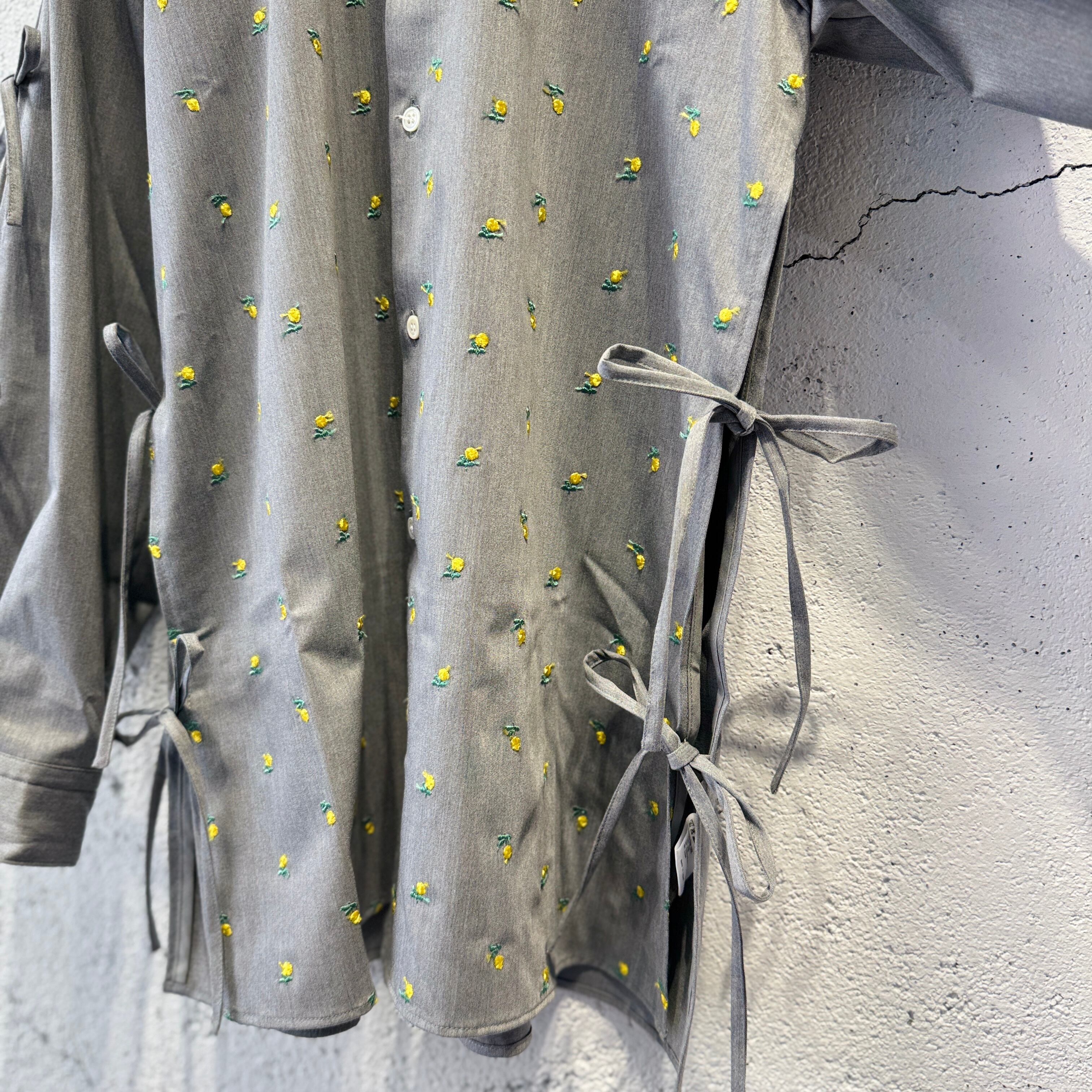 naokitomizuka / Flower embroidery ribbon blouse / l.gray