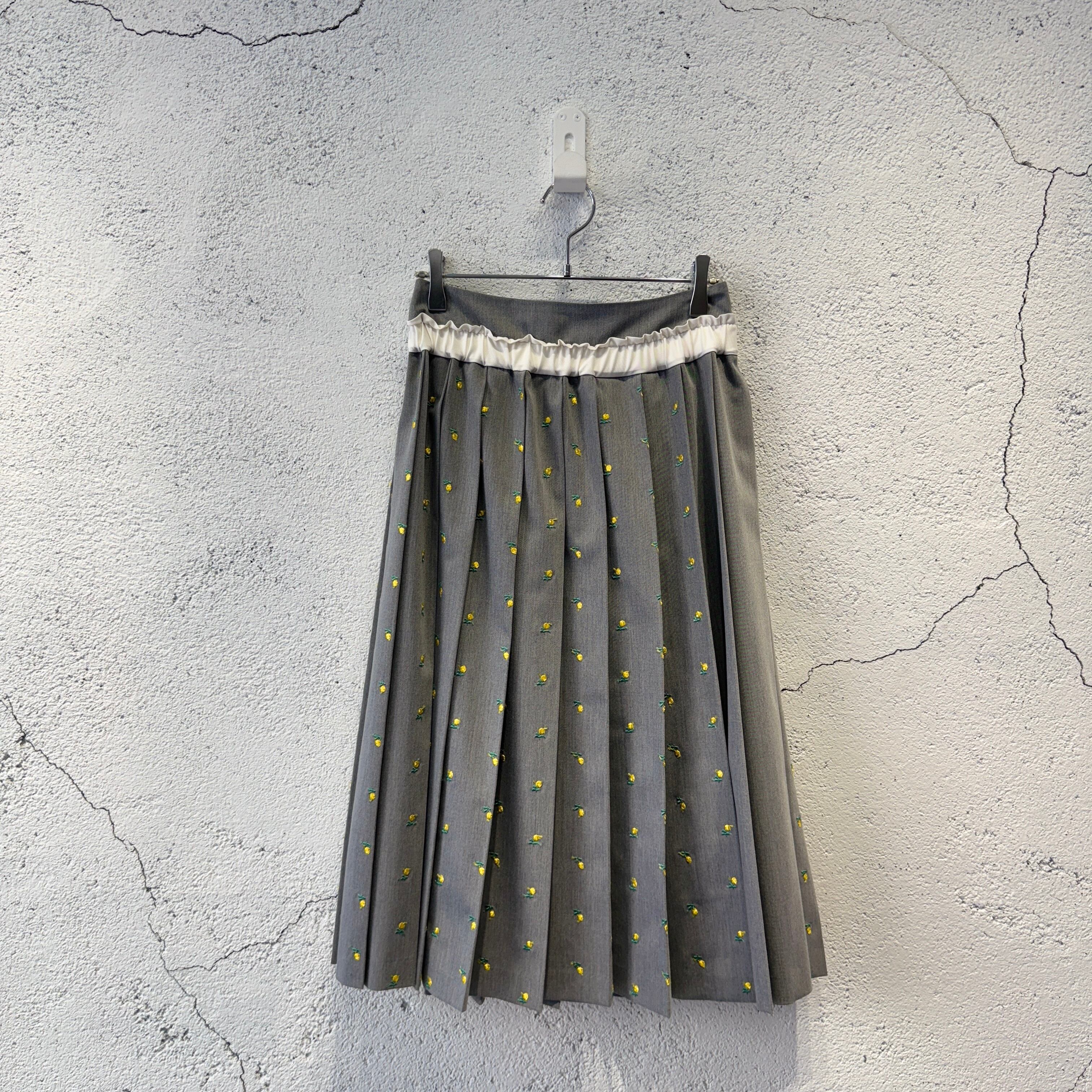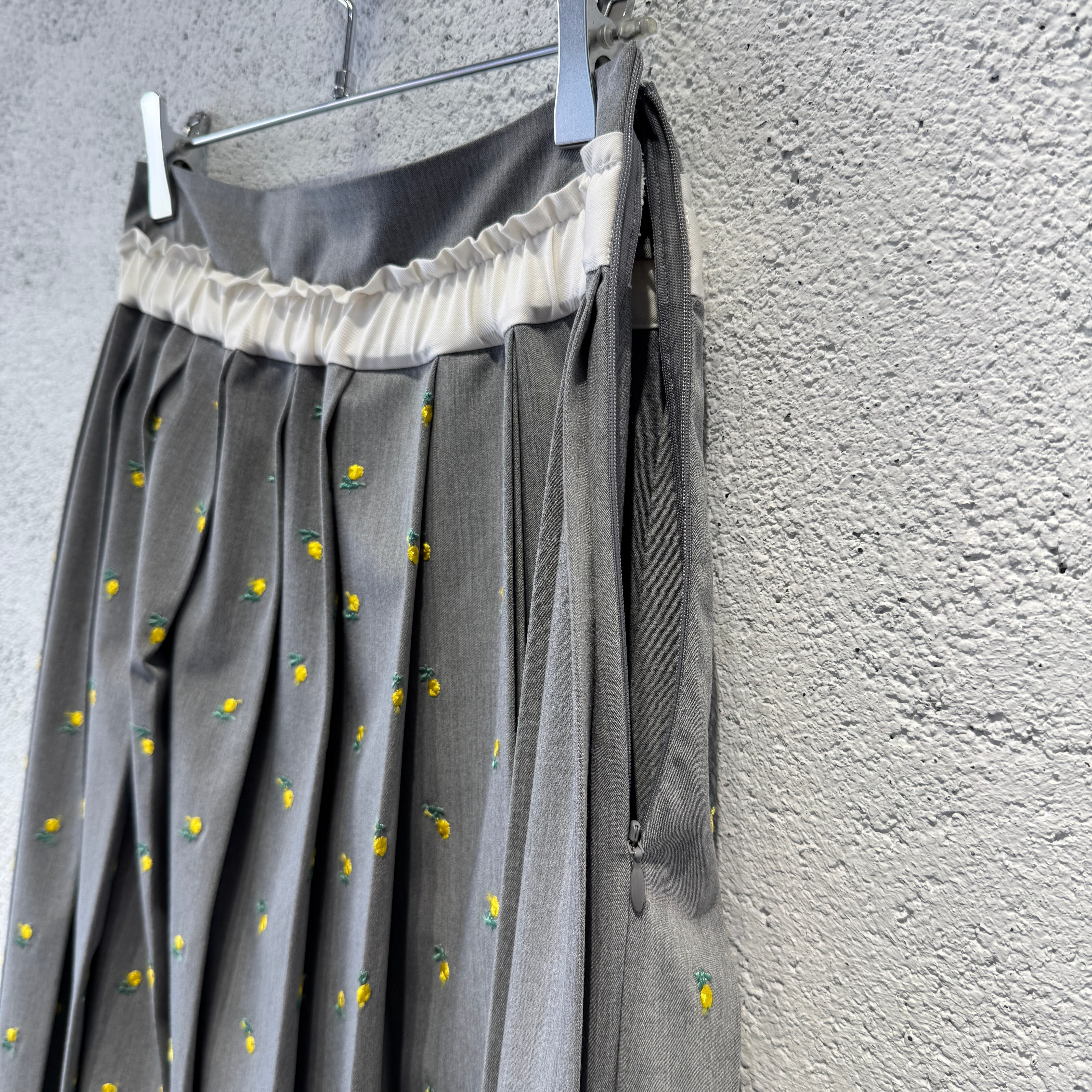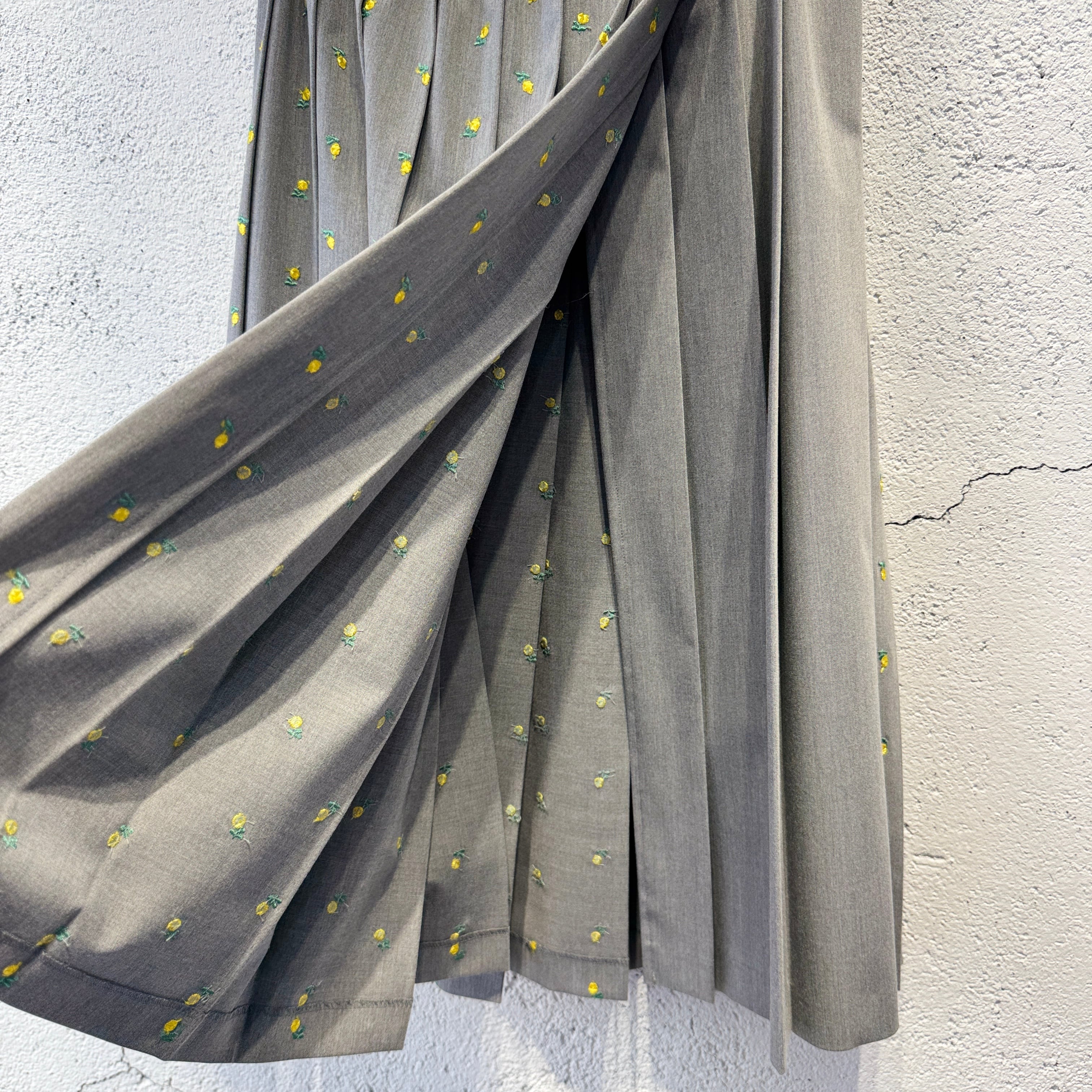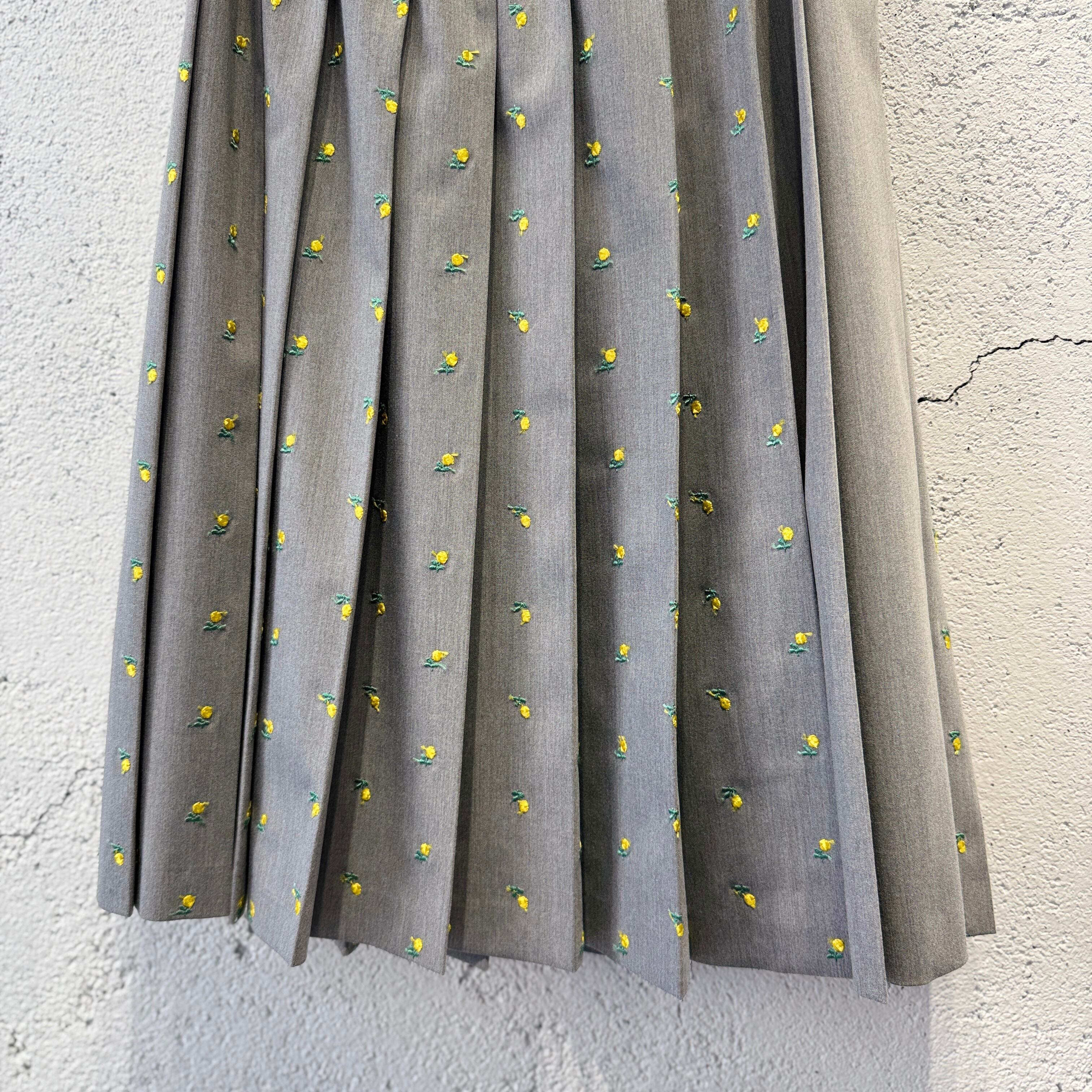 naokitomizuka / Flower embroidery pleated skirt / l.gray
