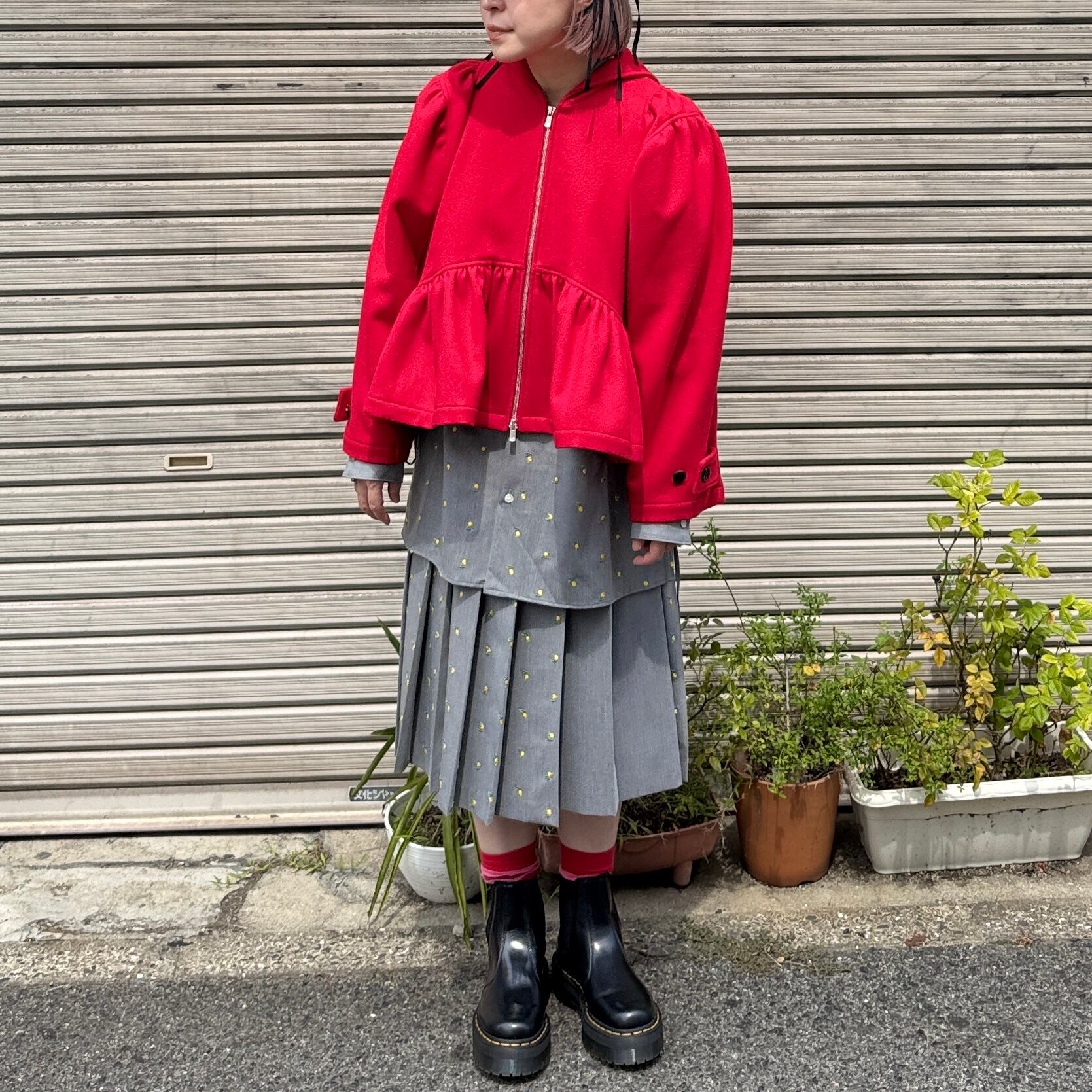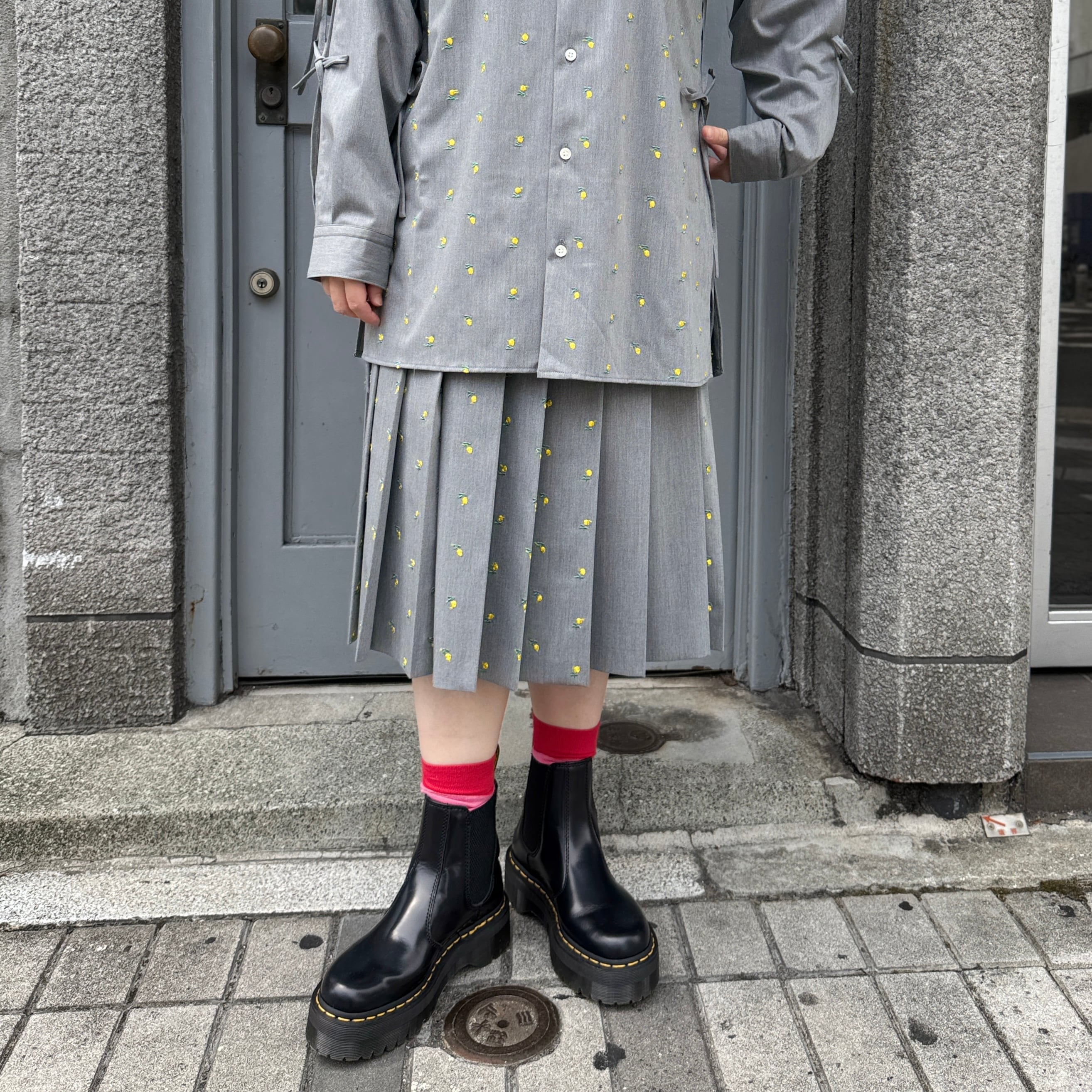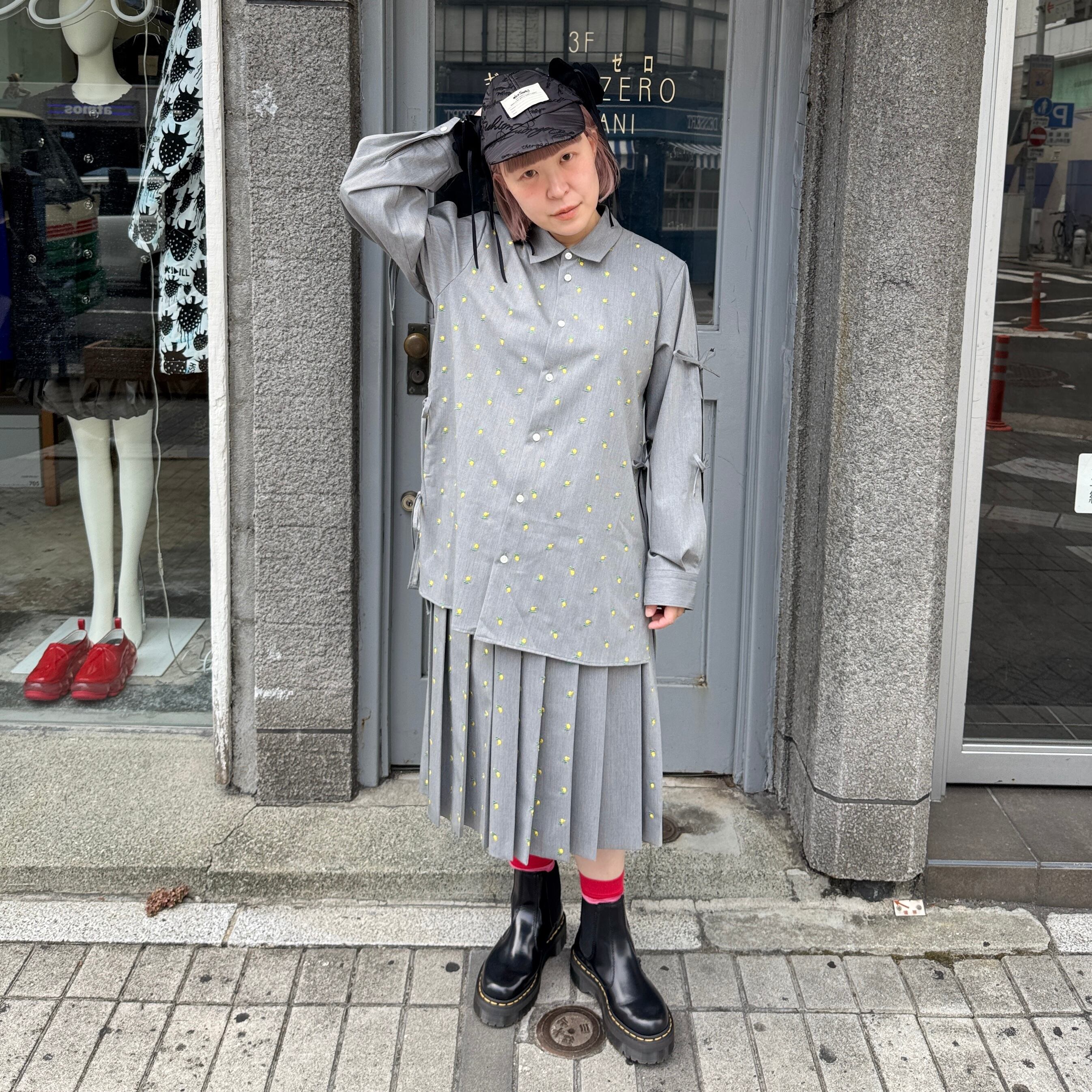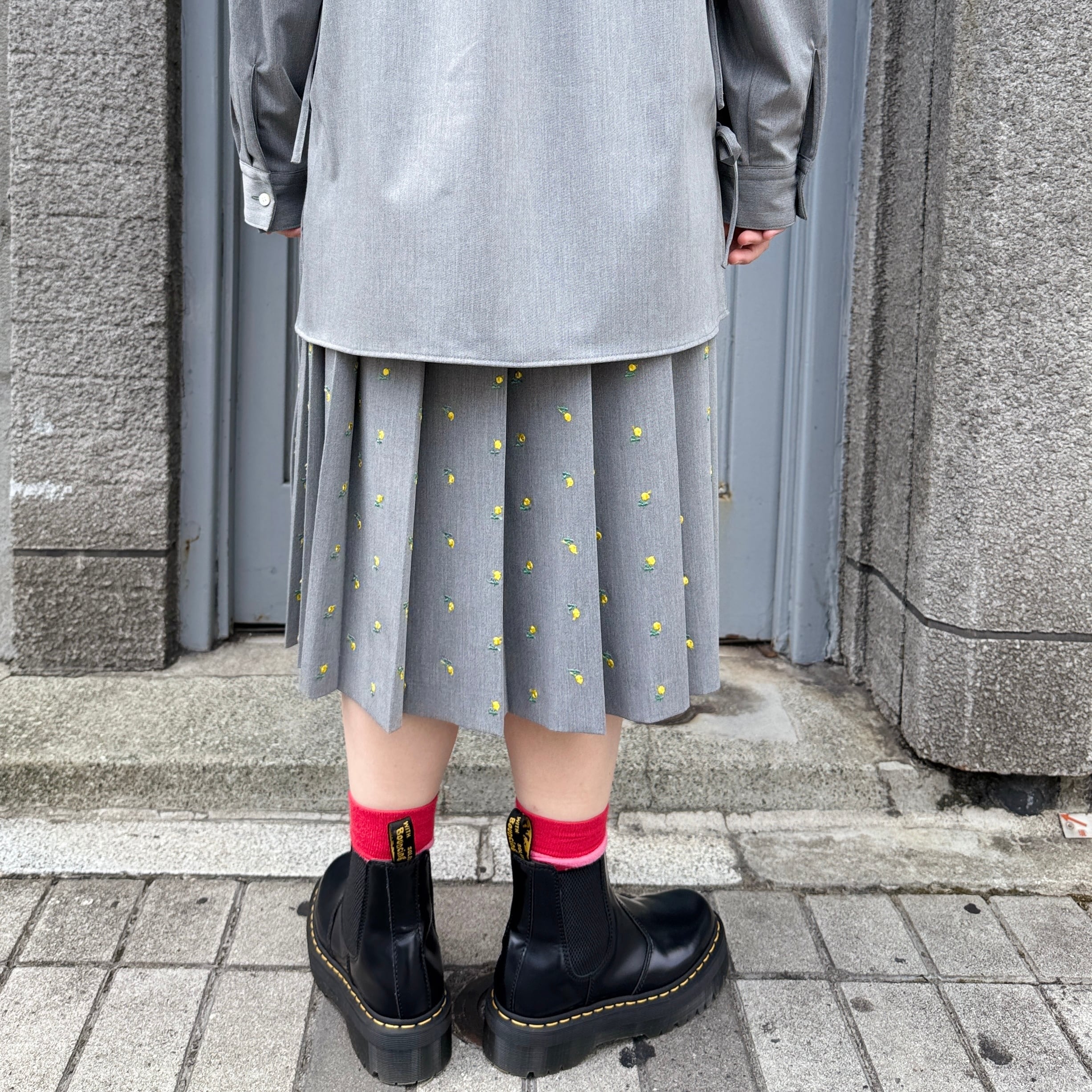 naokitomizuka / Flower embroidery pleated skirt / l.gray