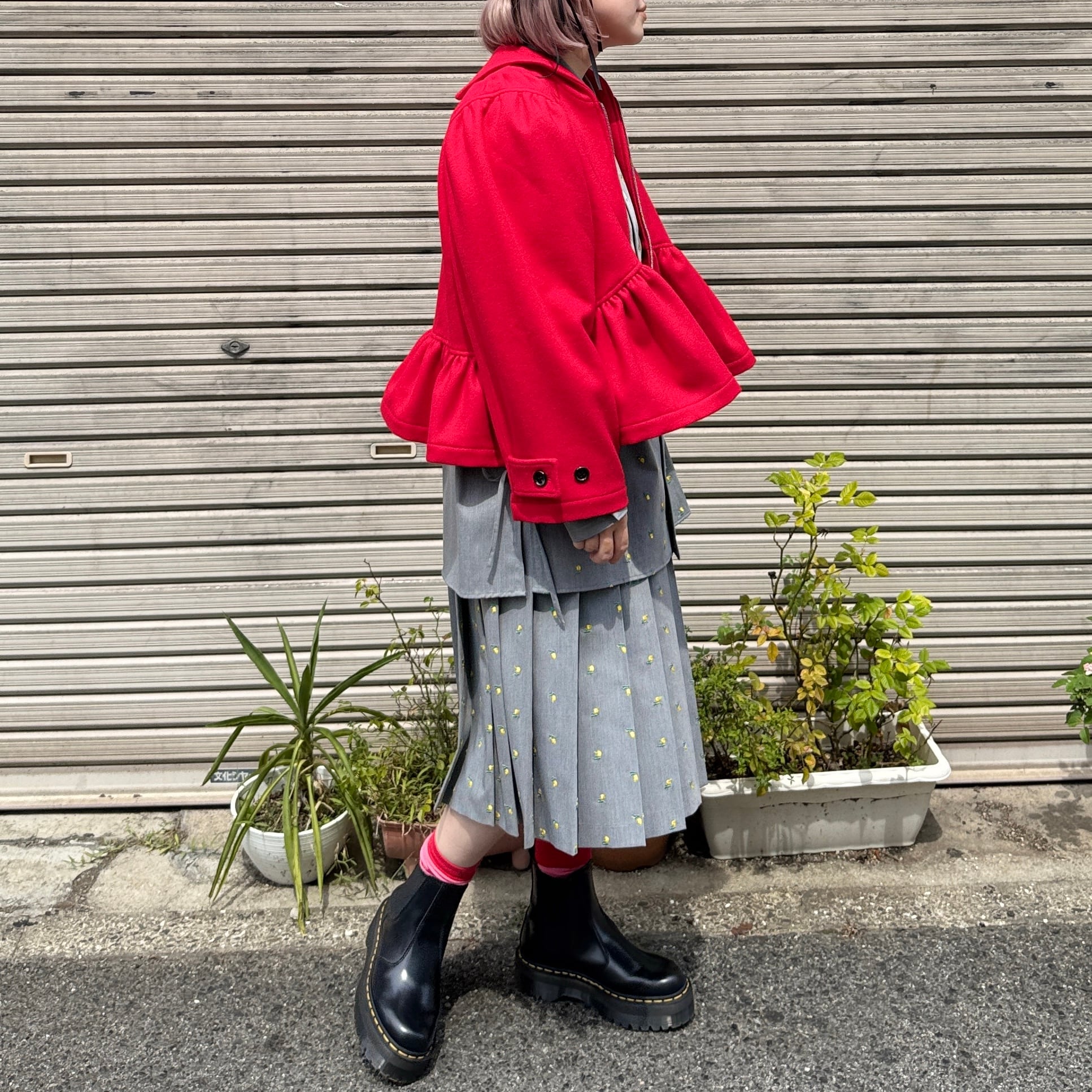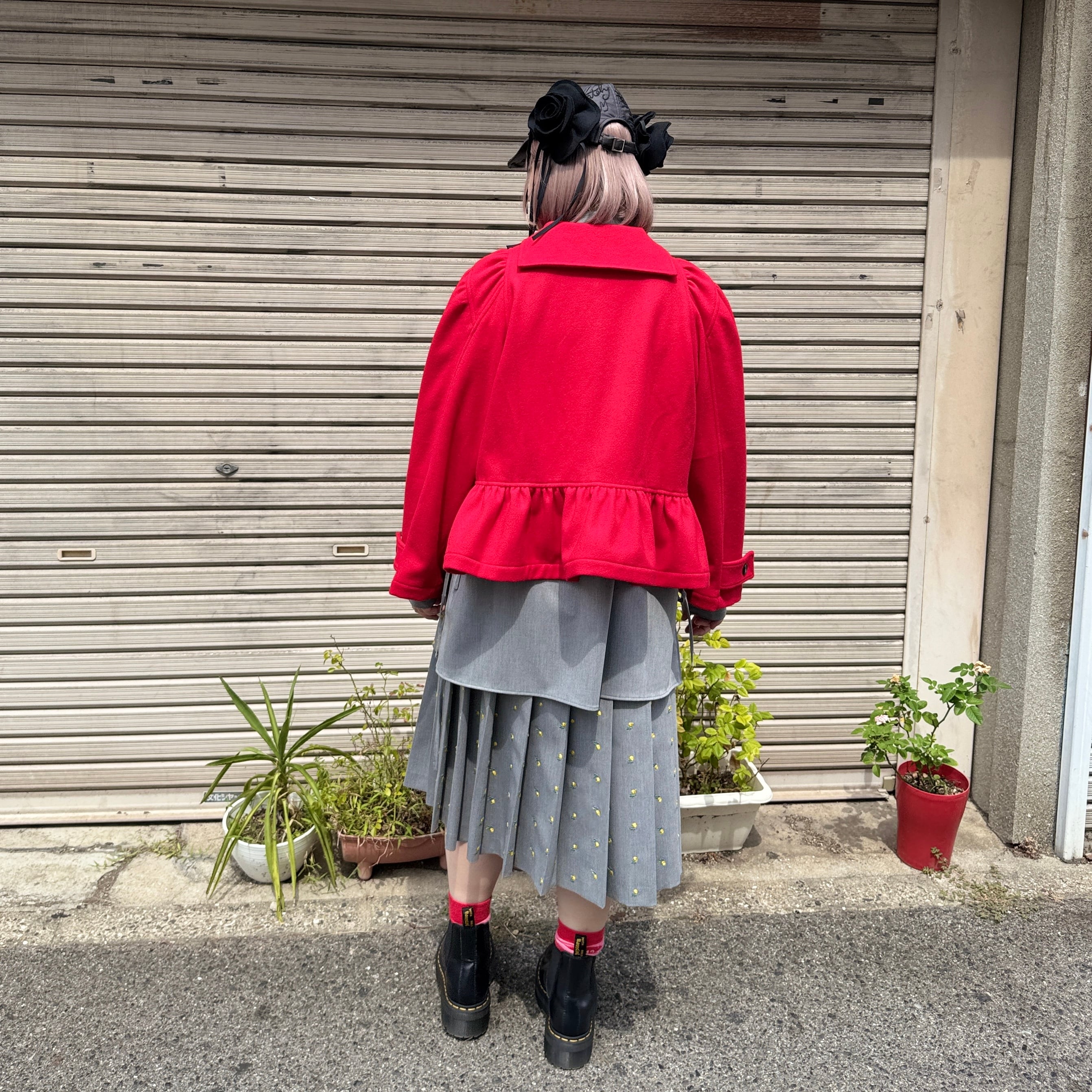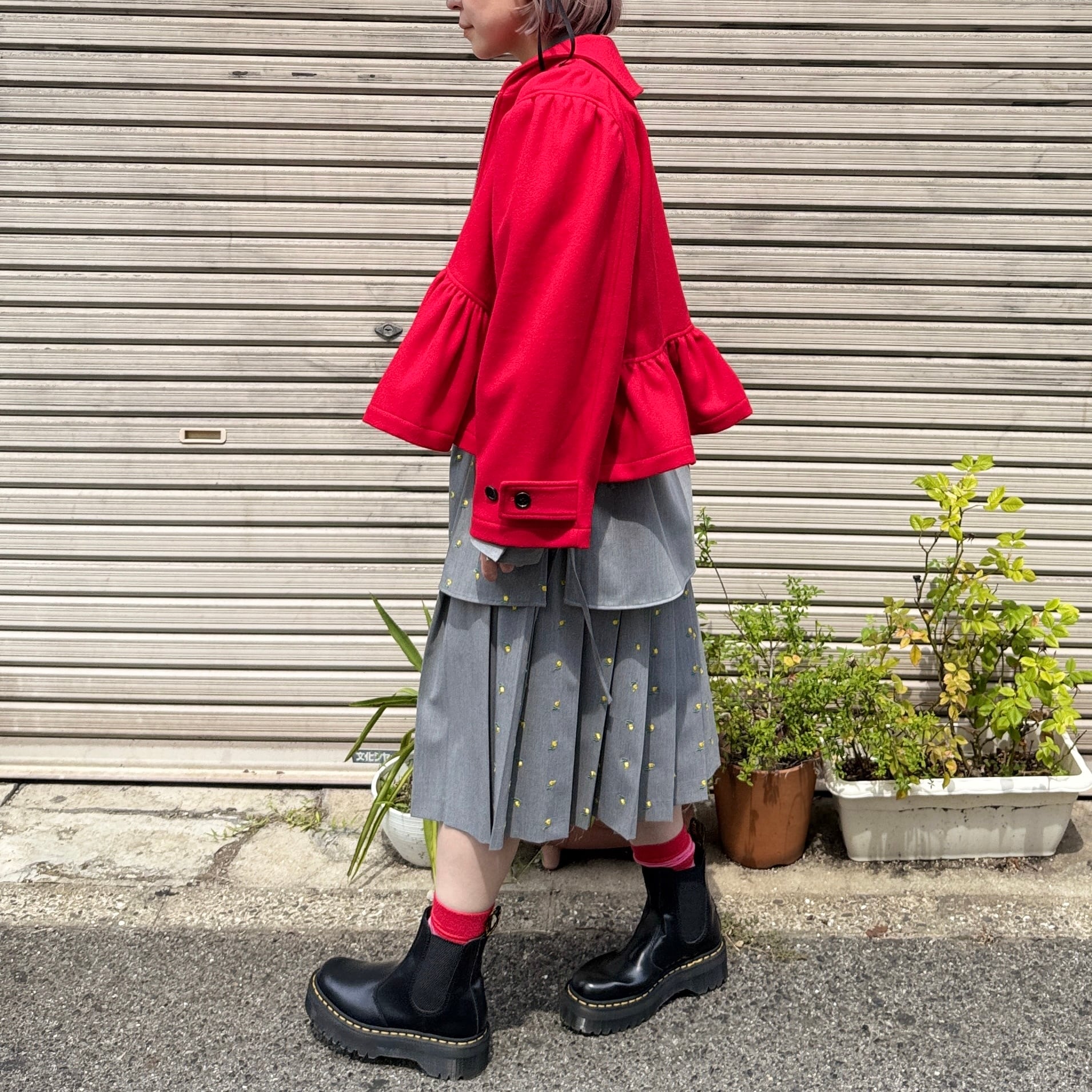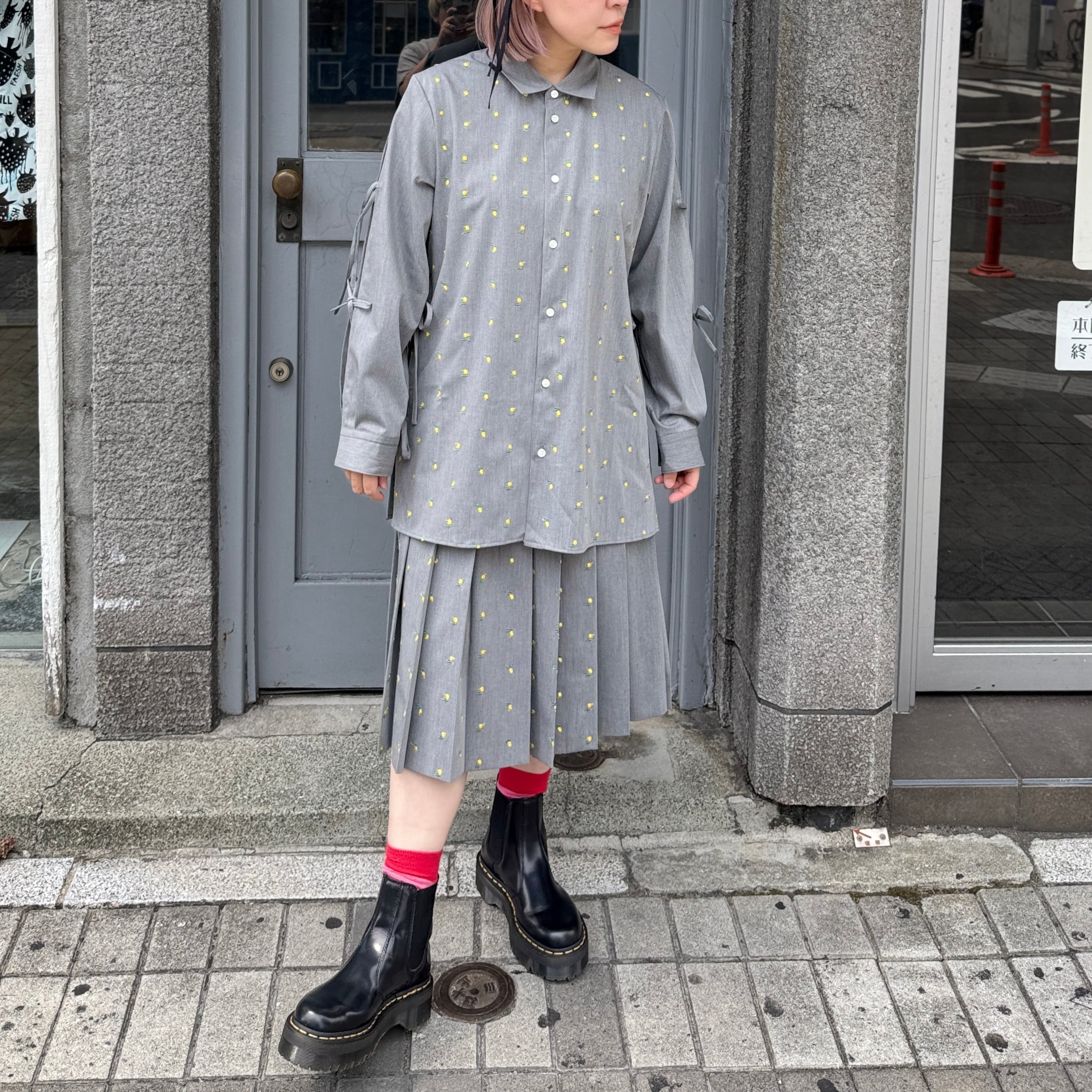 naokitomizuka / Flower embroidery pleated skirt / l.gray