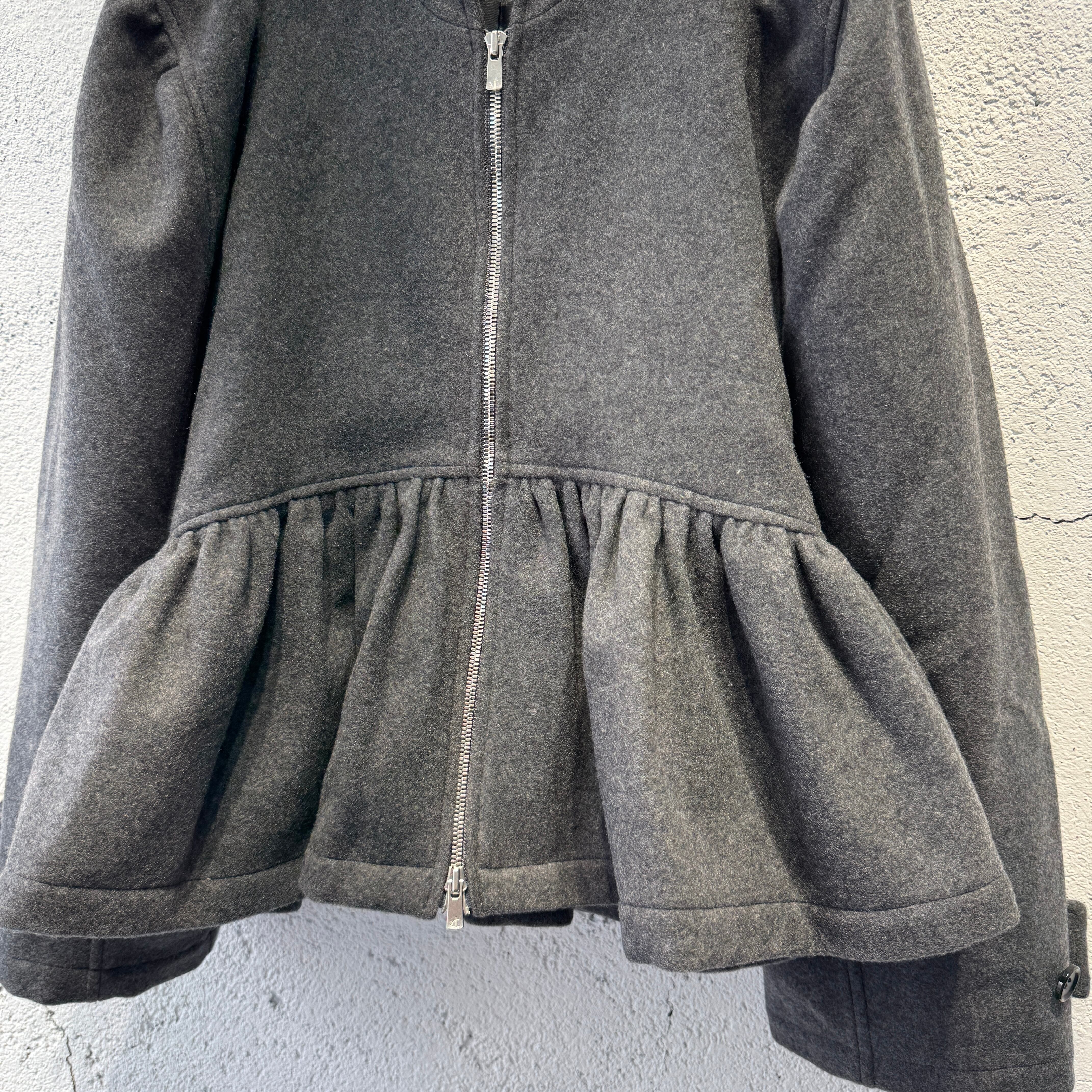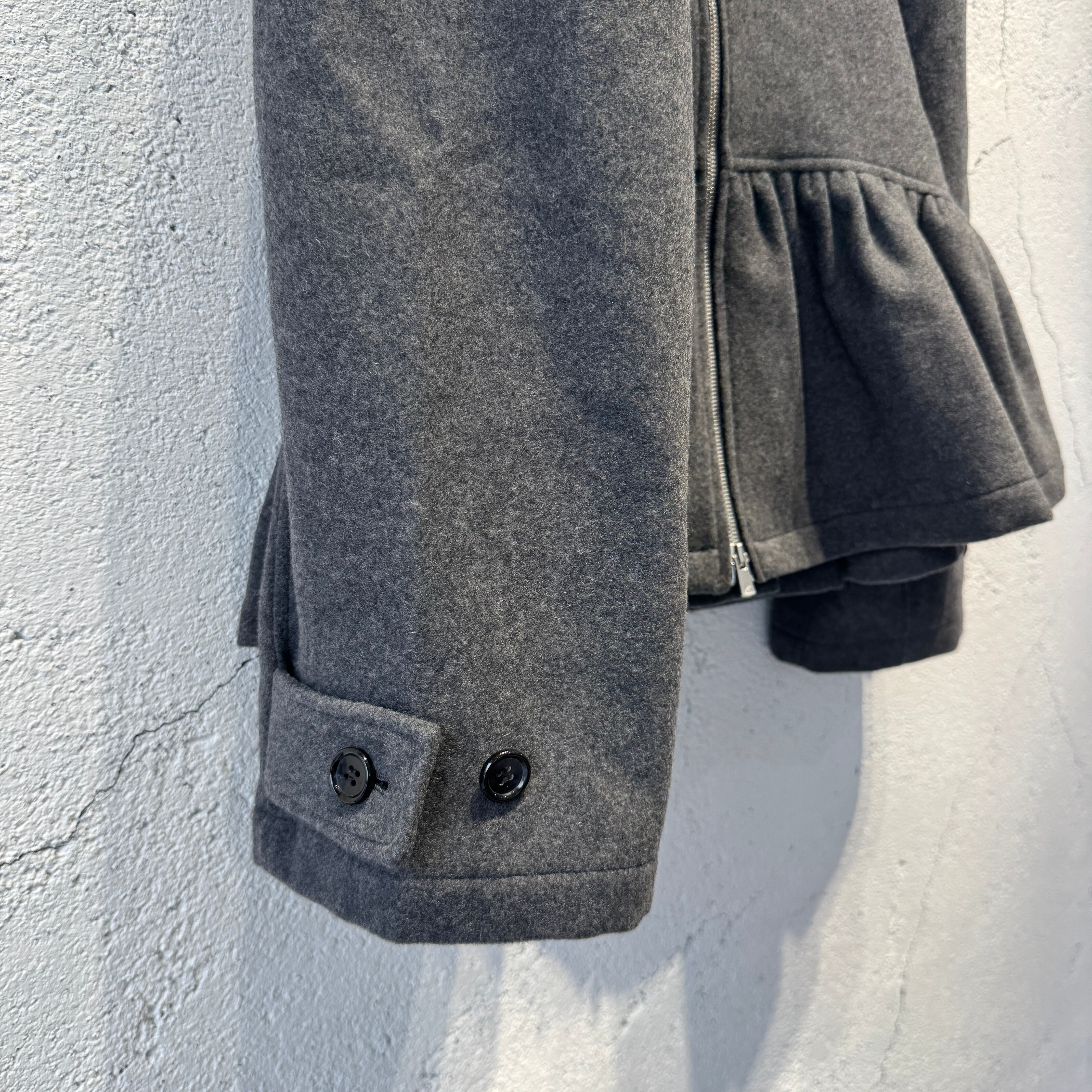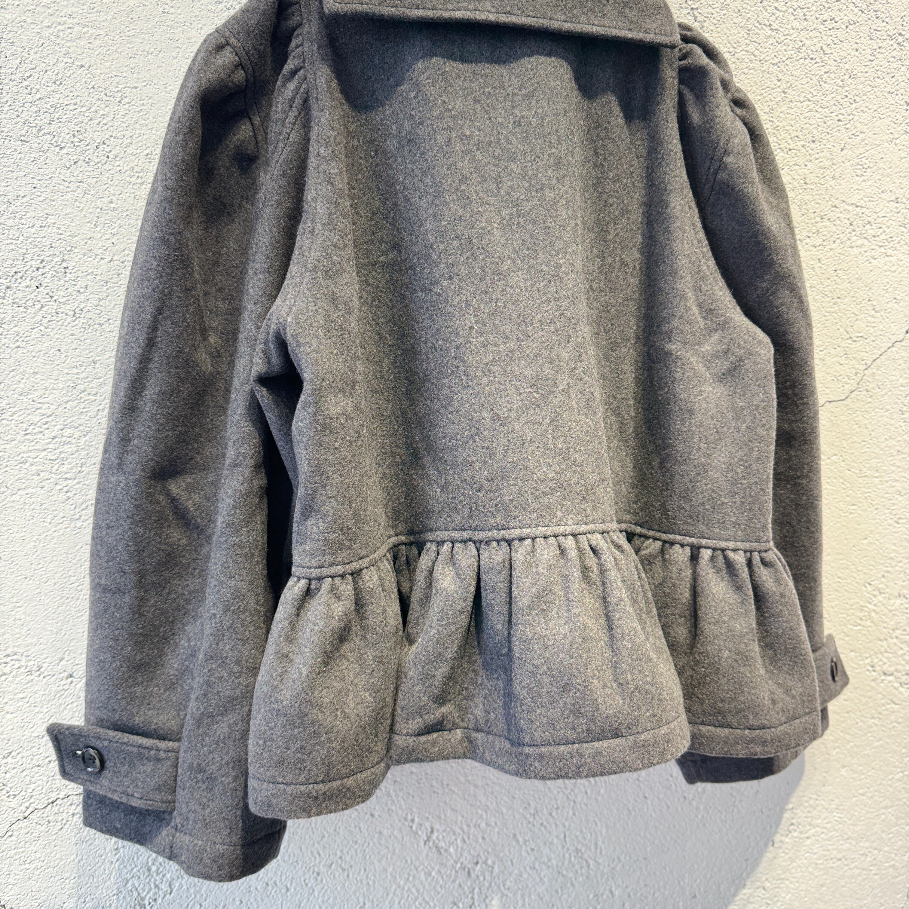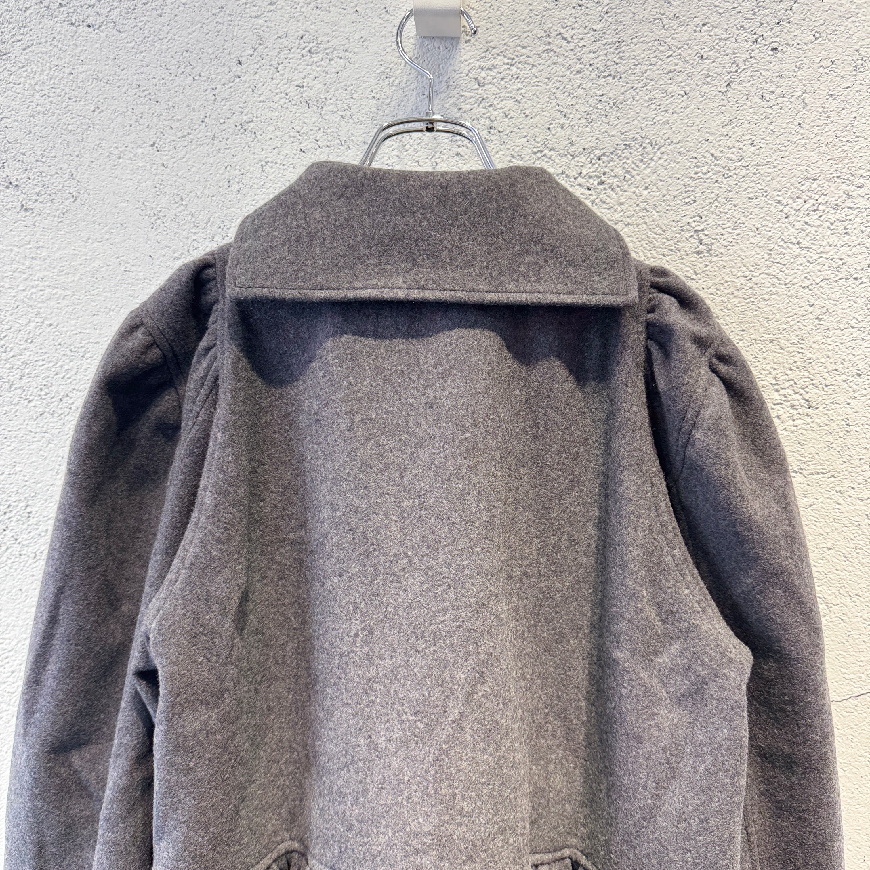 コンパクトなセーラー襟、肩周りのパフスリーブ、ウエスト部分のギャザーなどnaokitomizukaならではのパターンが特徴的な、とてもかわいいメルトンのジャケット