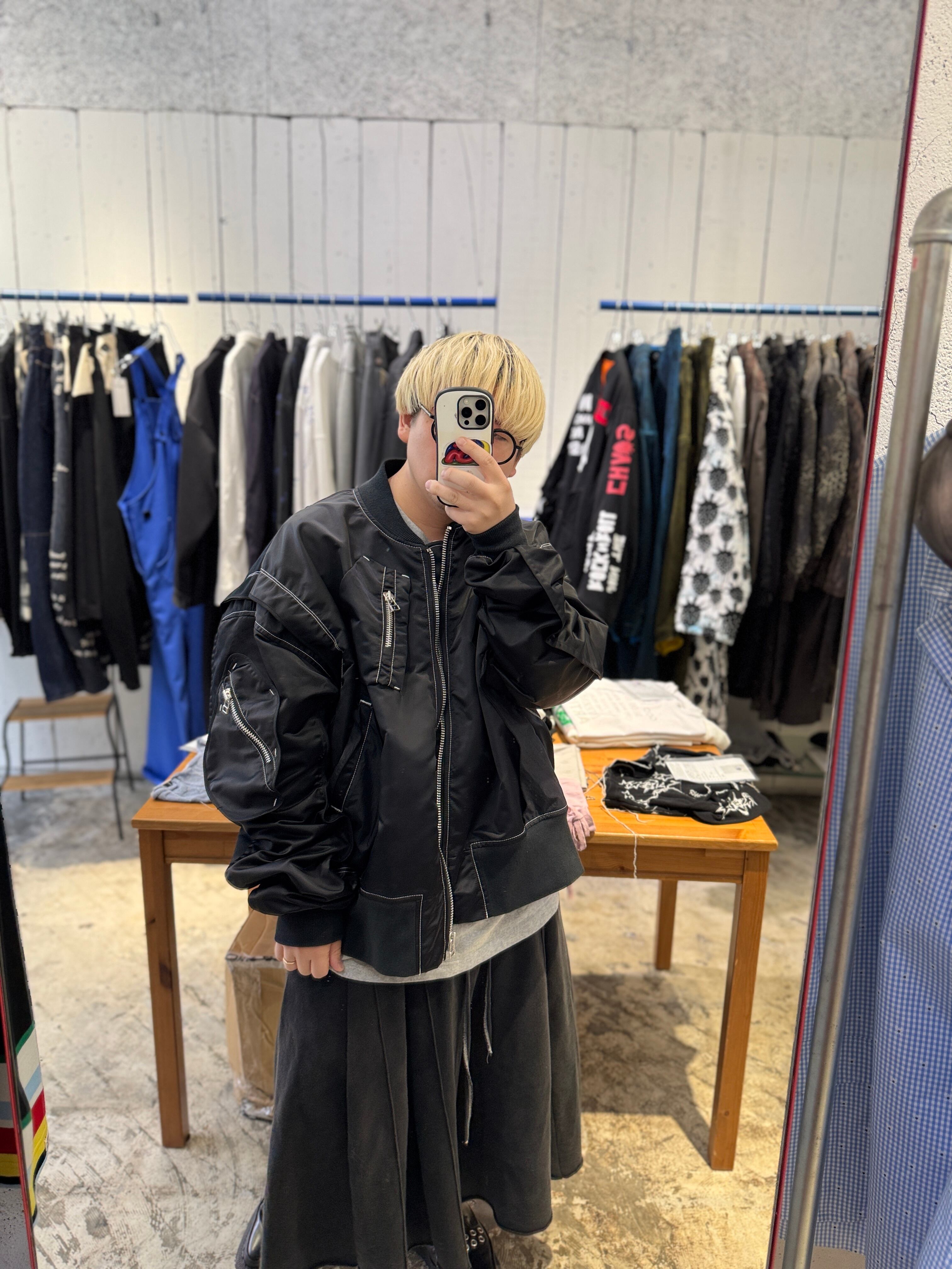 細部の生地の切り替えとポケットが特徴的なBALMUNGならではの立体感のある美しいシルエットが特徴的なMA-1ジャケット