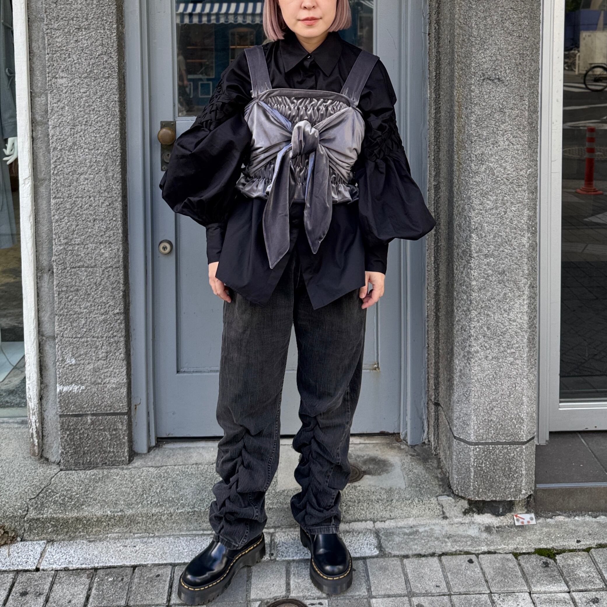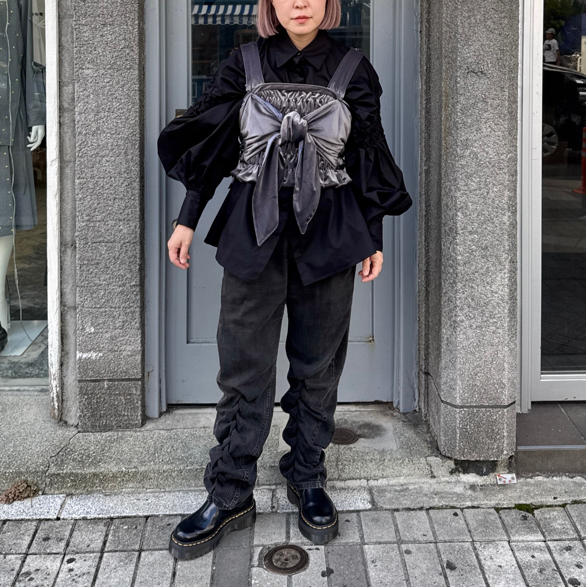 Create Clair / Shirring ribbon bustier / Gray-velor