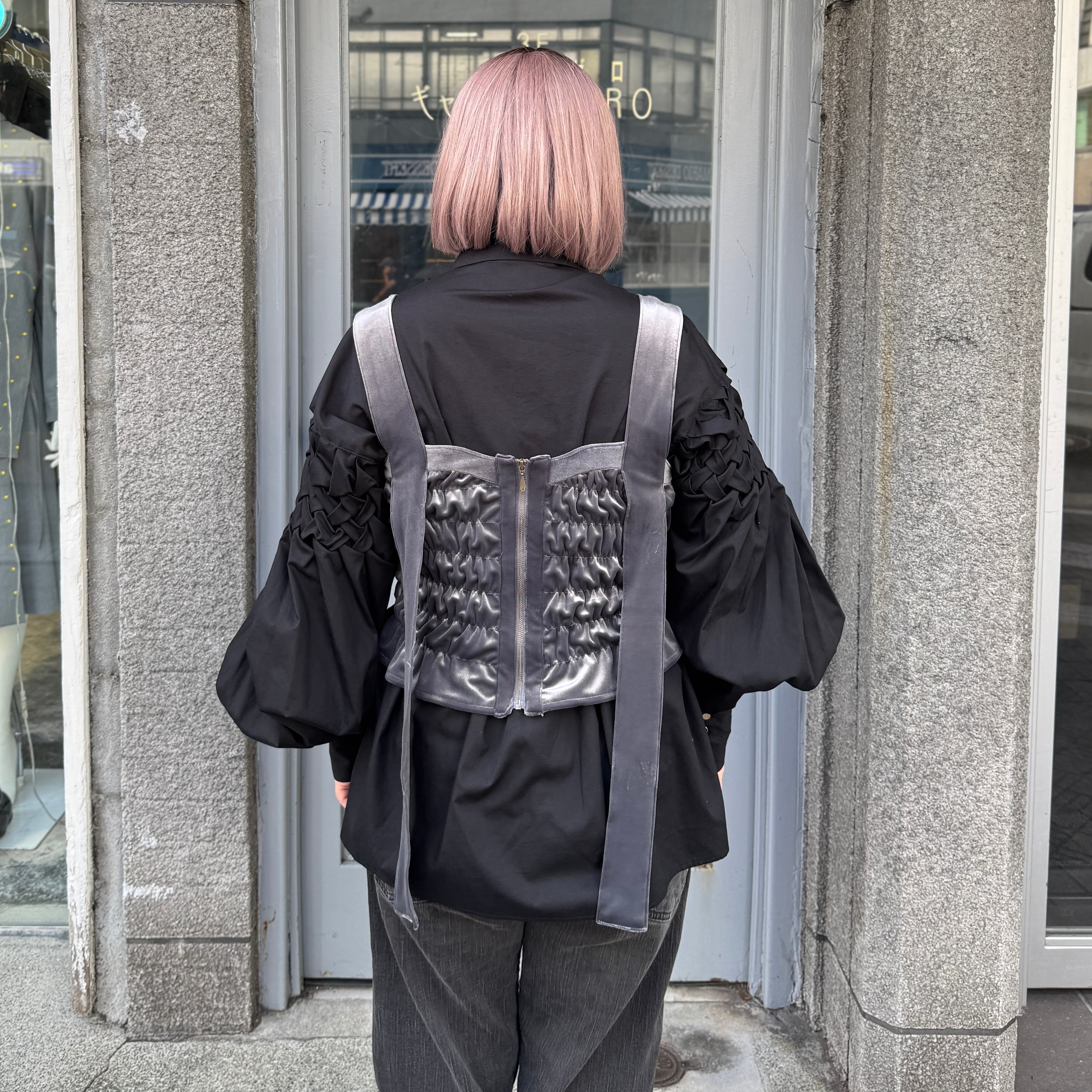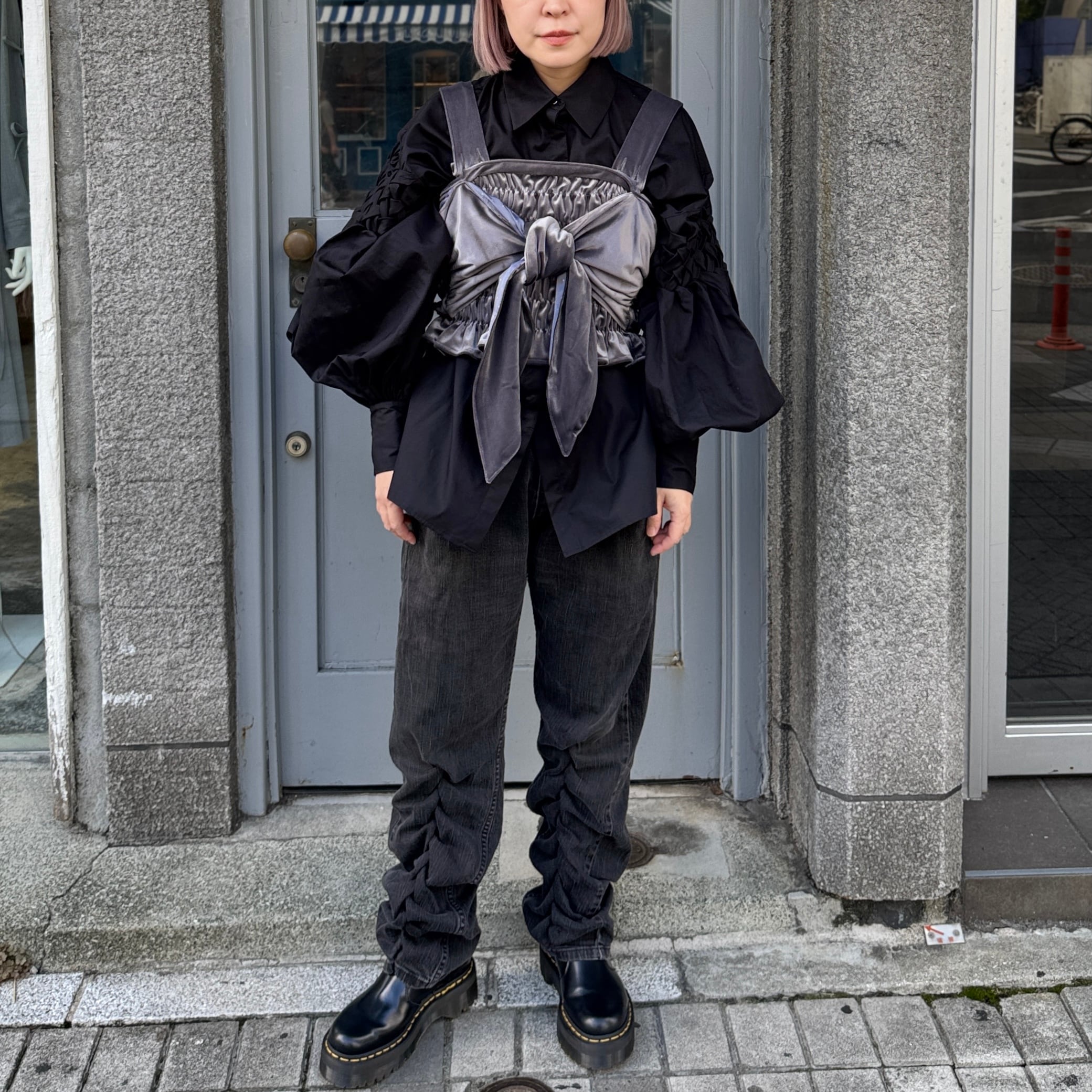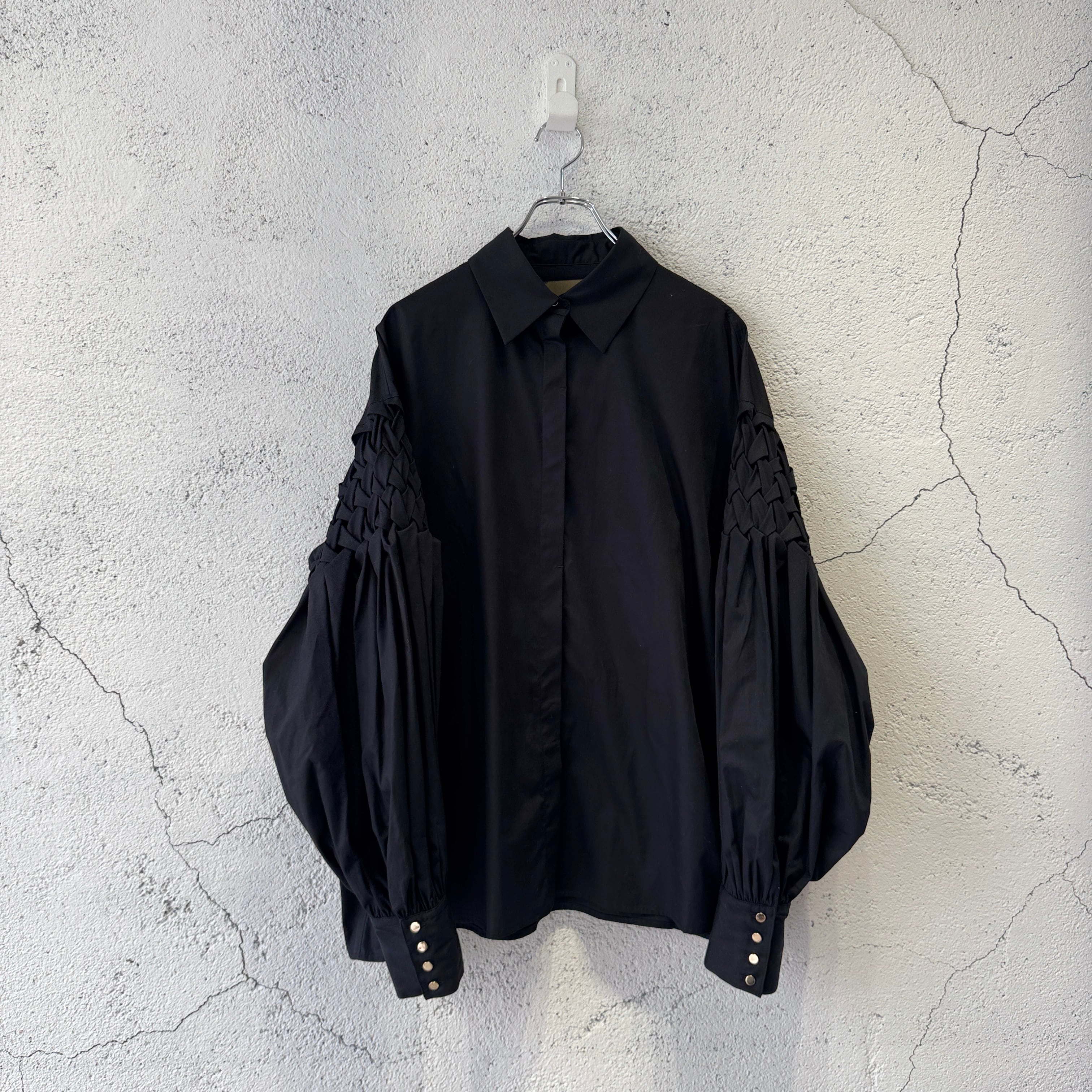 Create Clairのブランドアイコンであるスモッキング刺繍を袖に施したブラウス。