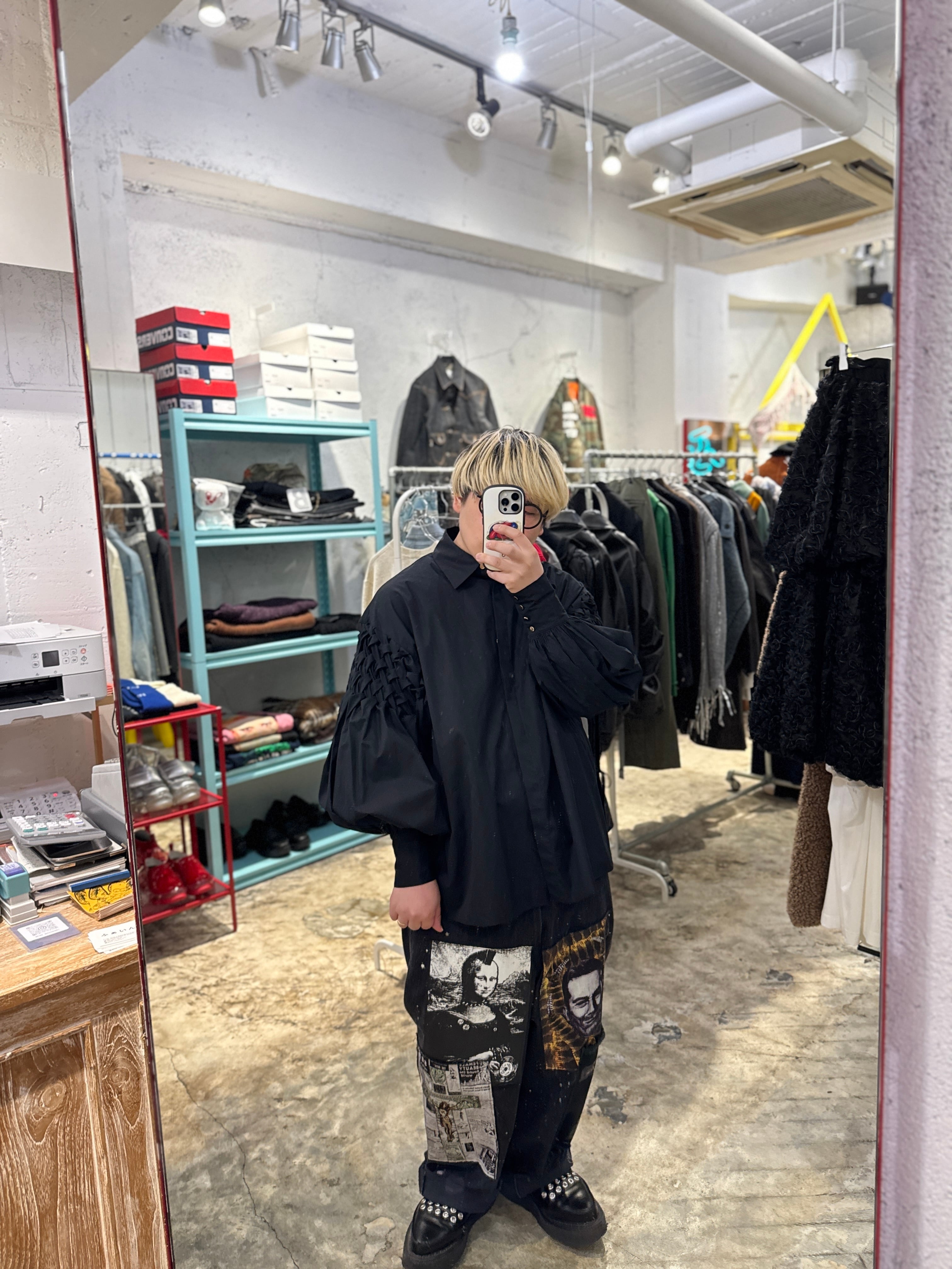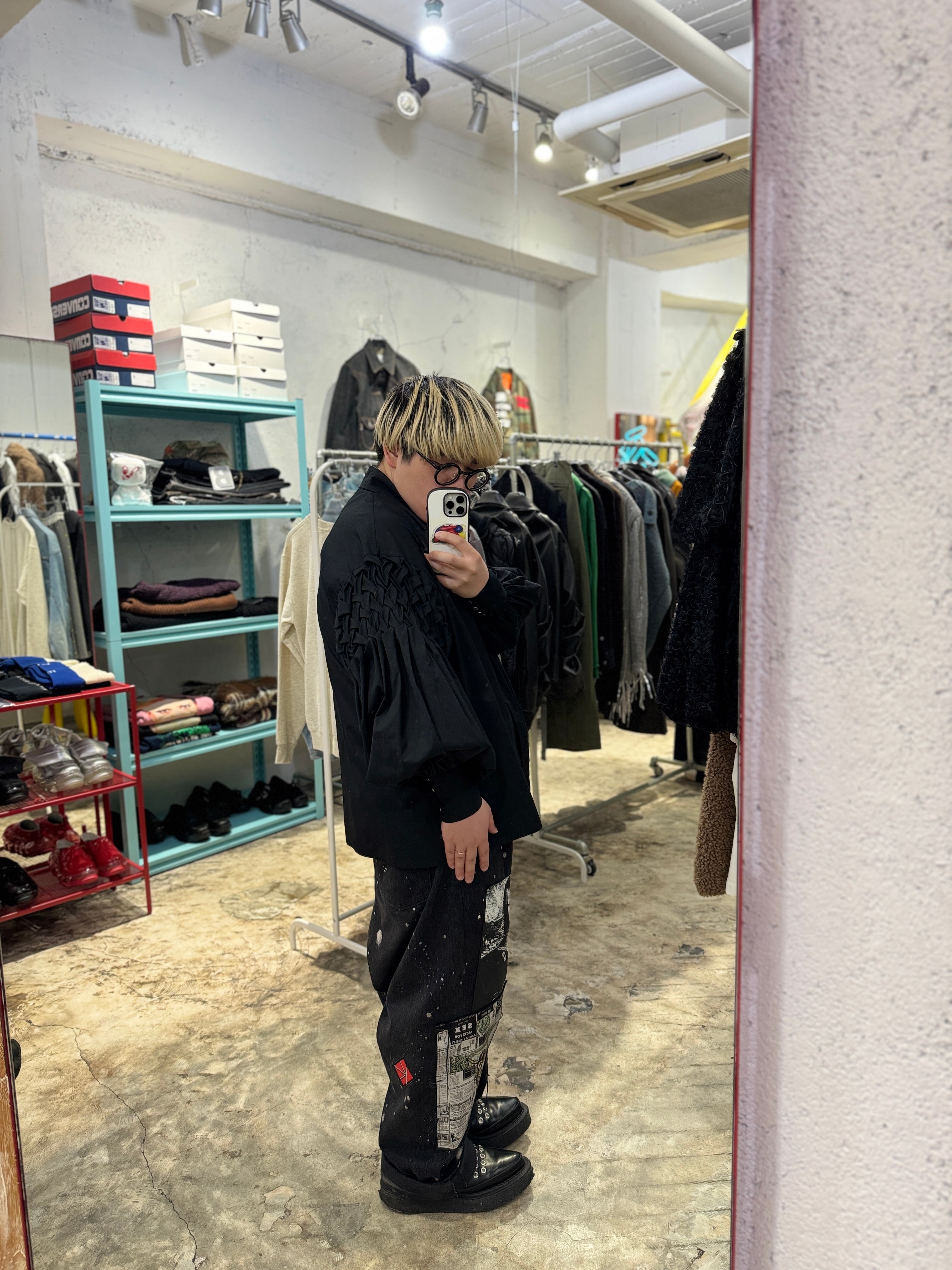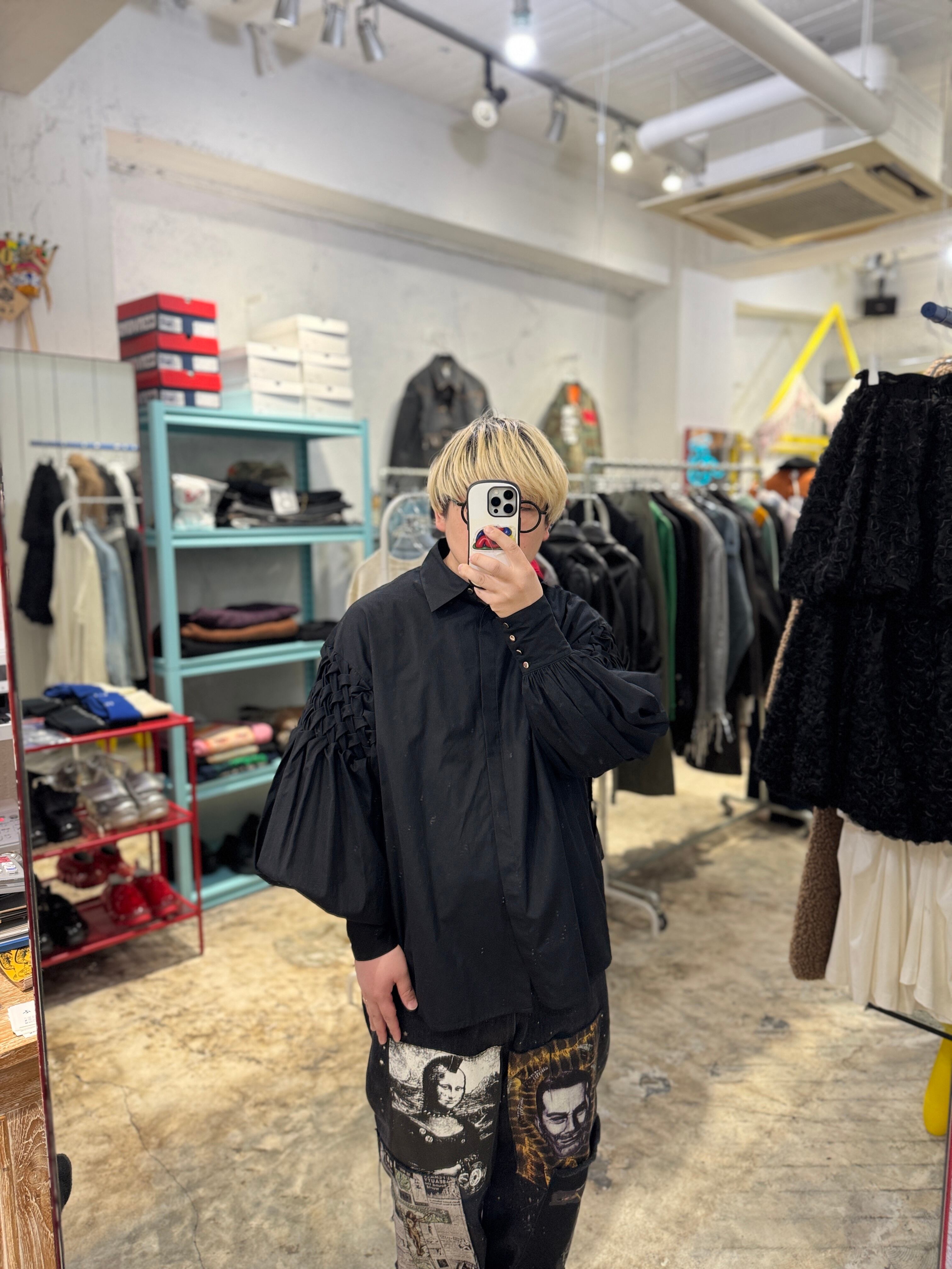 Create Clairのブランドアイコンであるスモッキング刺繍を袖に施したブラウス。