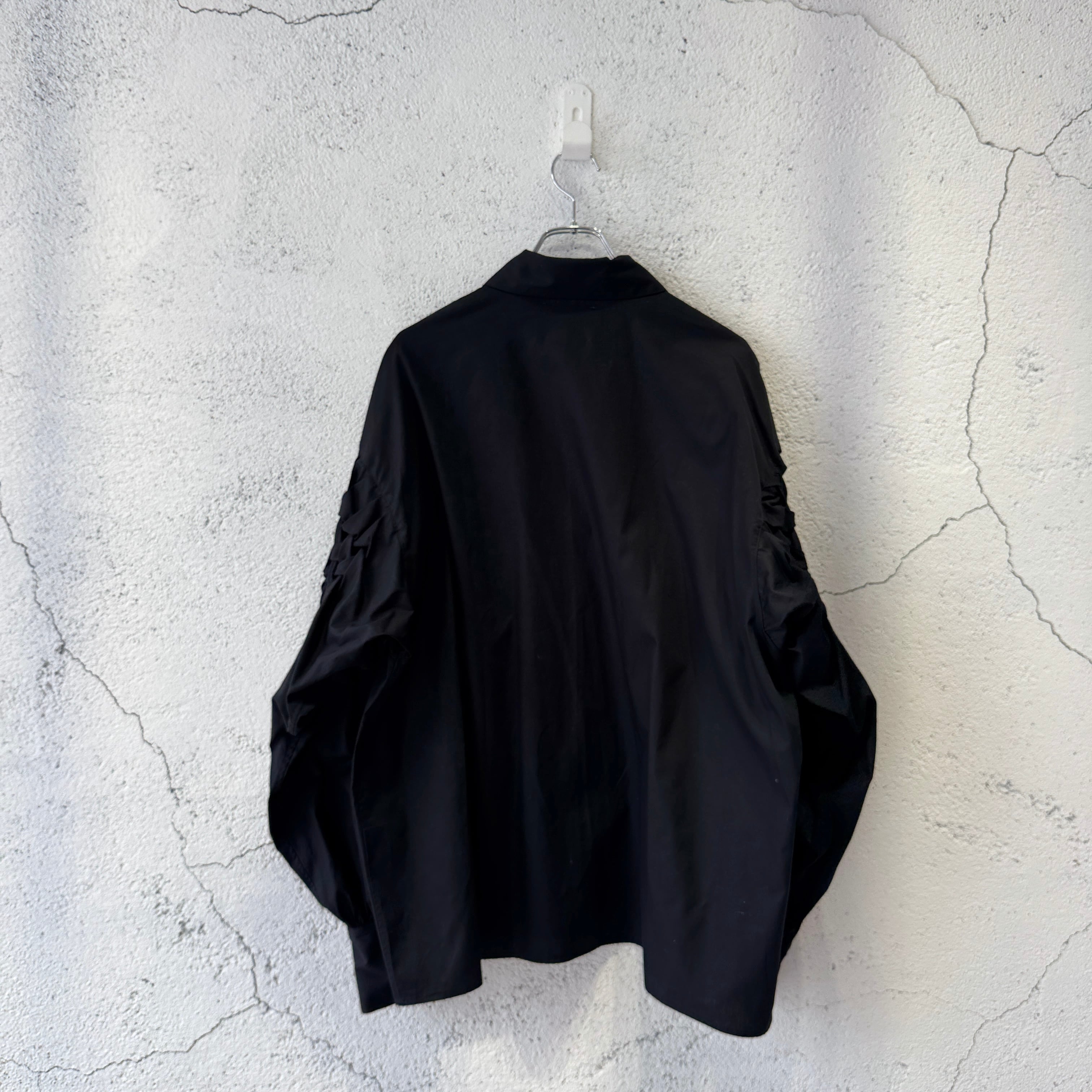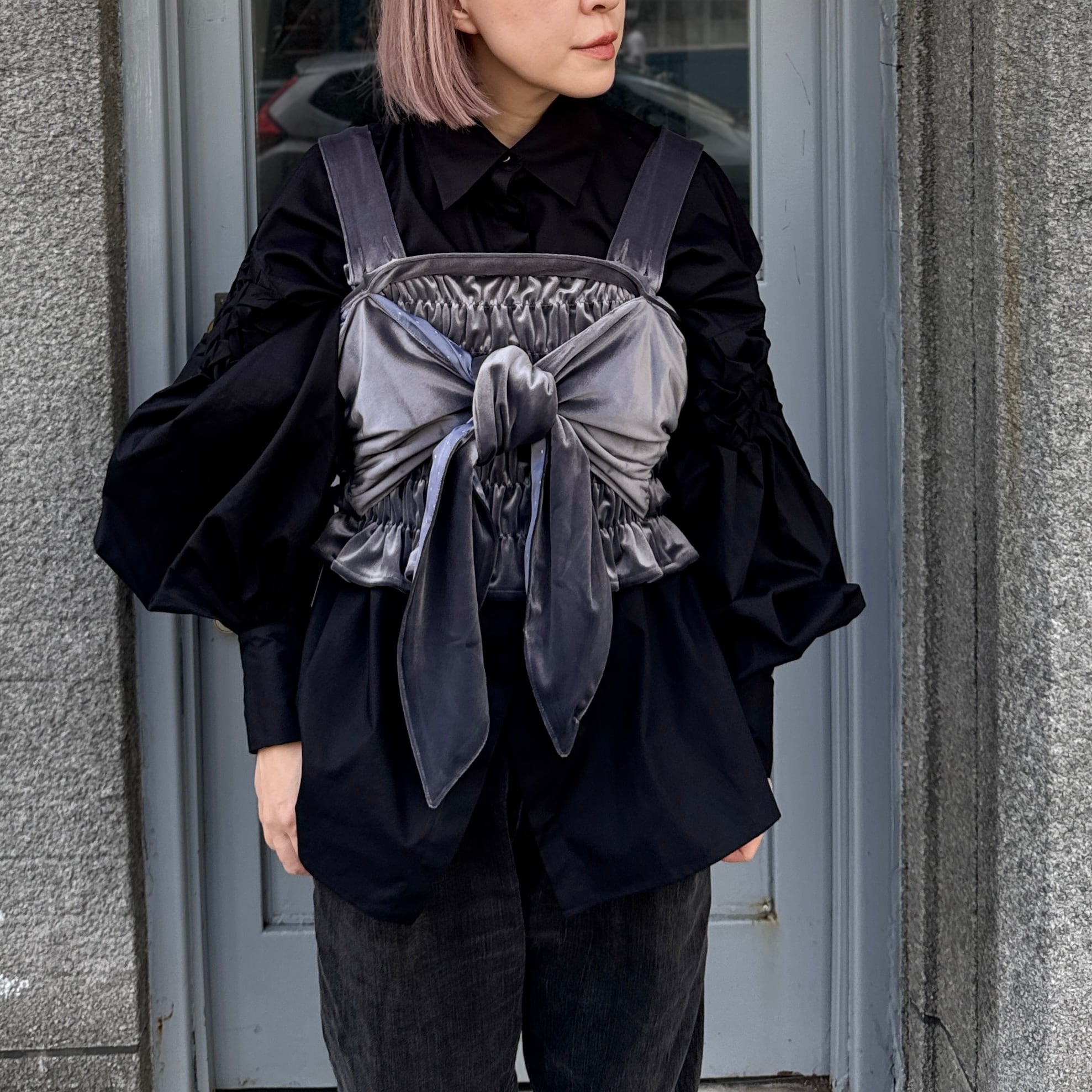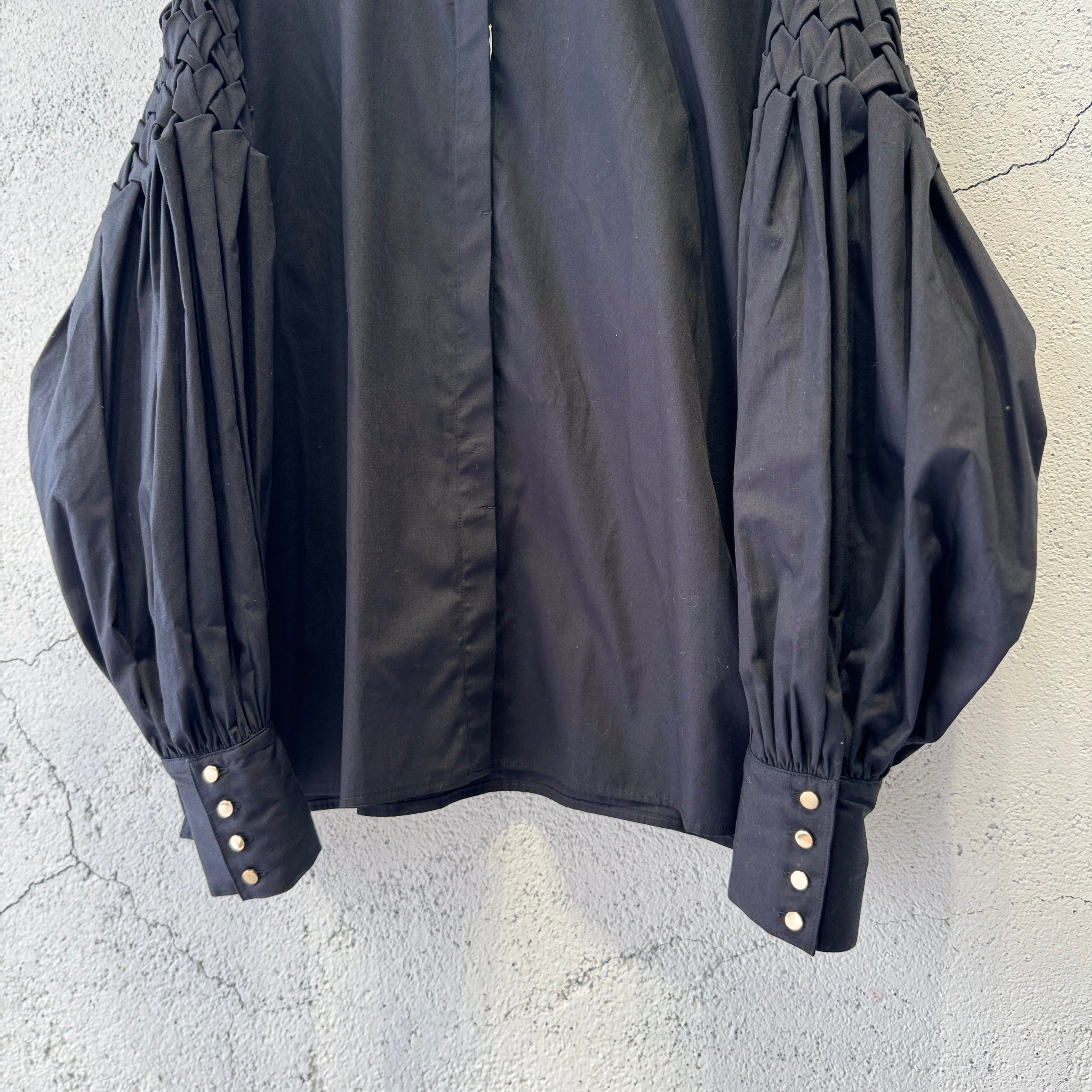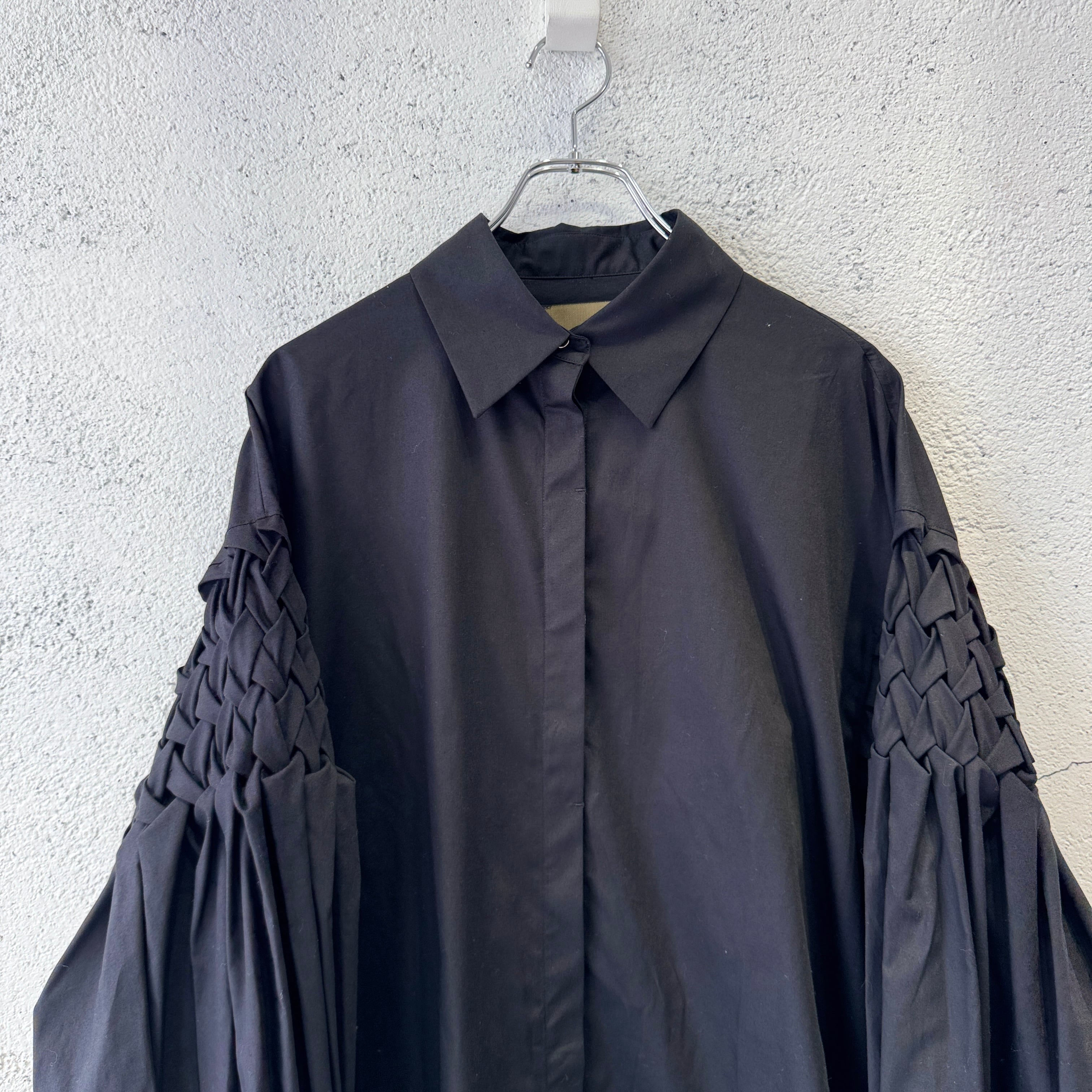 スモッキング刺繍が生み出すドレープによって膨らむ袖のボリュームが、エレガントな雰囲気を演出。