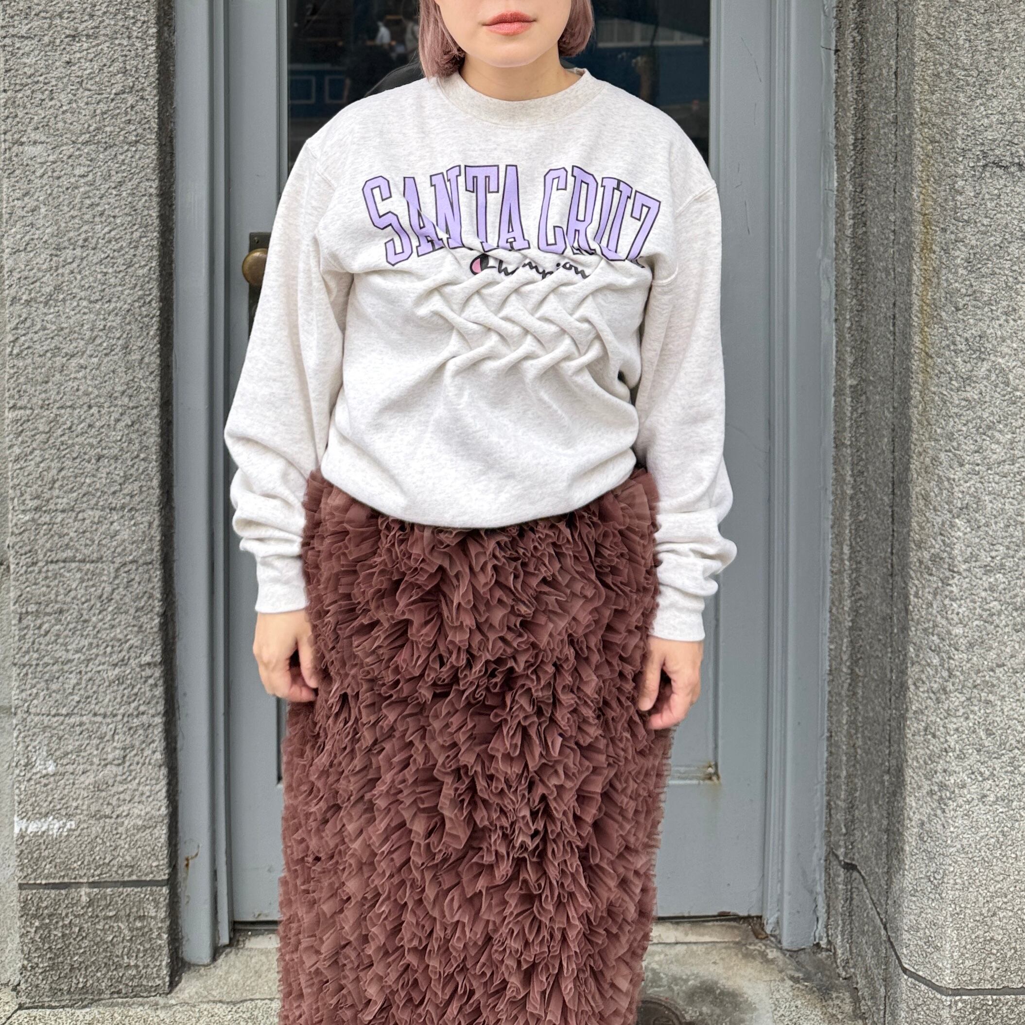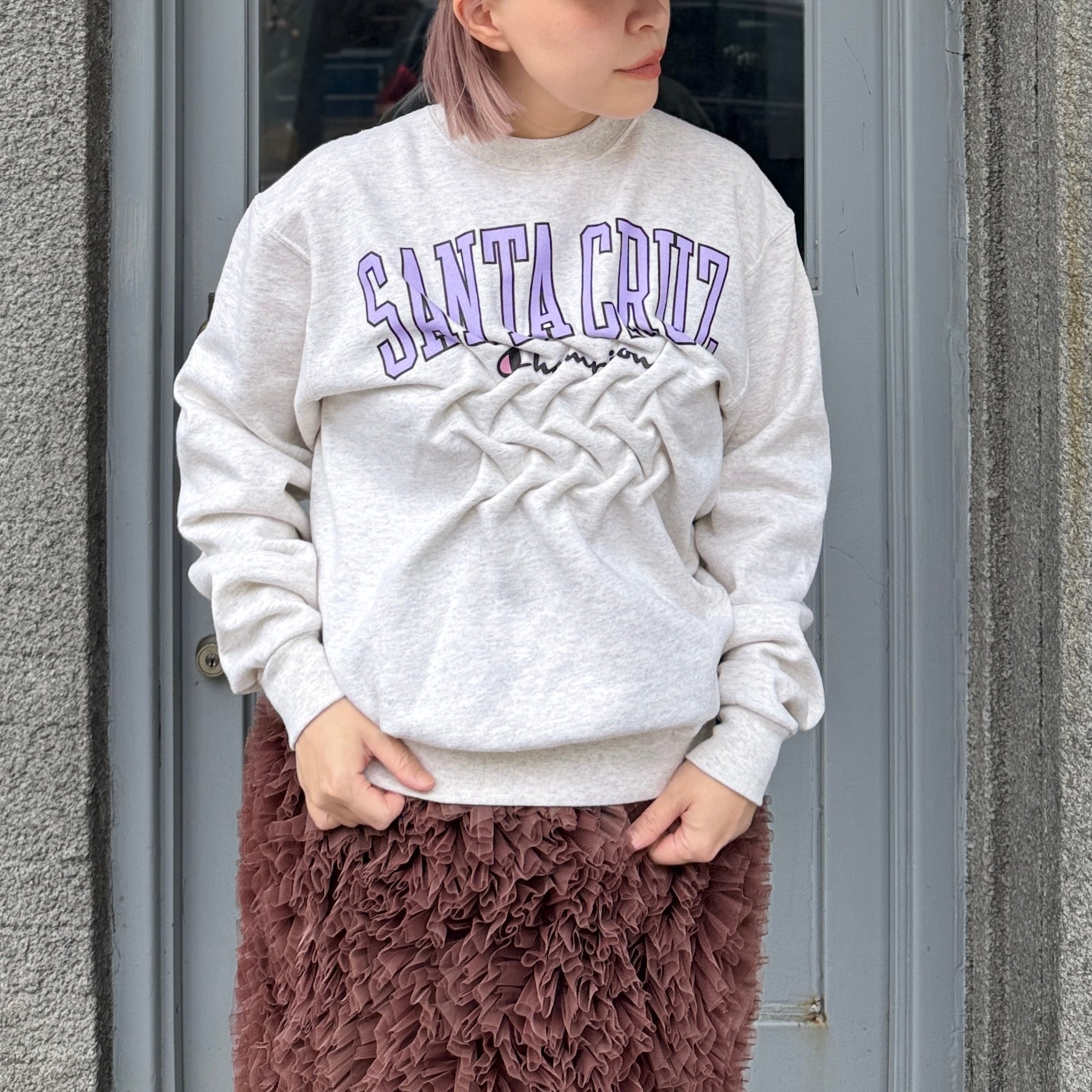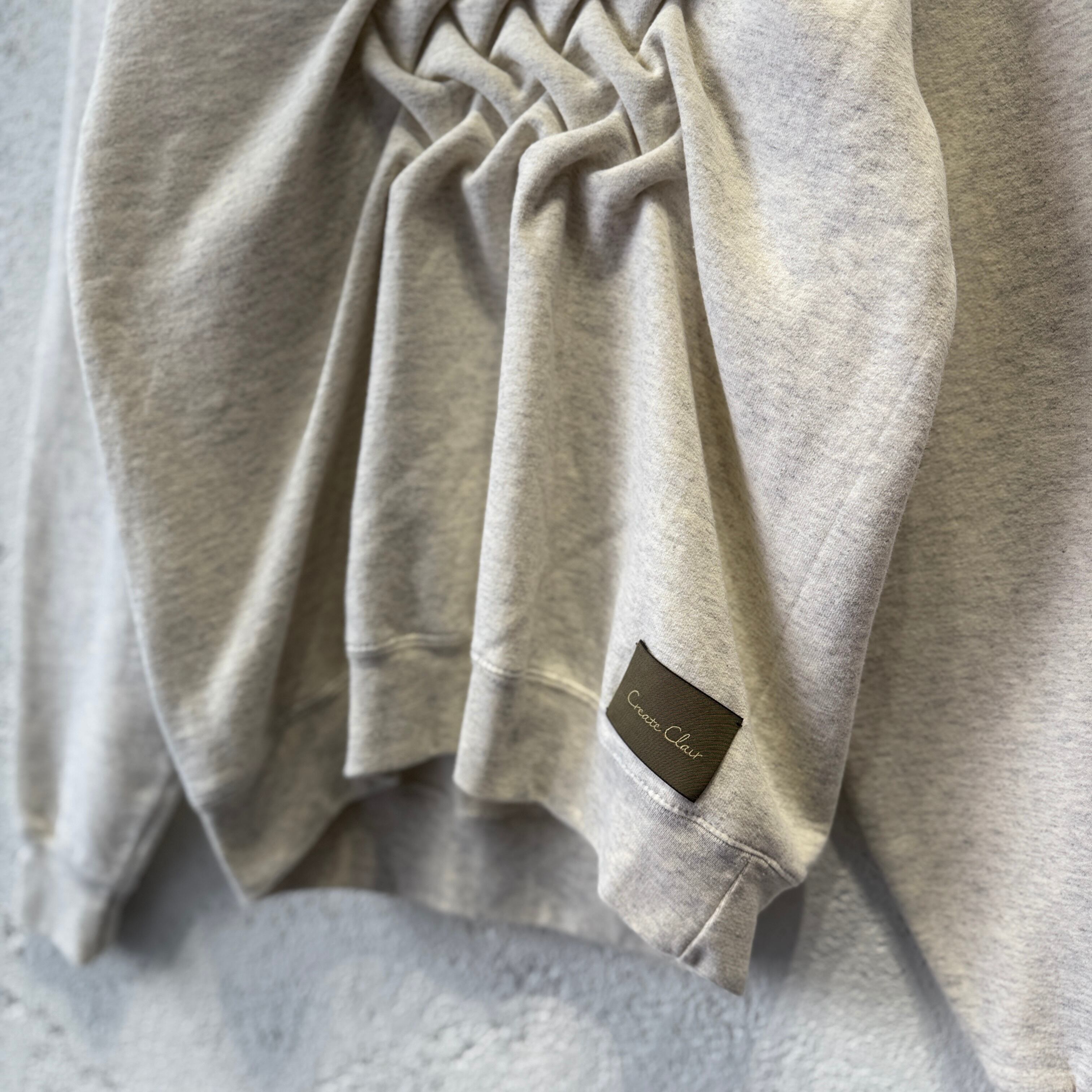 古着のスウェットのフロントにスモッキング刺繍を施した1着