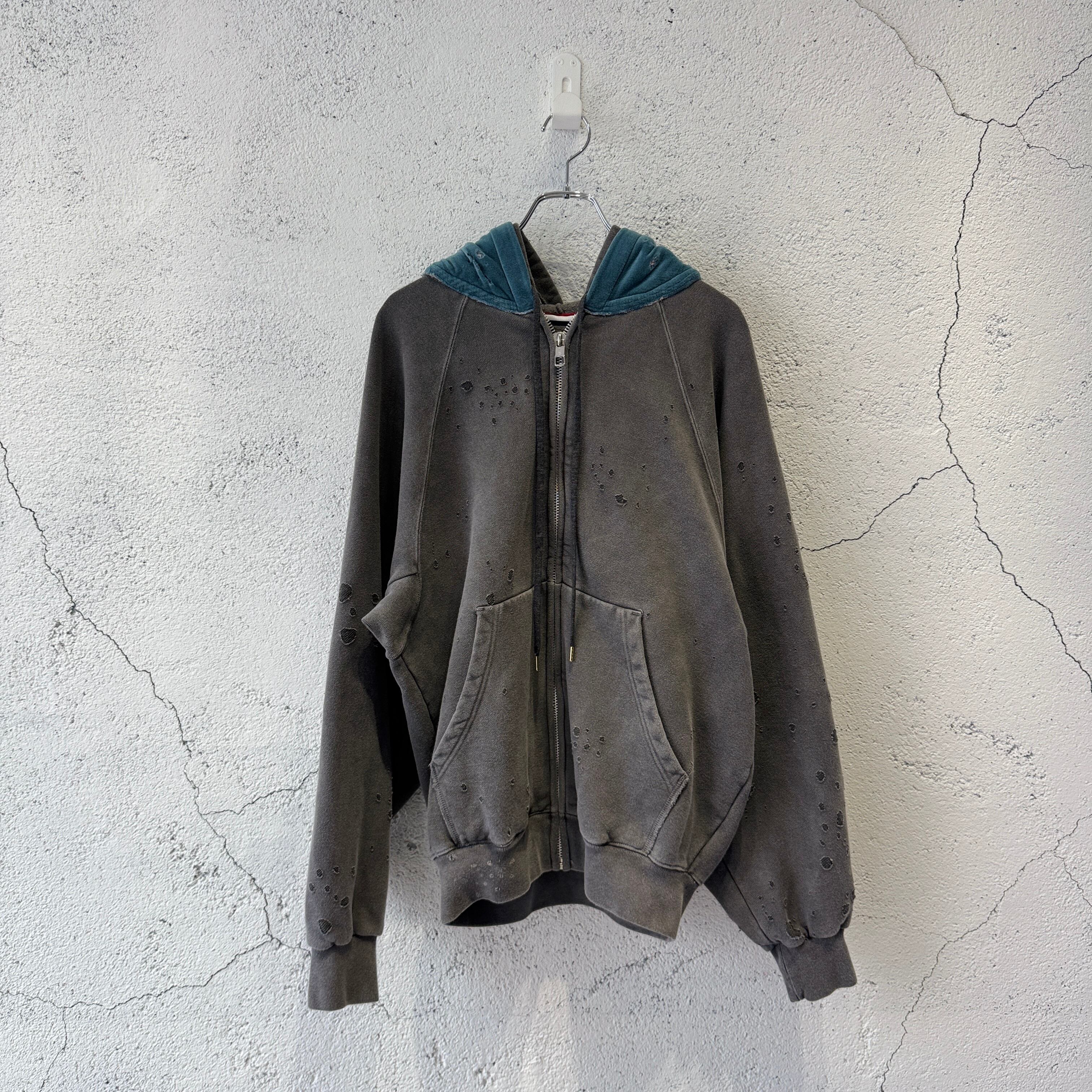 SEVESKIG / Velour Layered Zip up Hoodie / BLACK
