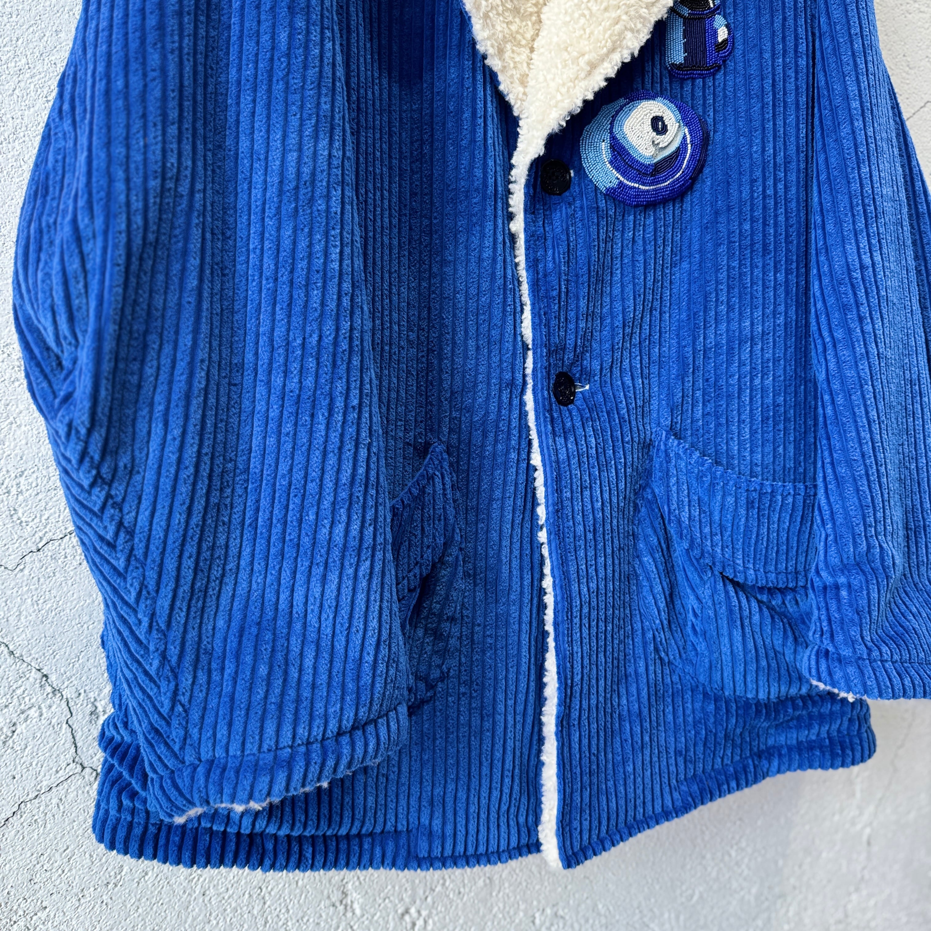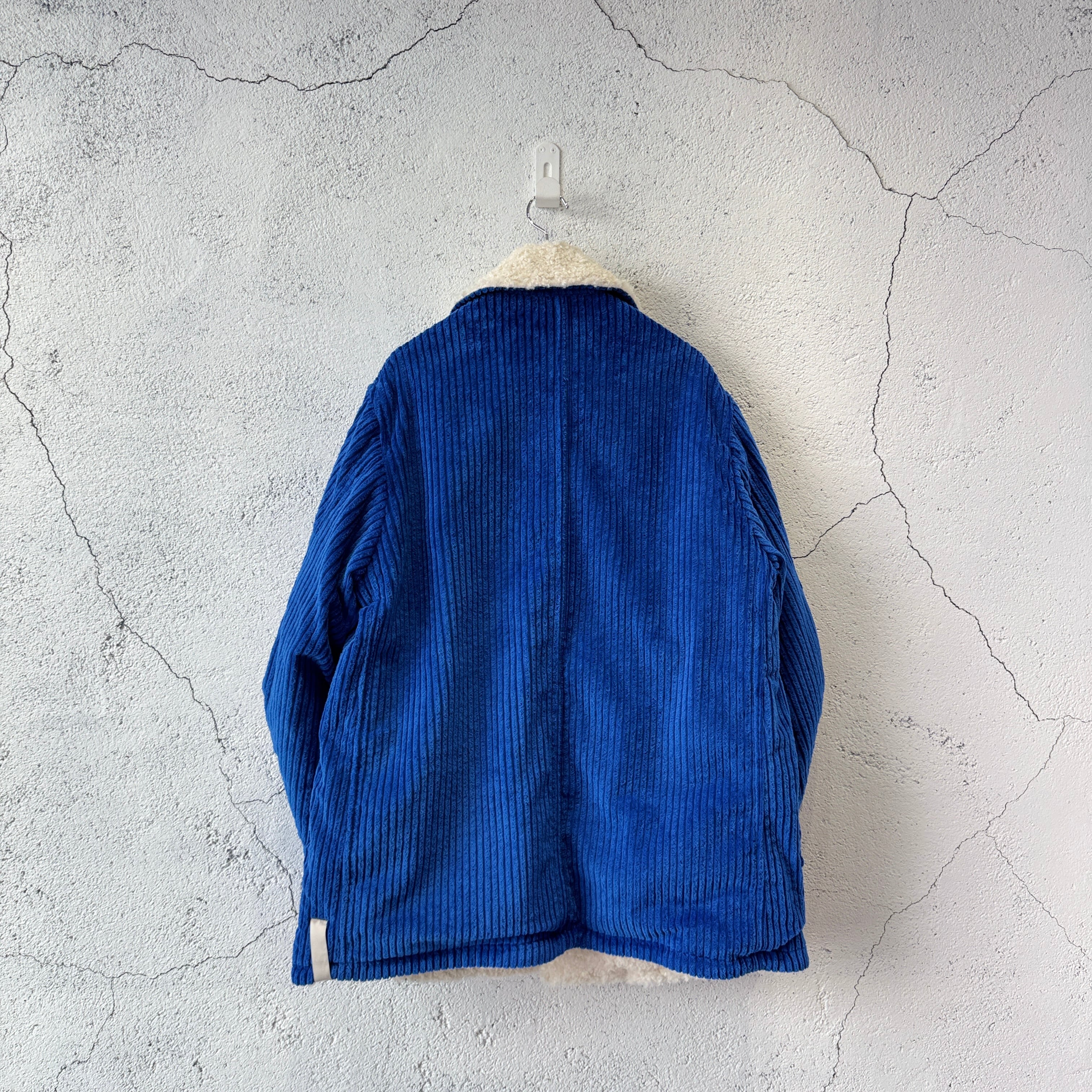 表面には太畝のコーデュロイ生地、裏面にはフリースボア素材の生地を使用したコート