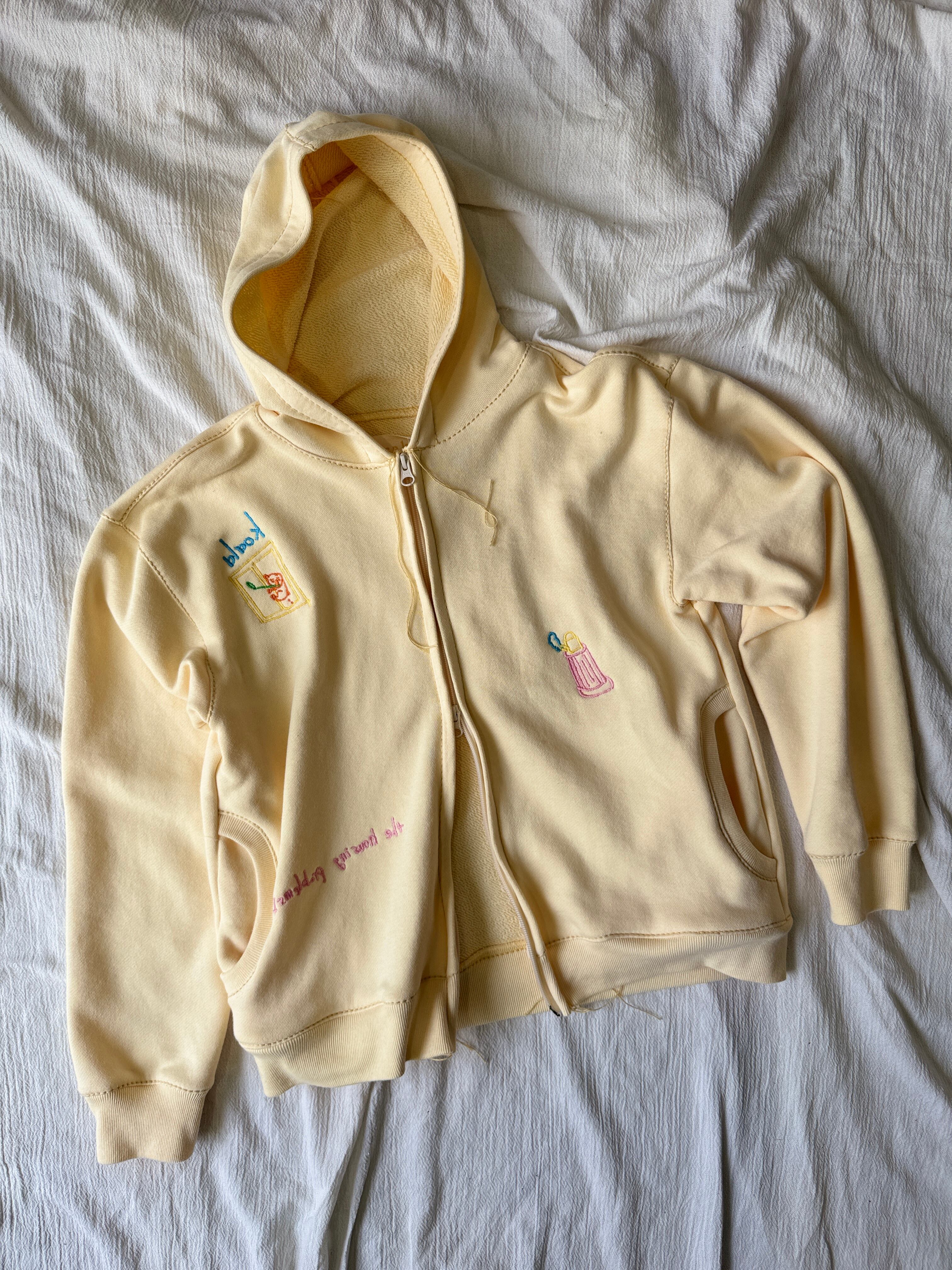 osakentaro / embroidery sweat zip up hoodie / yellow