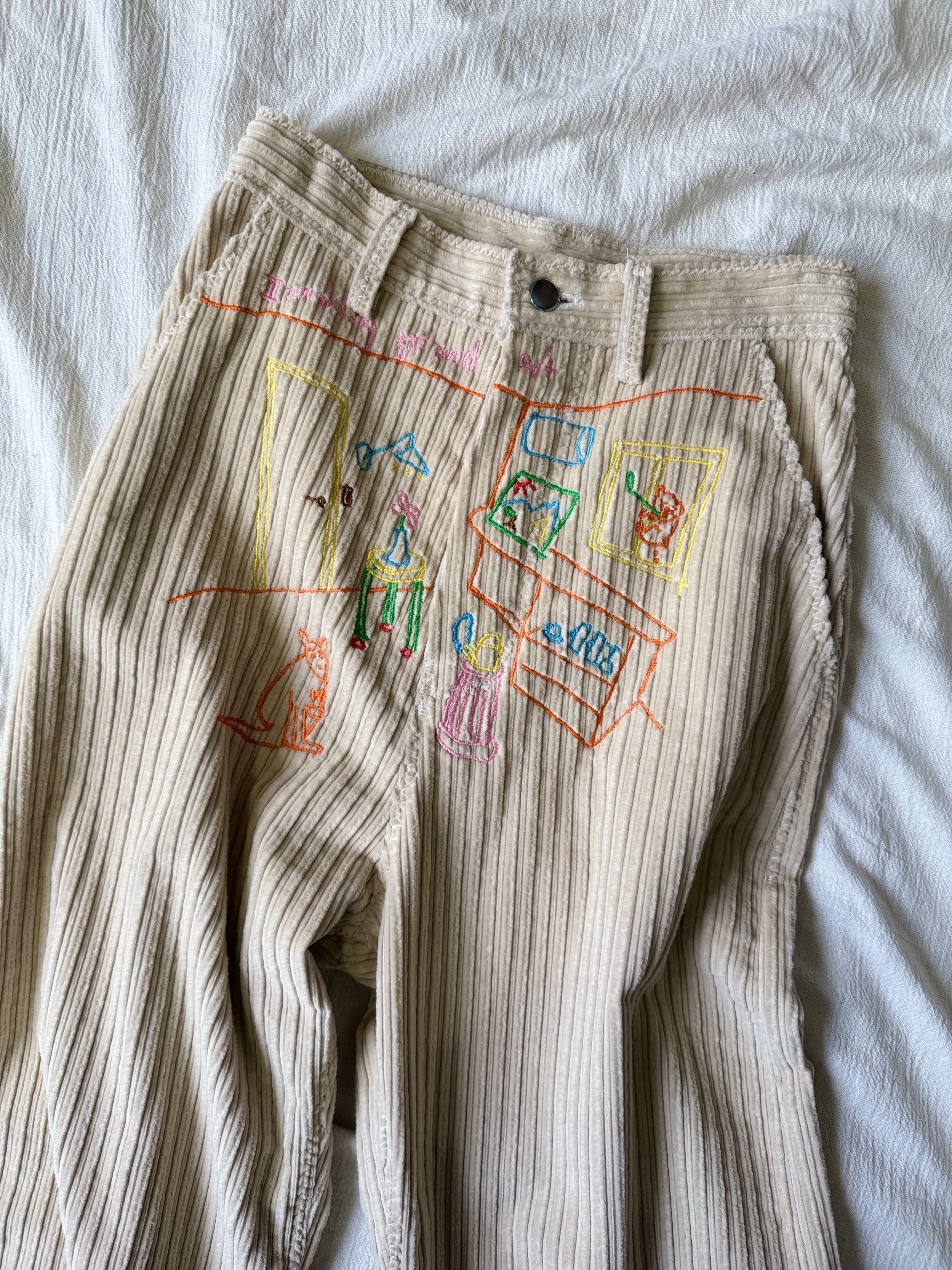 osakentaro / room embroidery corduroy pants / beige / size 1