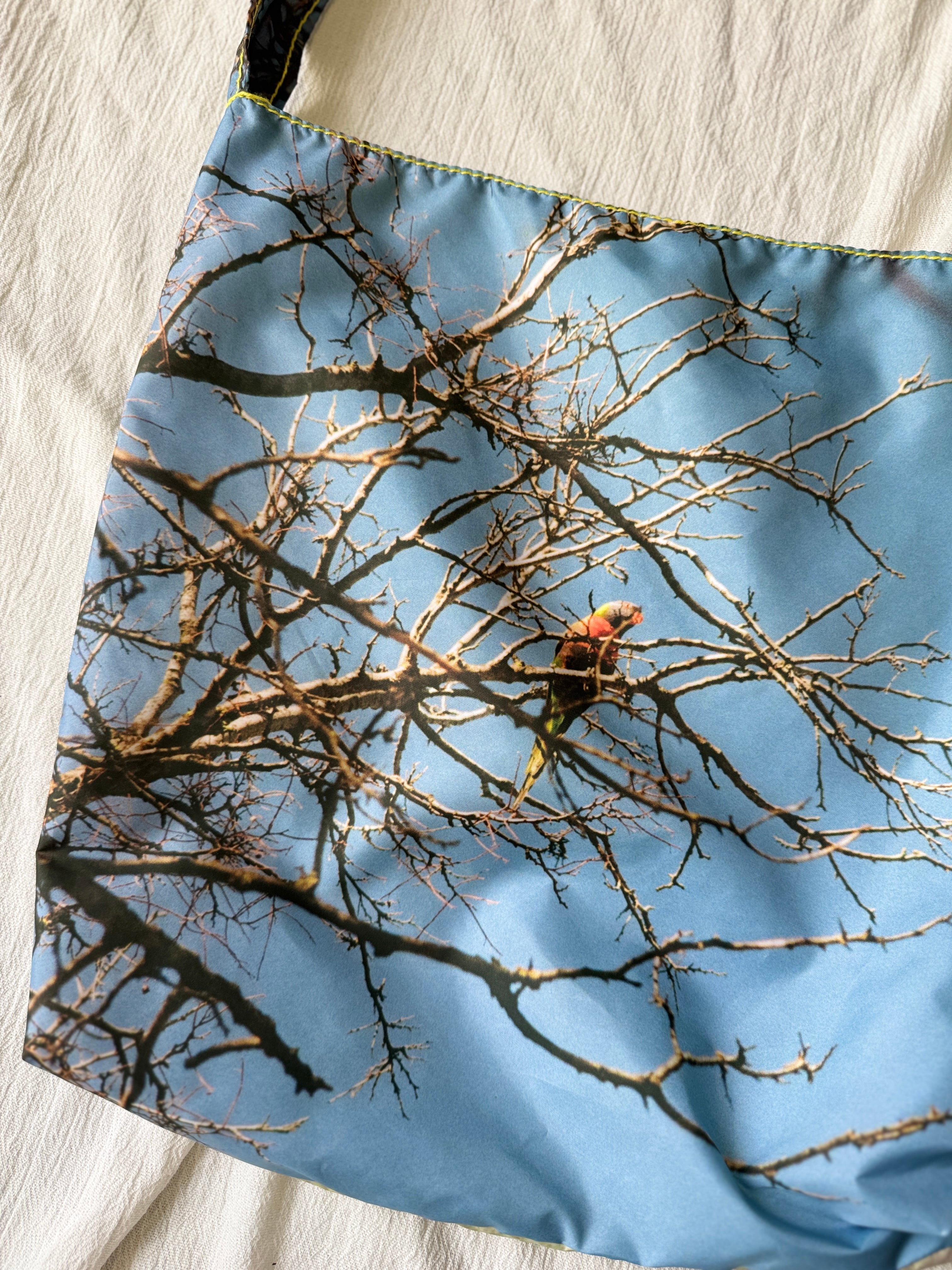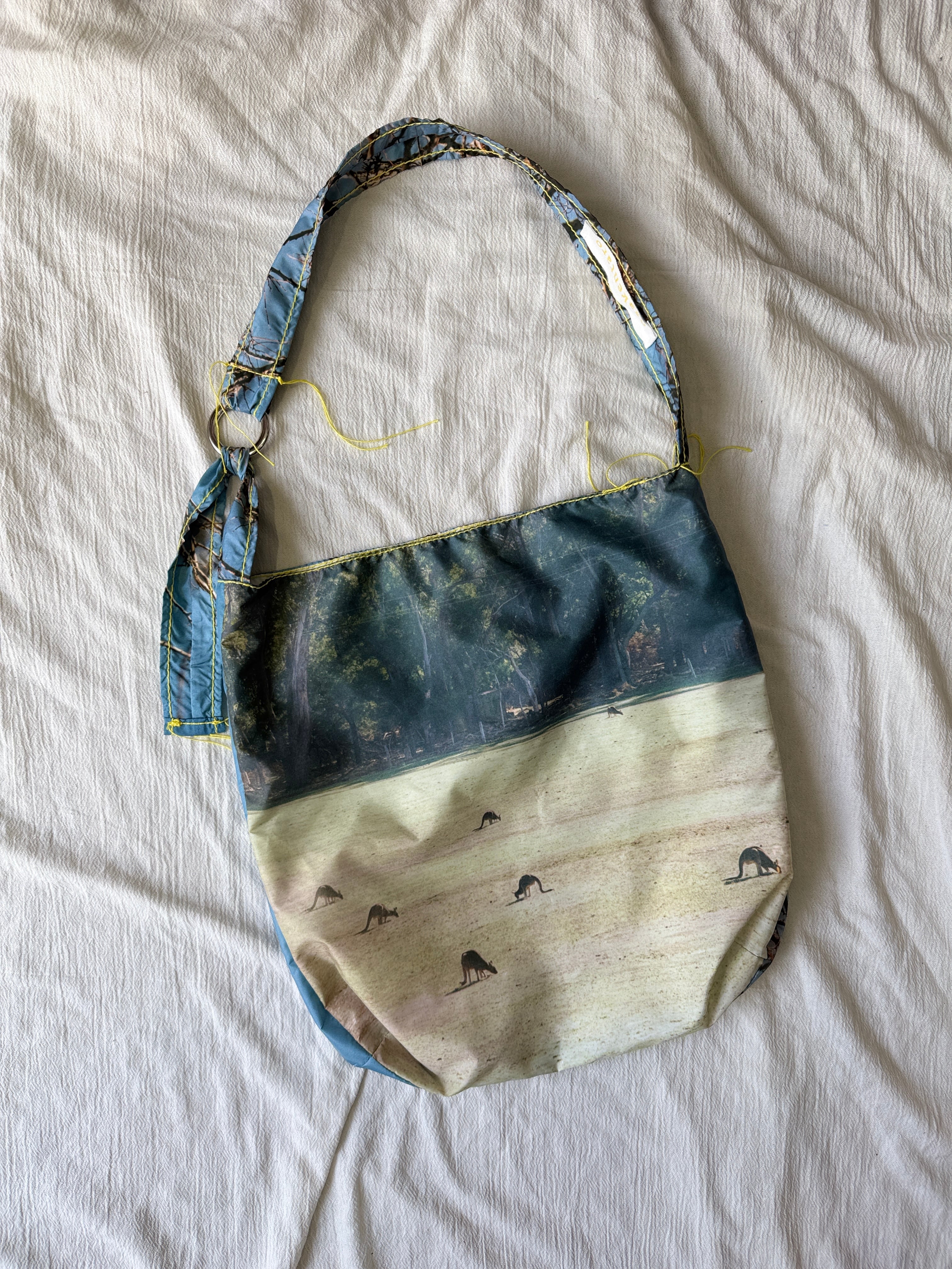 デザイナーがオーストラリアの旅で撮った写真をプリントしたバッグ