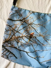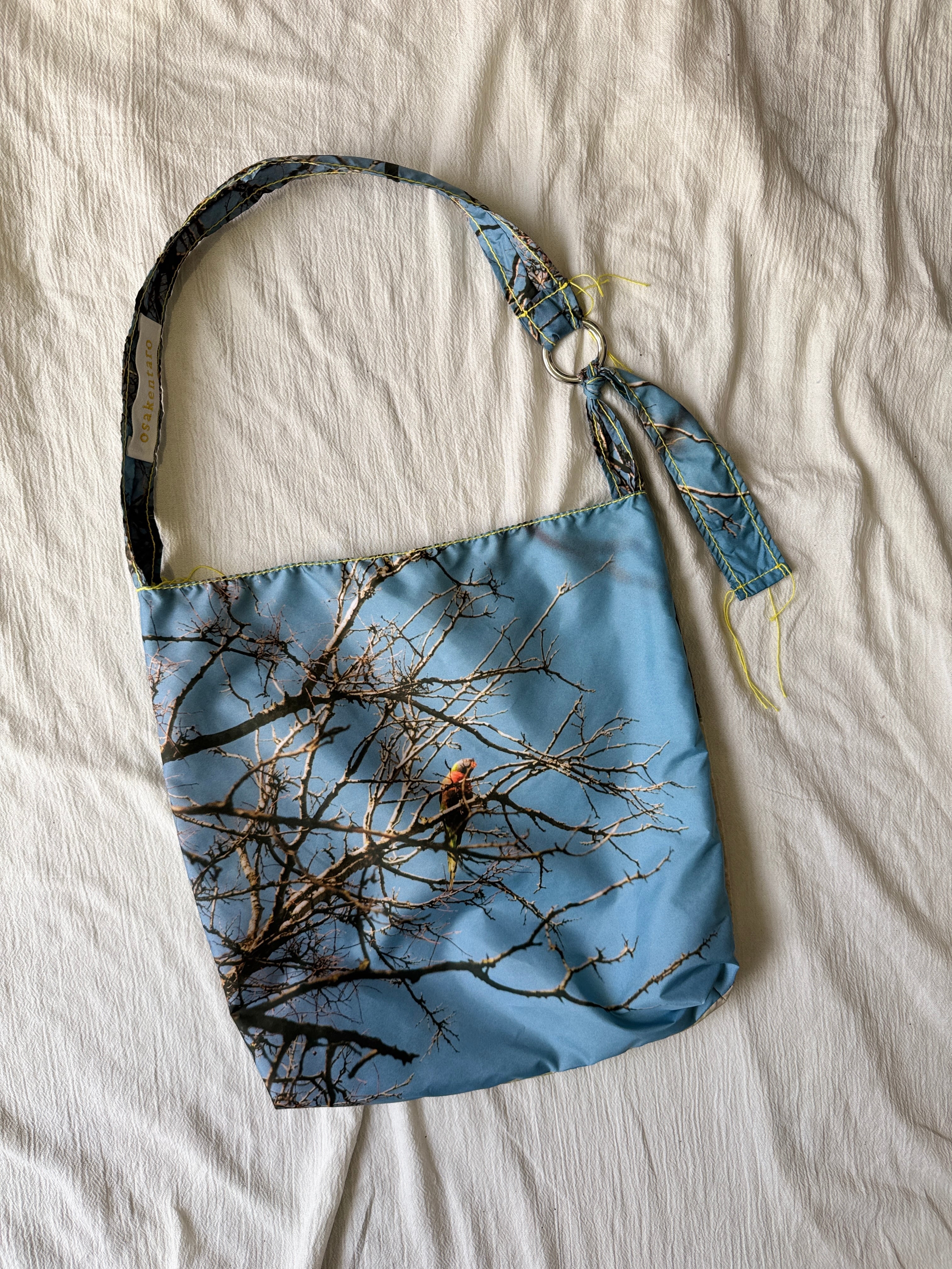 osakentaro / taffeta print shoulder bag / bird / kangaroo / yellow stitch