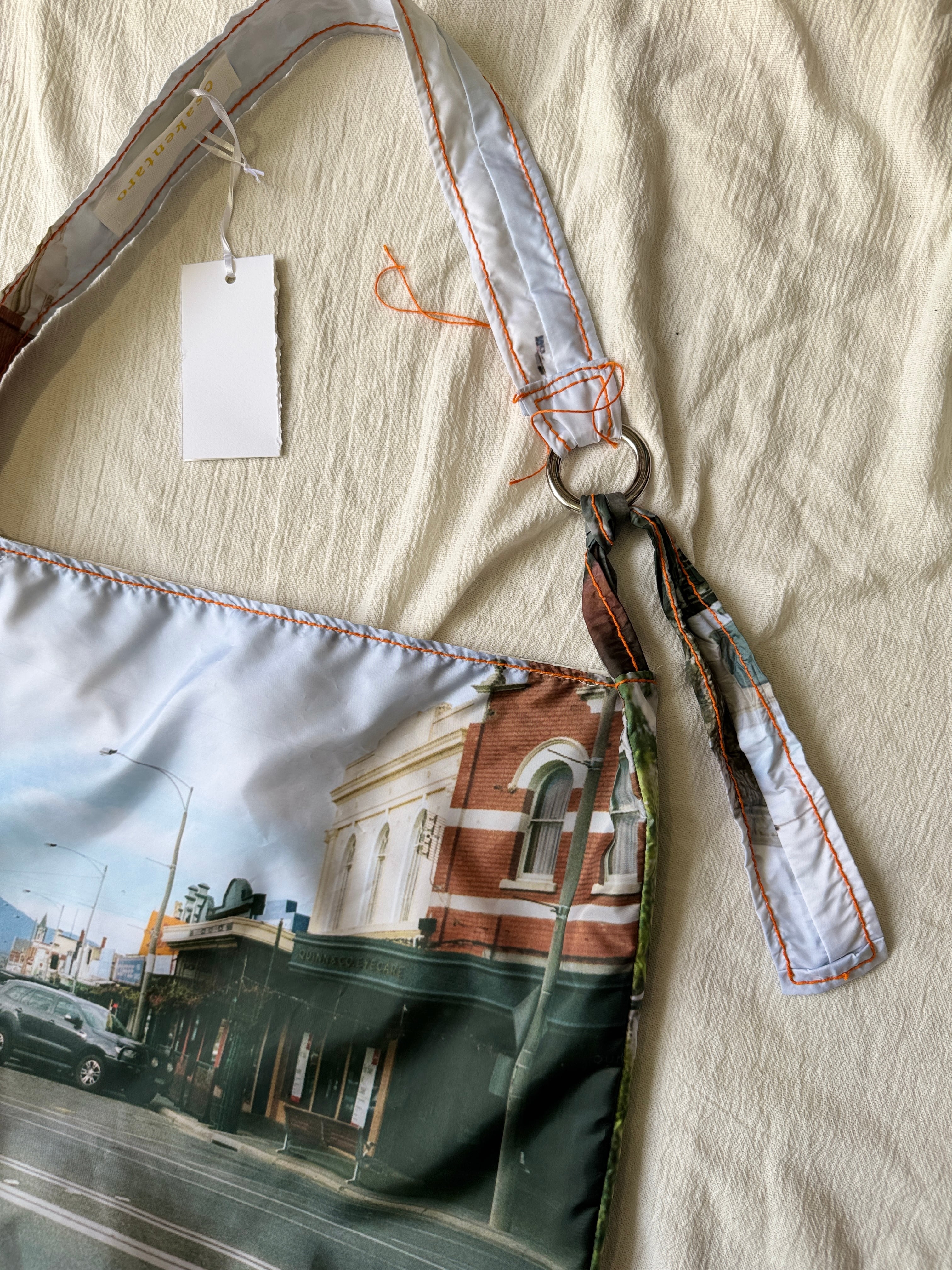 osakentaro / taffeta print shoulder bag / 街並み / プール / orange stitch