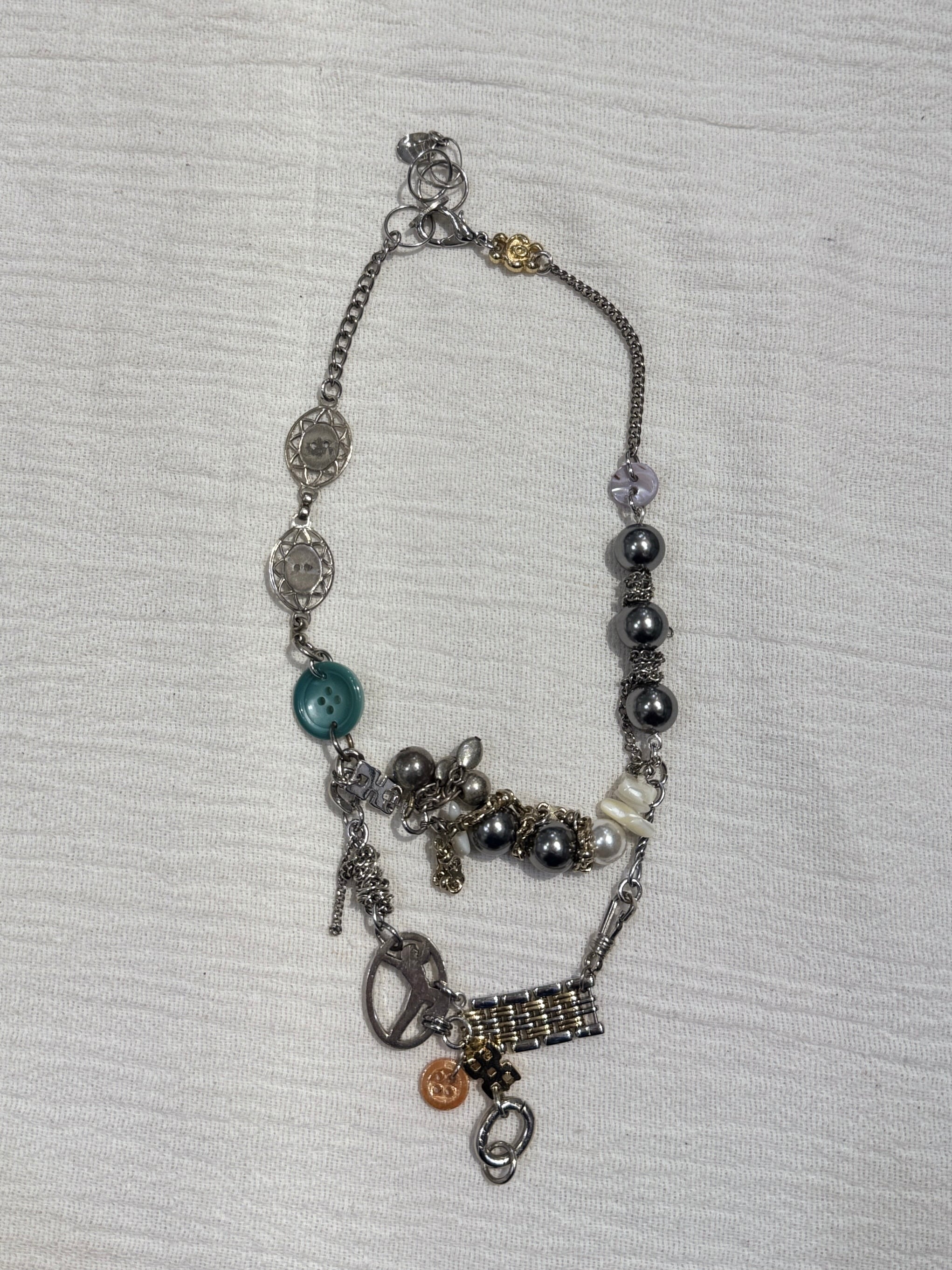 リサイクル品や廃材を組み合わせて製作したネックレス。