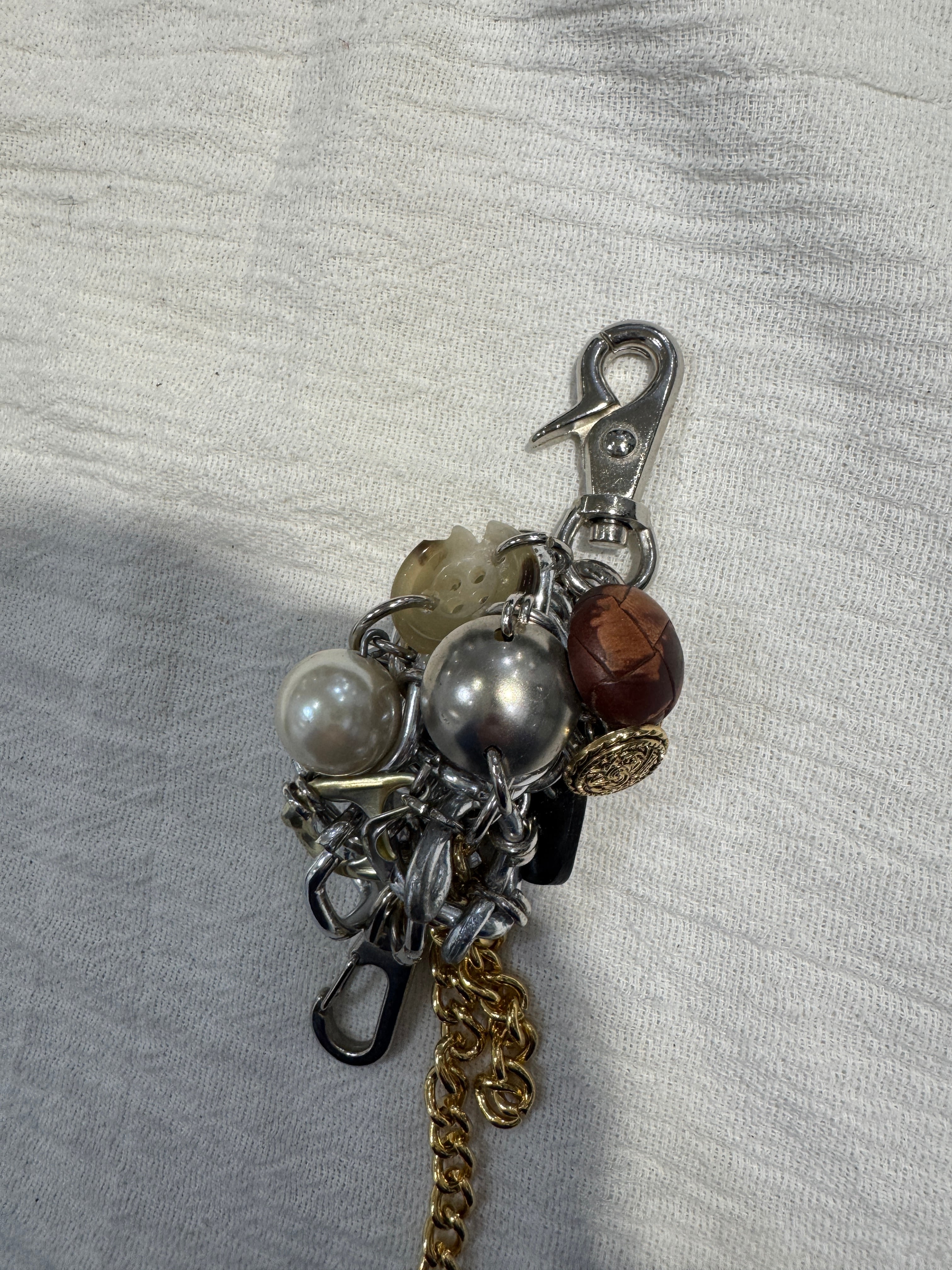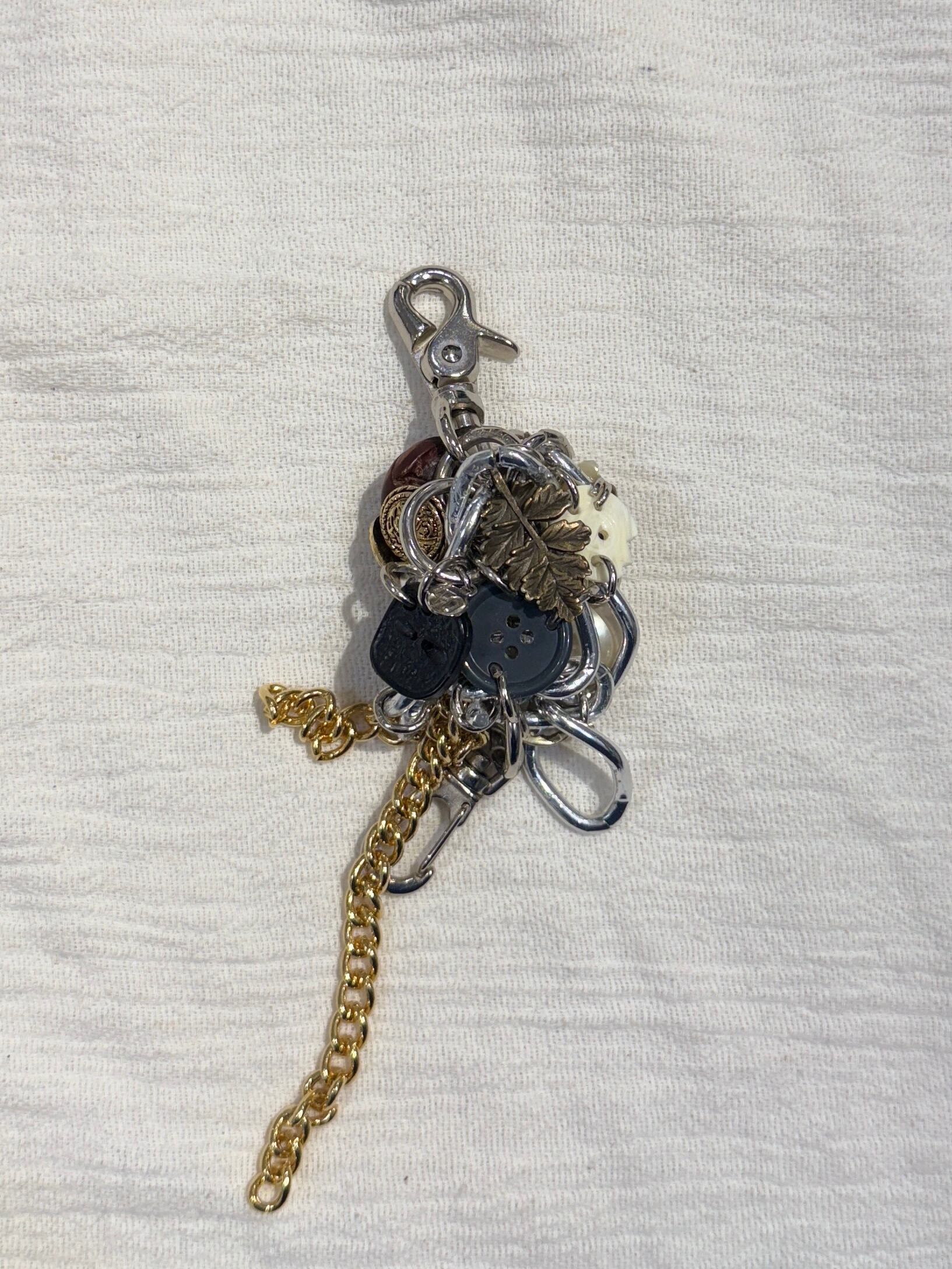 リサイクル品や廃材を組み合わせて製作したキーチェーン。