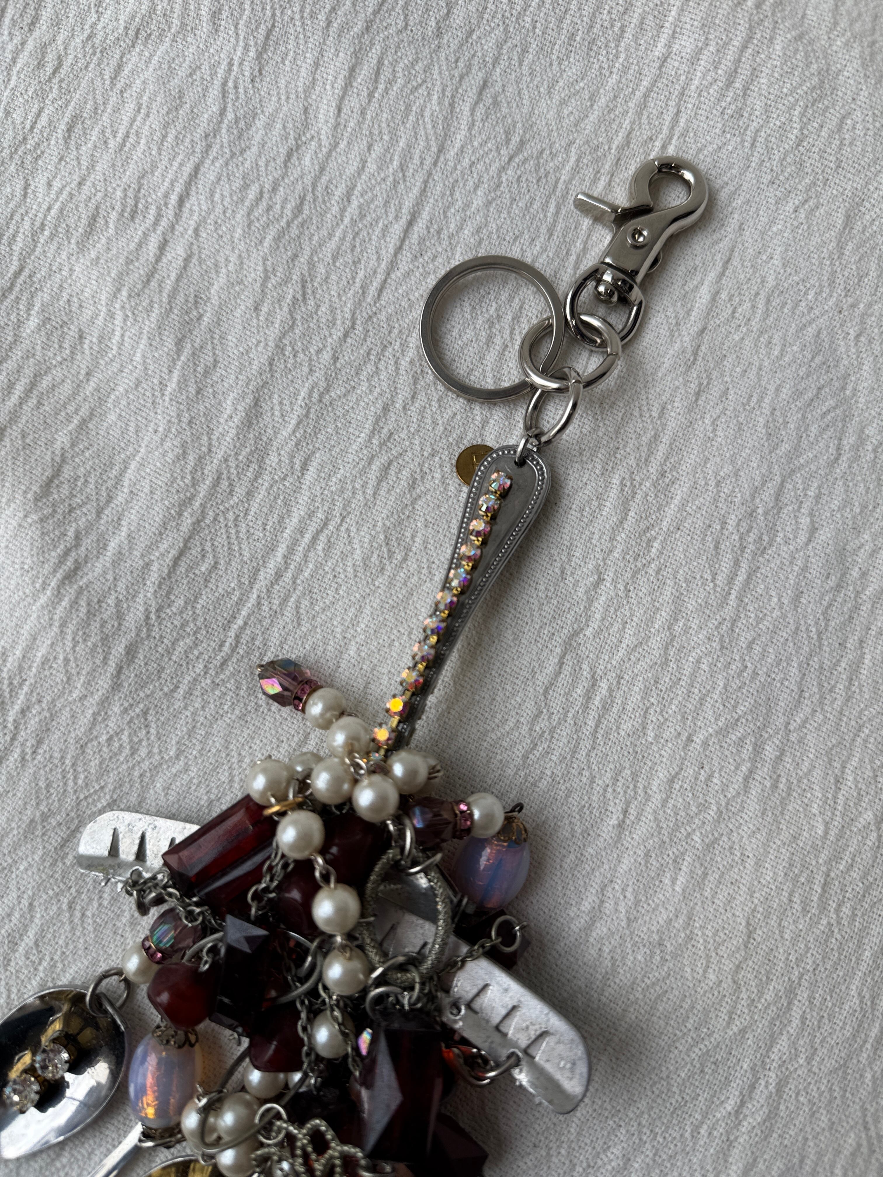 リサイクル品や廃材を組み合わせて製作したキーチェーン。