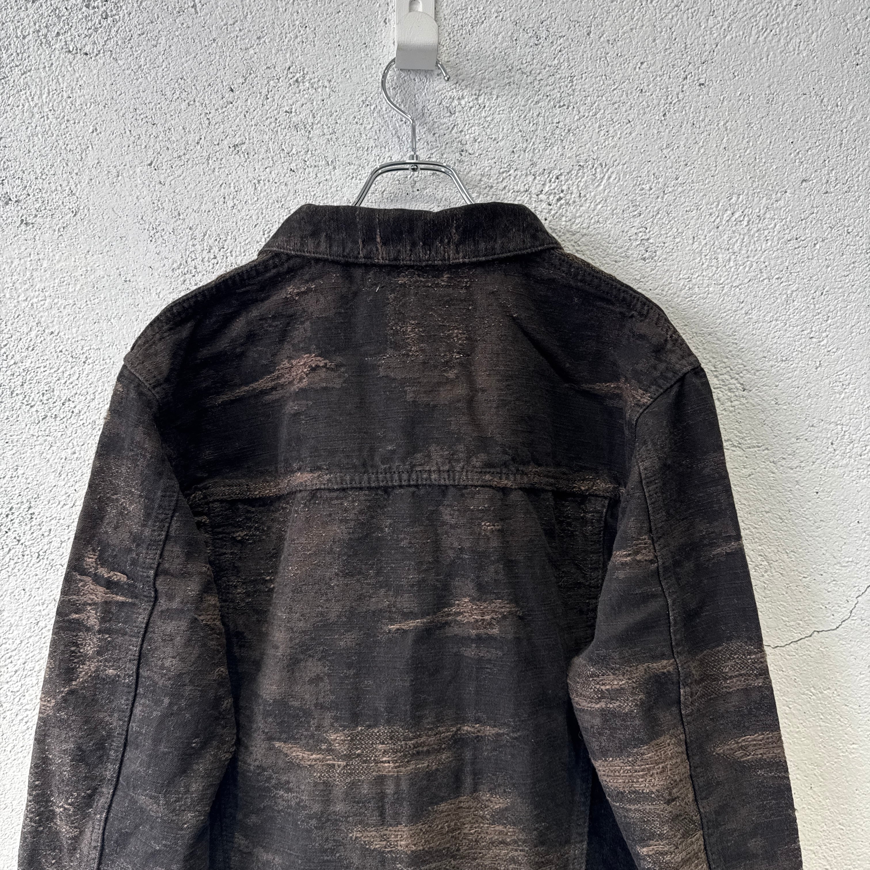 経年変化による色落ちやアタリを、プリントや加工ではなく、ネップ糸を織り込んだジャカード織りで表現したデニムジャケット