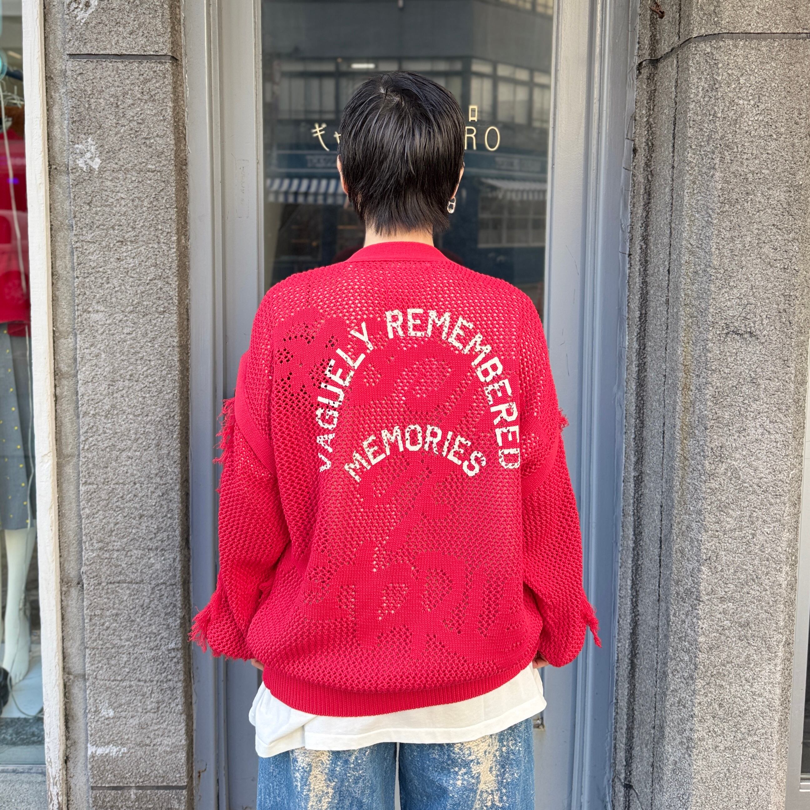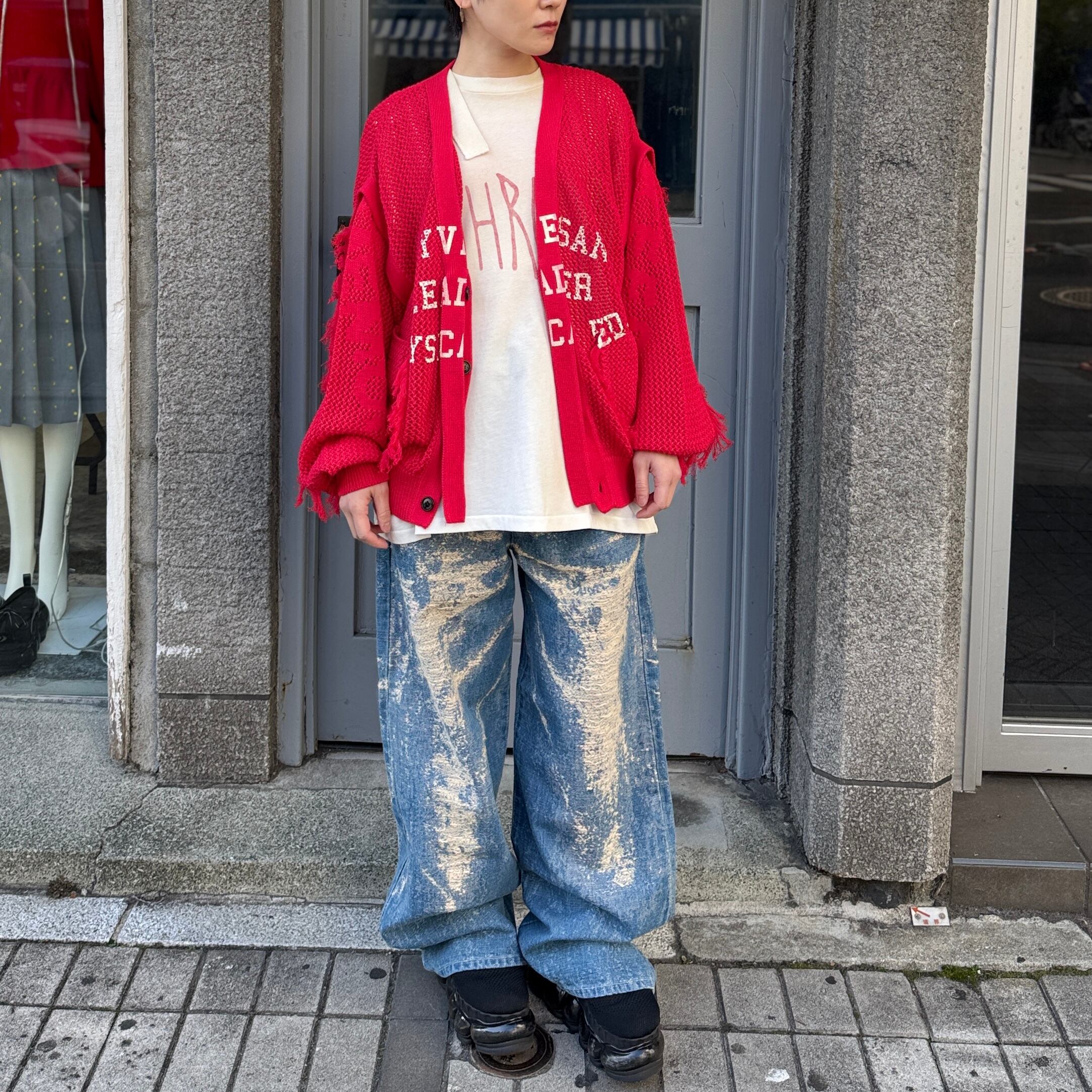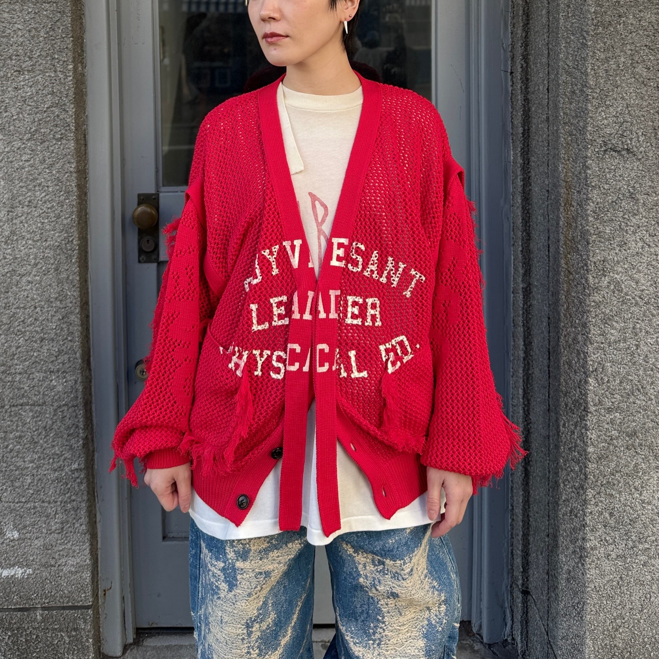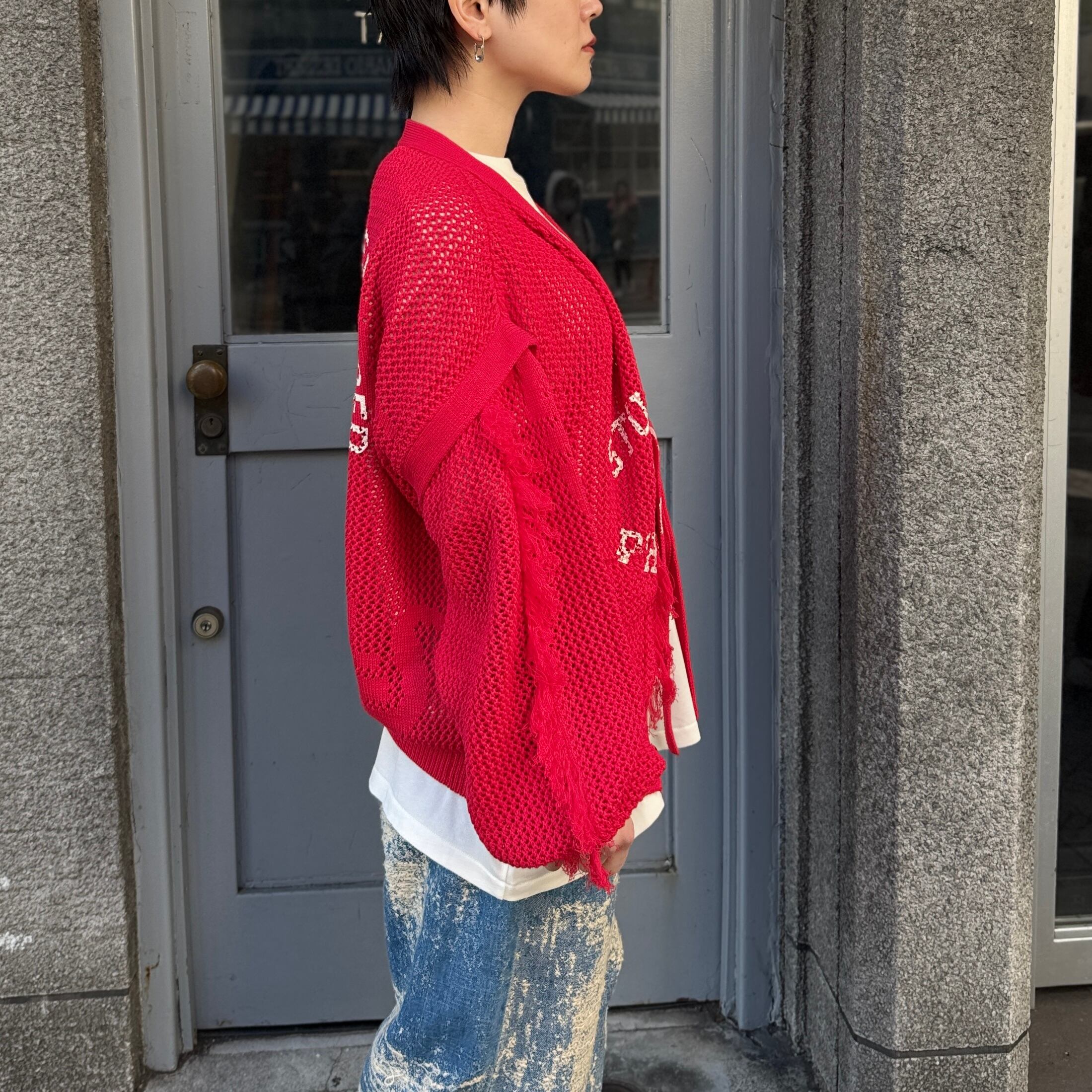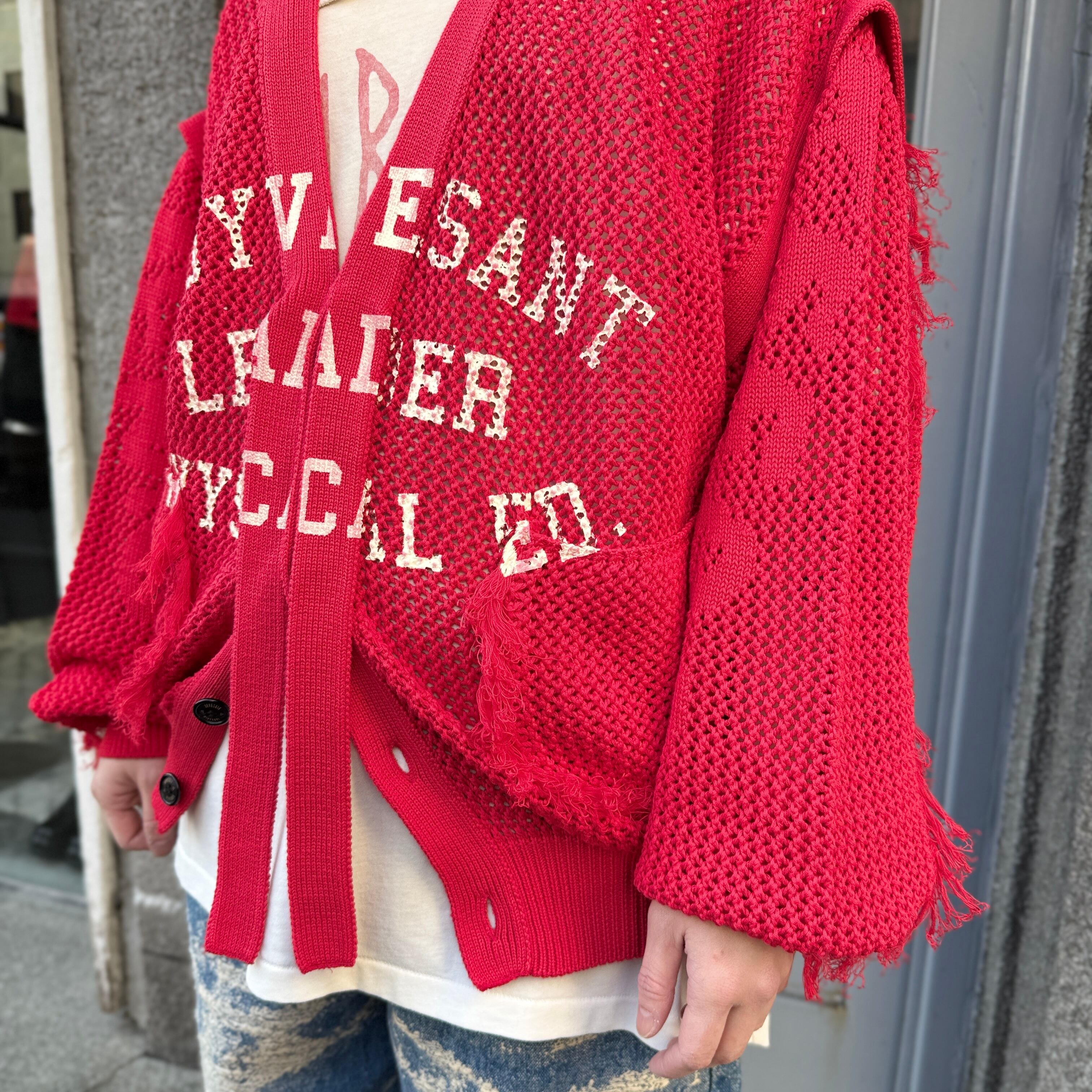 SEVESKIG / Dropout Mesh Cardigan / RED