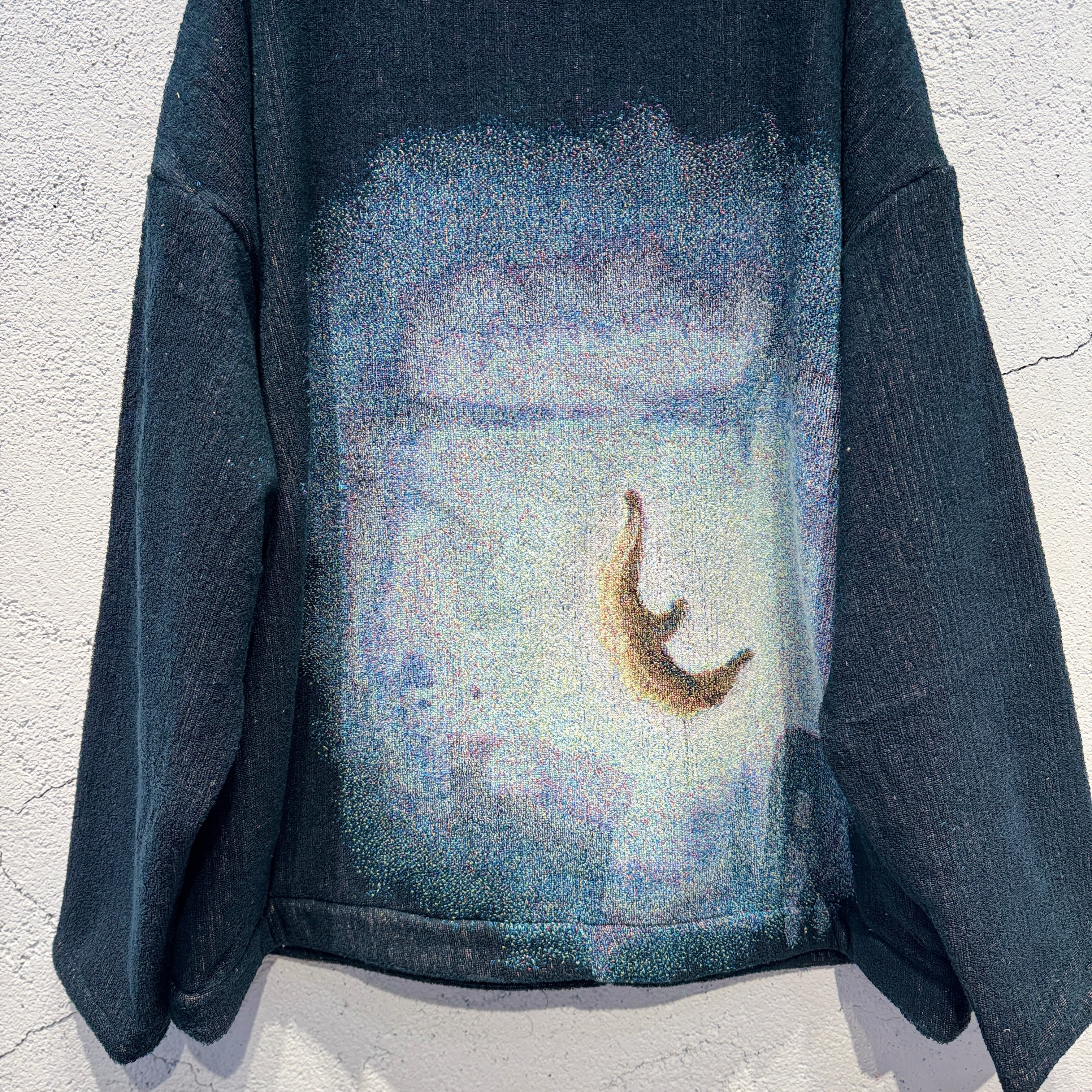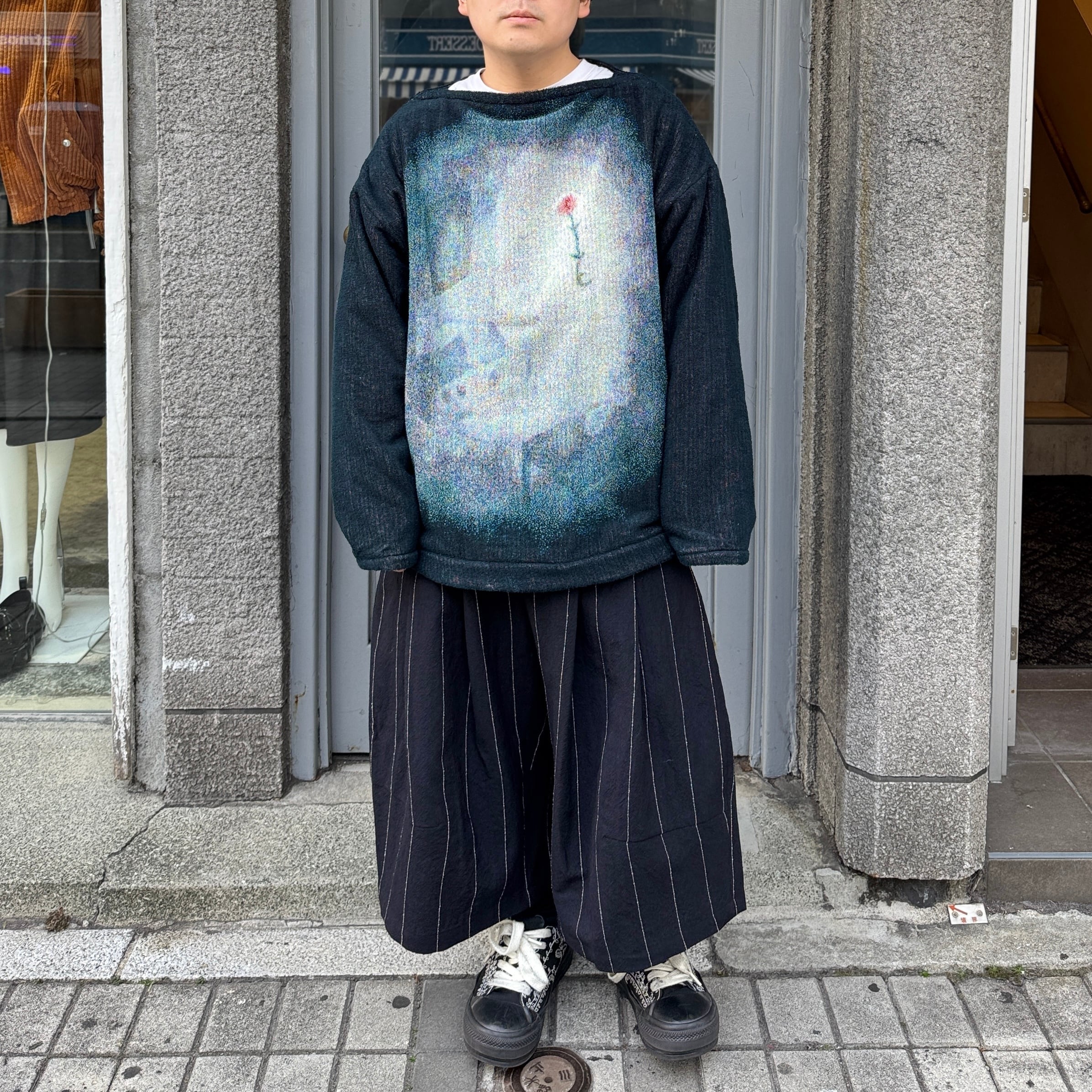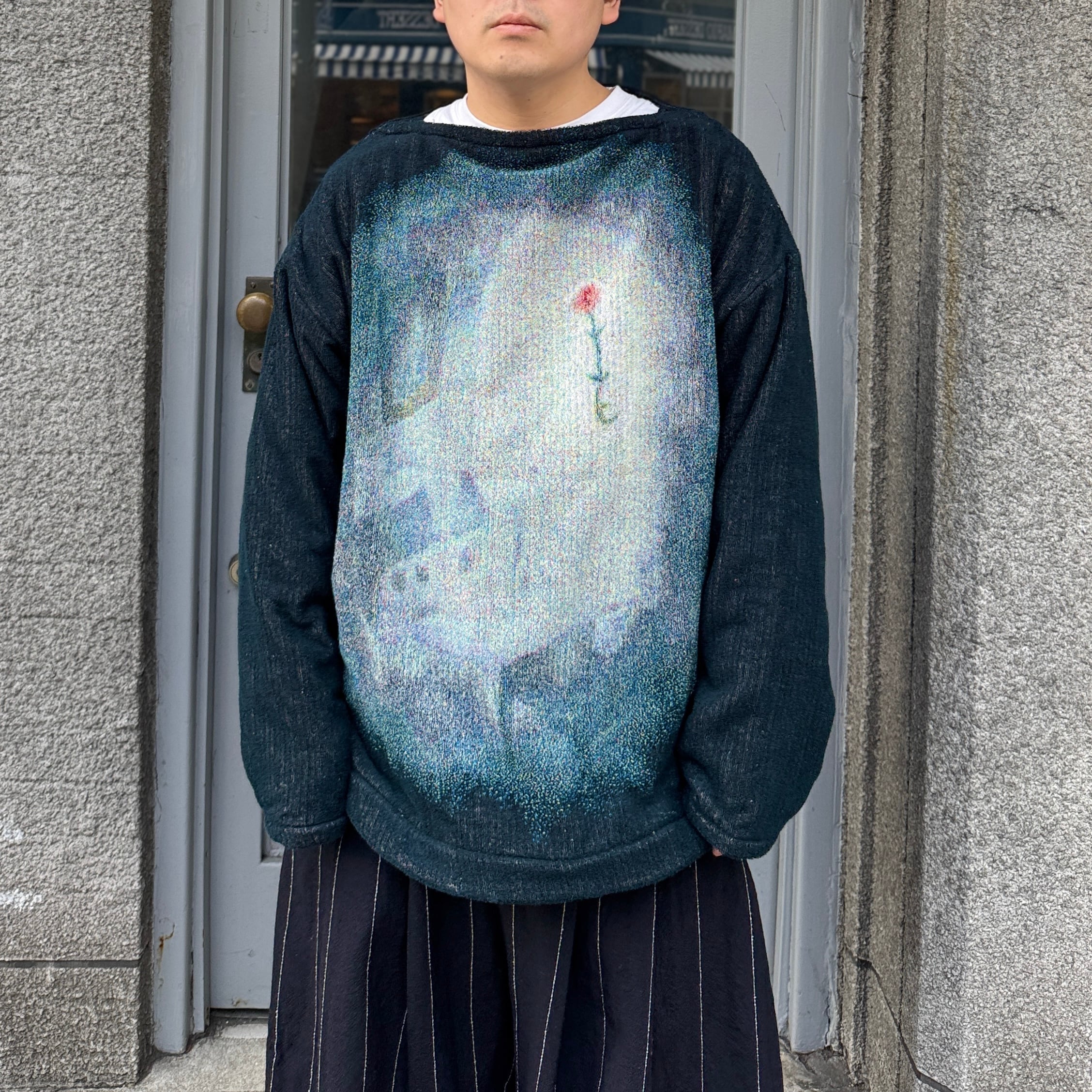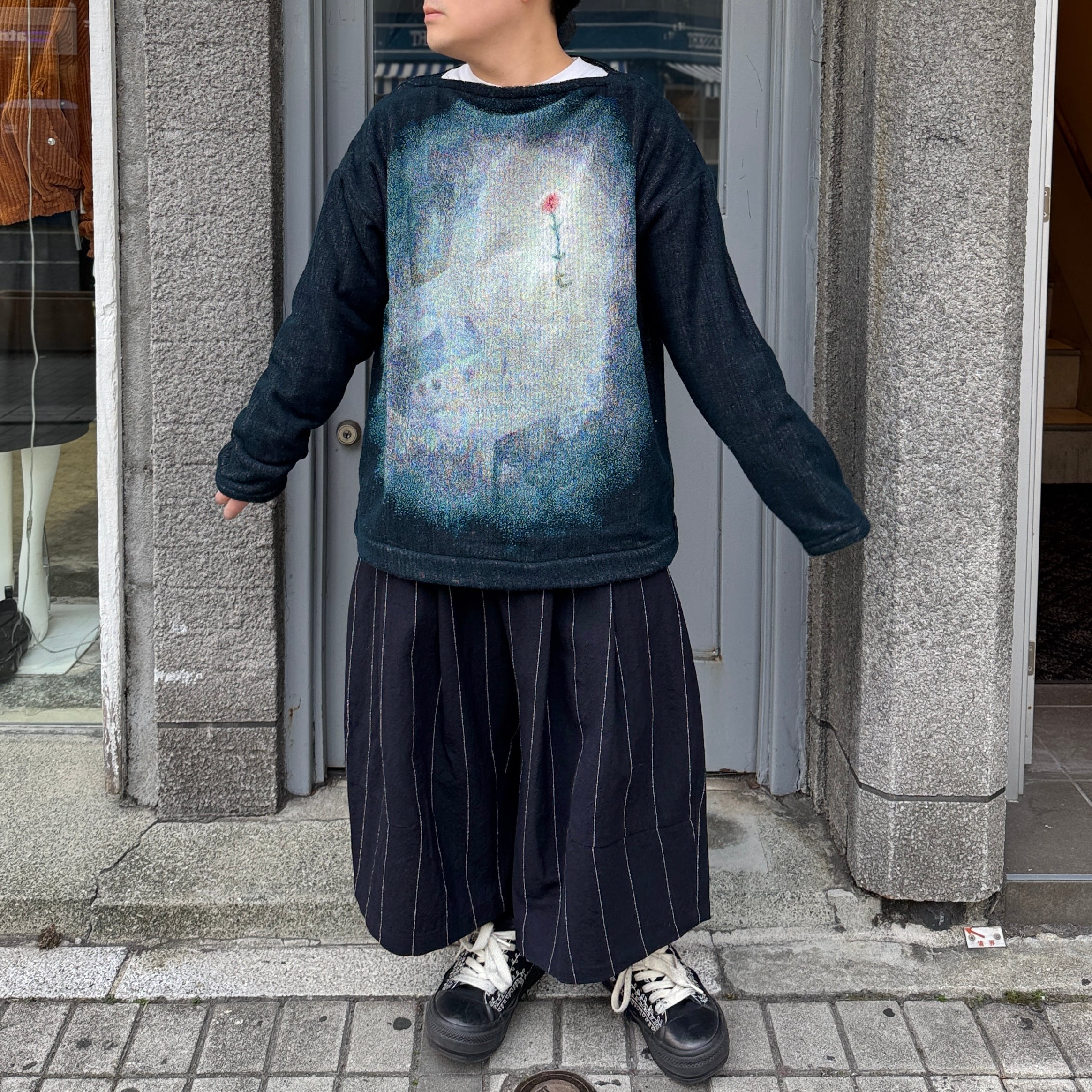 今シーズンのコレクションを象徴するデザイナーによる手描きの絵をジャカード織で表現したパイル生地のプルオーバー