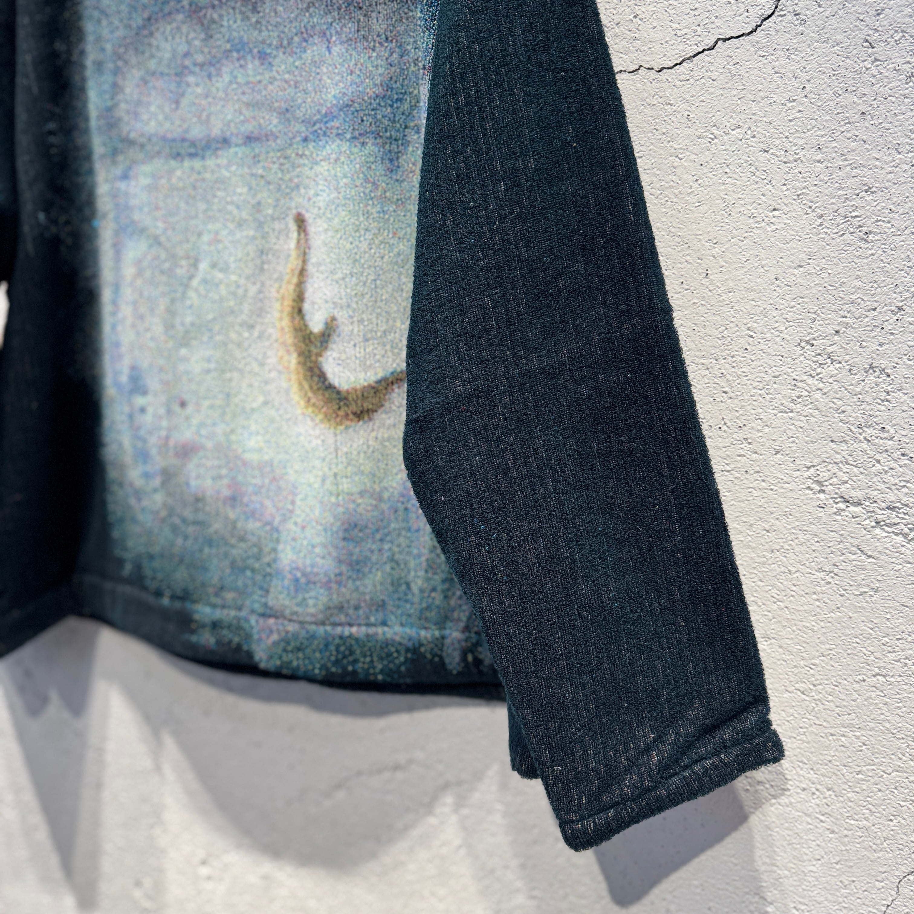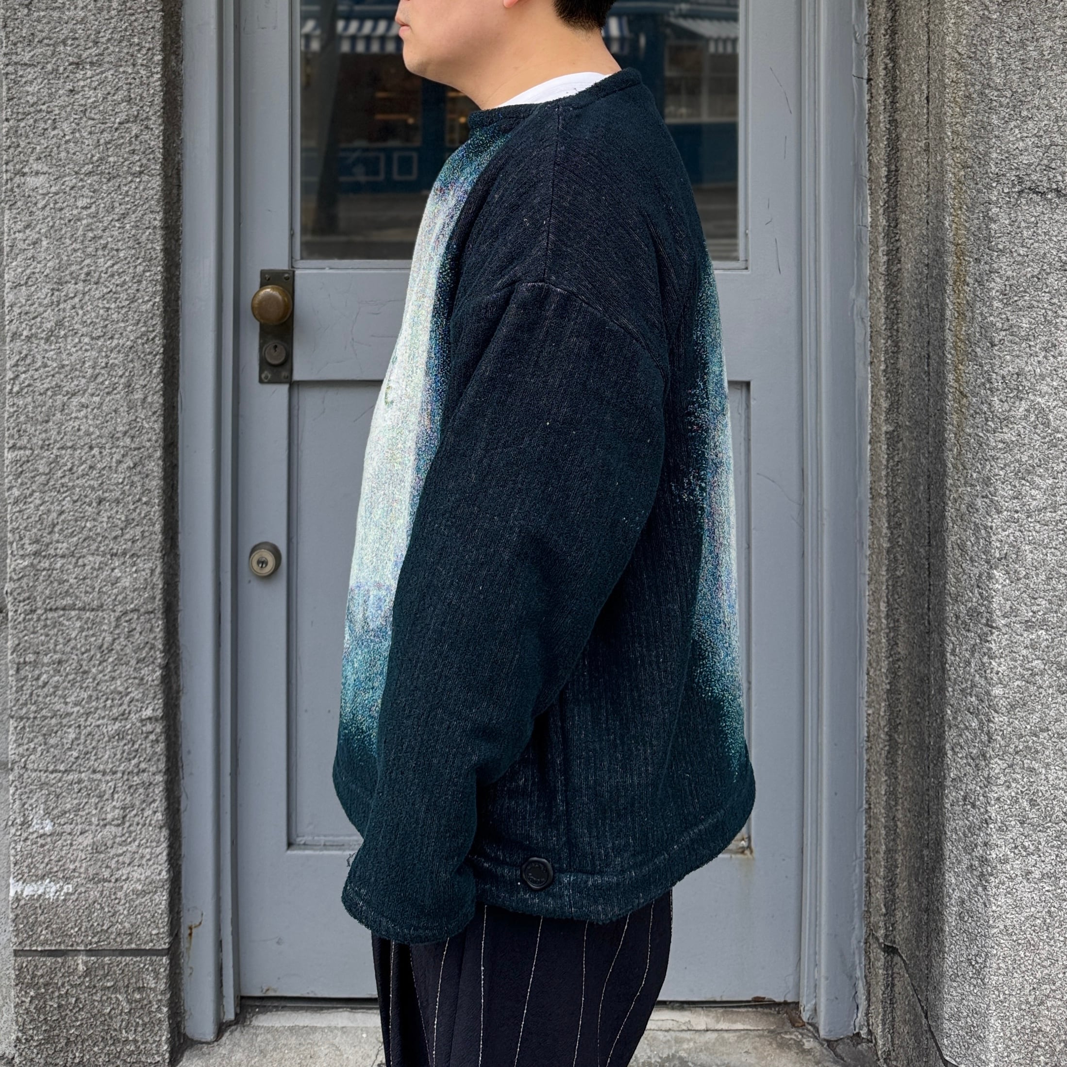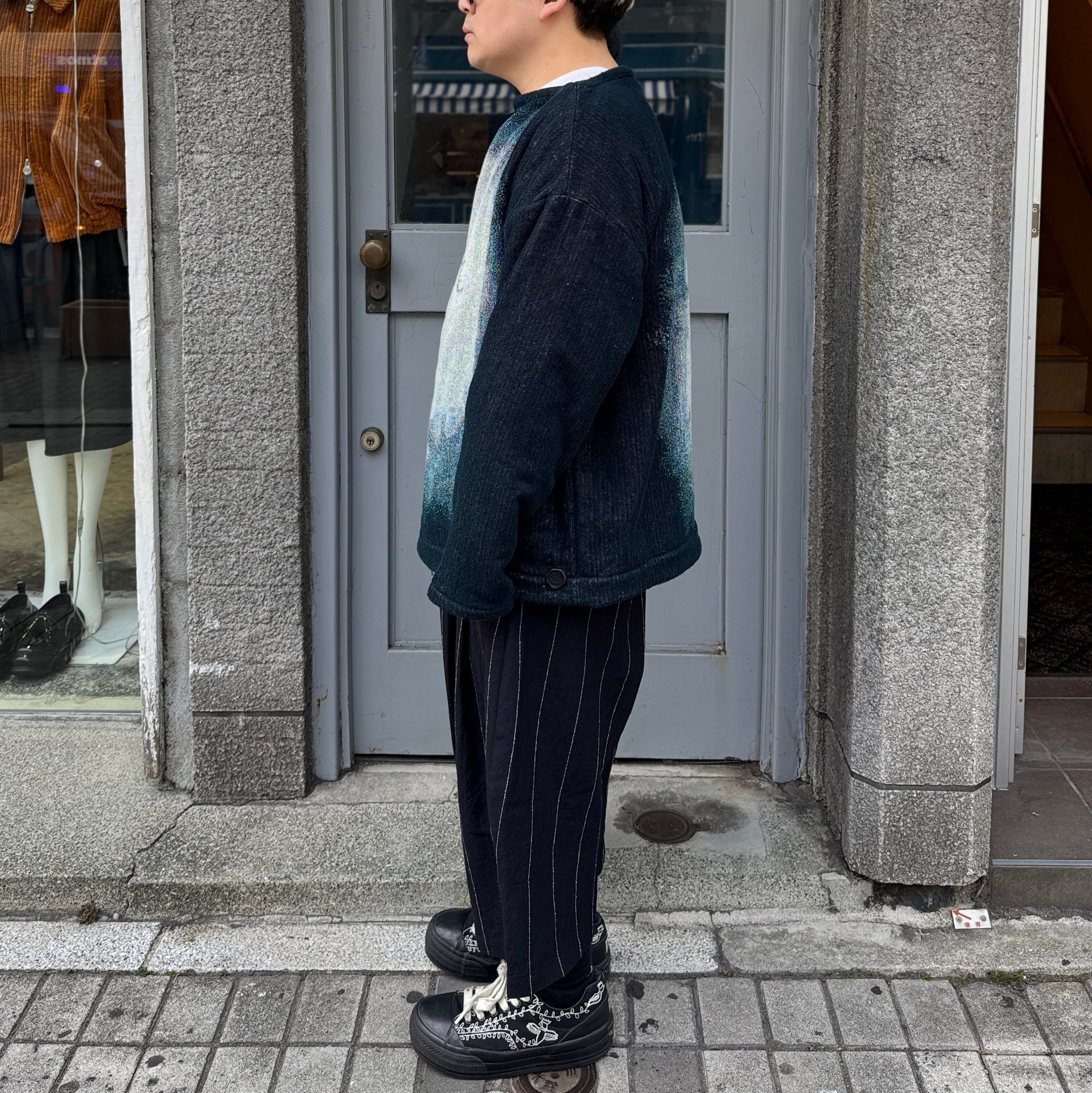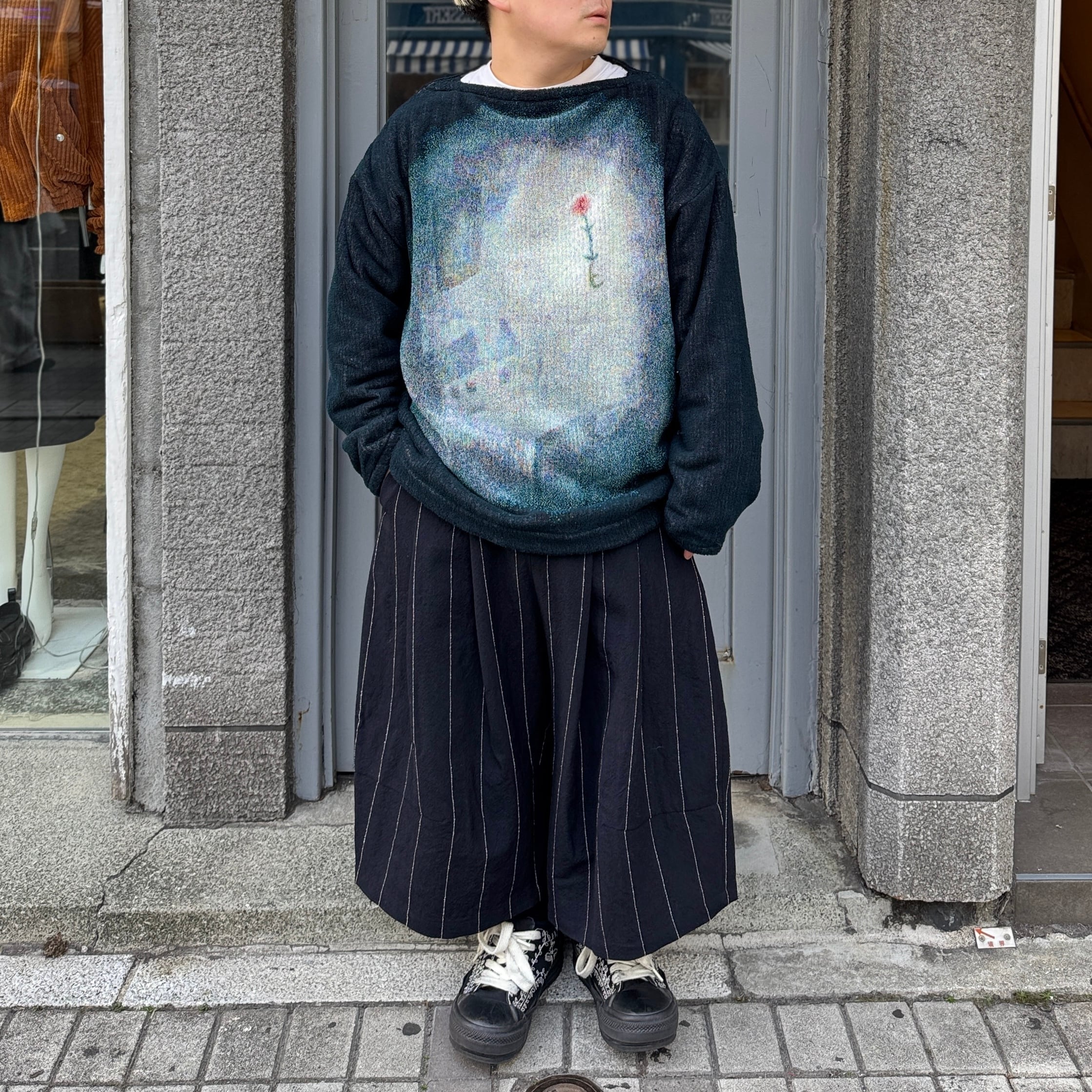 今シーズンのコレクションを象徴するデザイナーによる手描きの絵をジャカード織で表現したパイル生地のプルオーバー