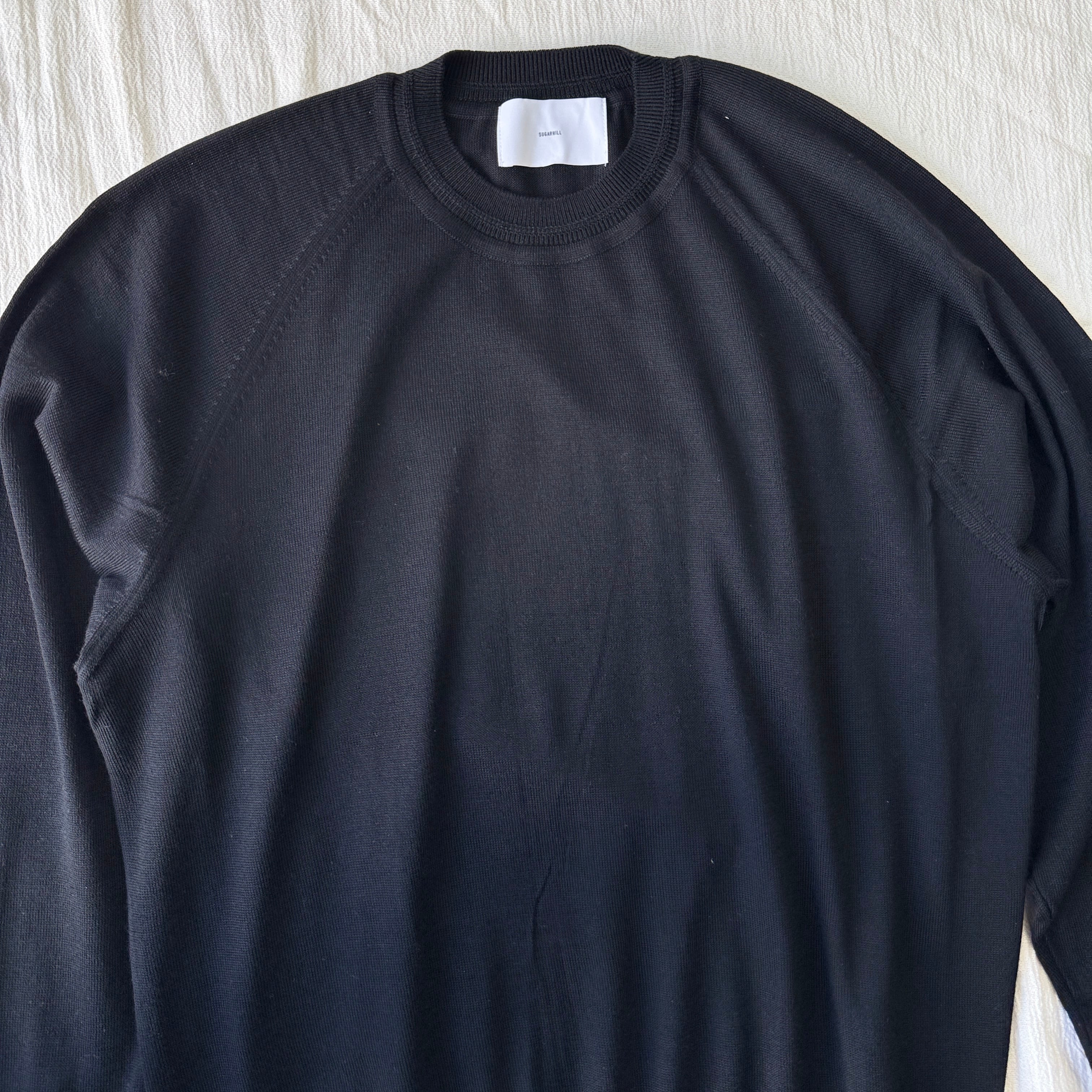 身幅に適度にゆとりを持たせ、ラグランスリーブで少しリラックス感のあるサイズ感です