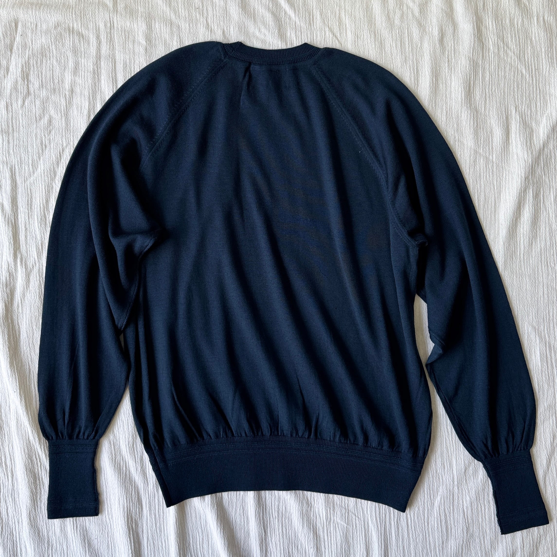 細くて長いウールの糸で編んだハイゲージニット