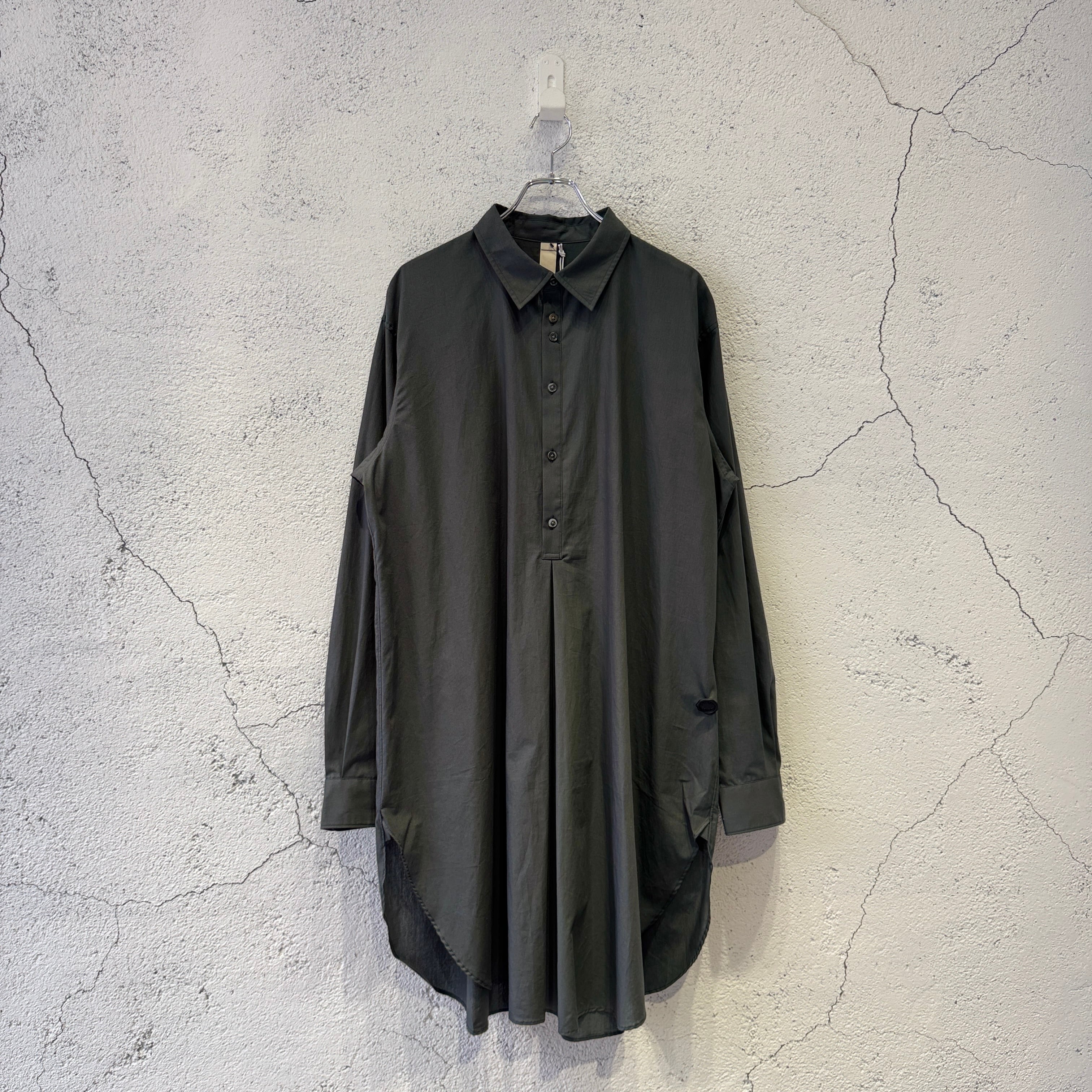 ハーフボタンのロングシャツ