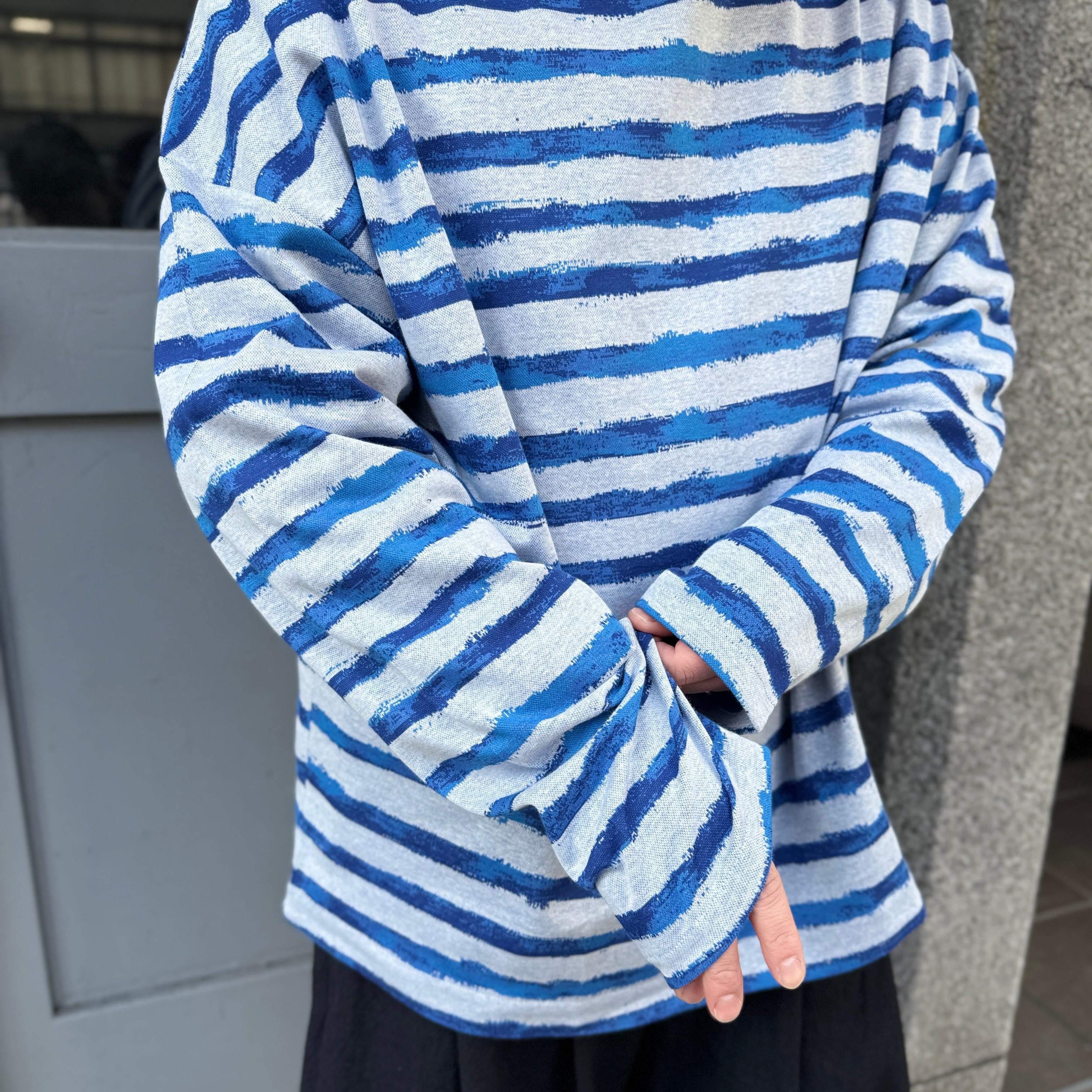デザイナーが手描きで描いたボーダー柄をジャカードで表現したプルオーバー