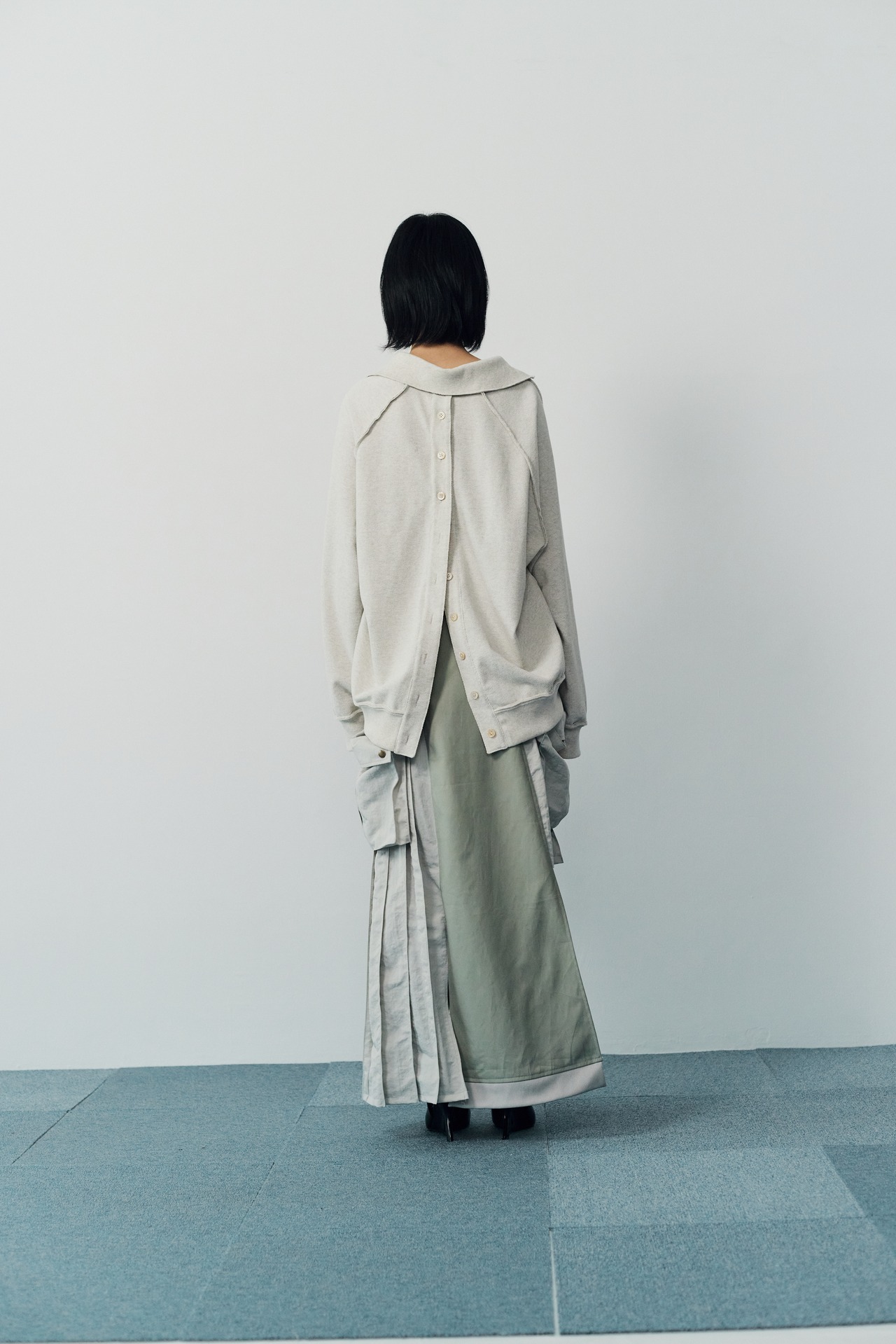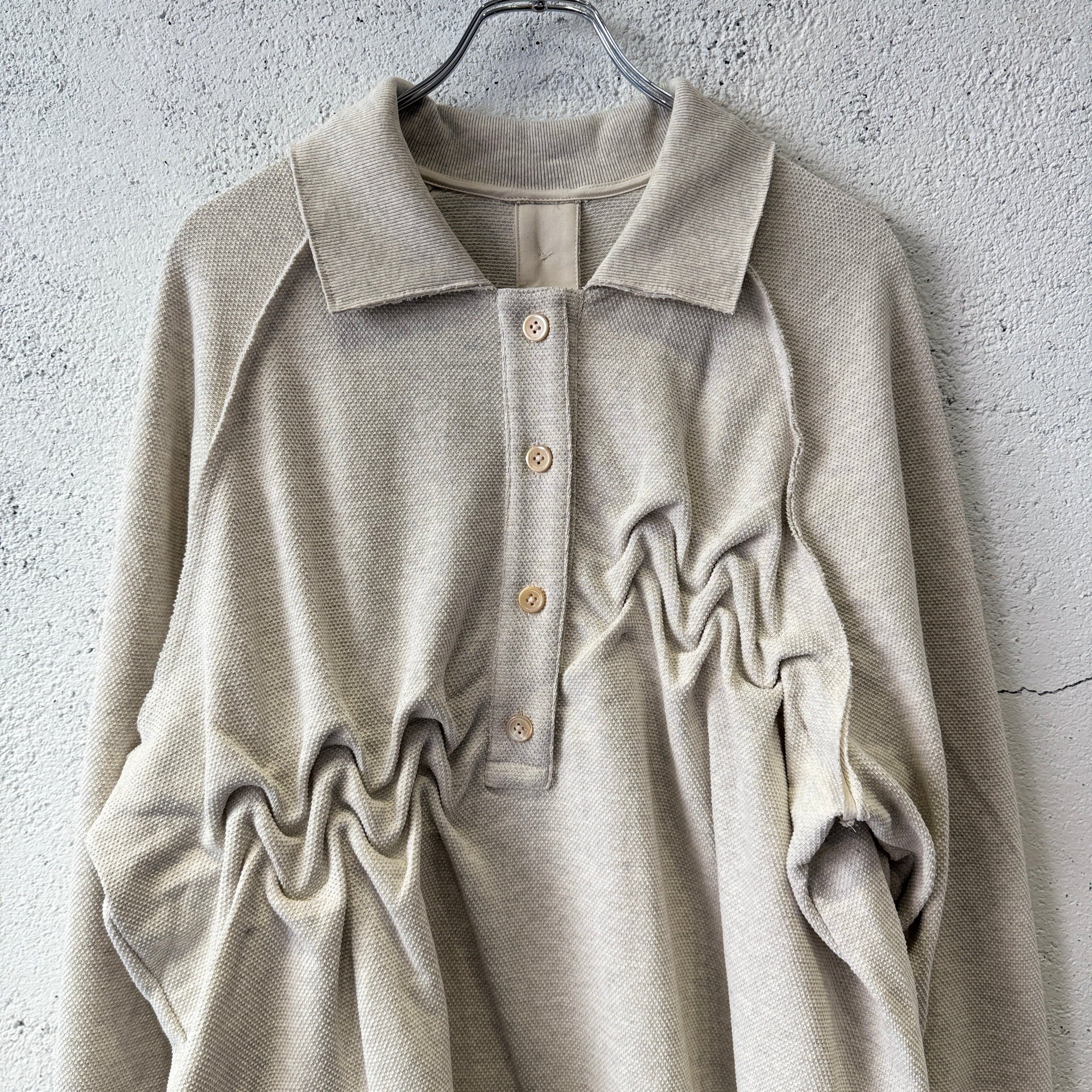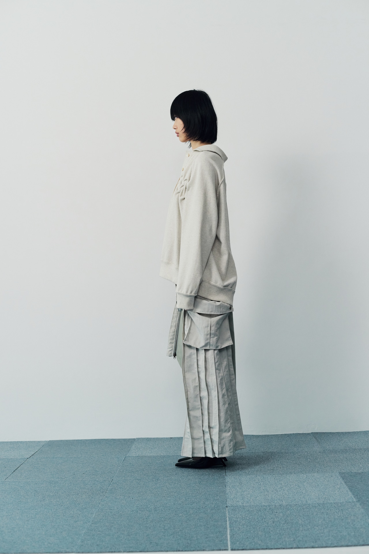 1枚の布に施されたスモッキング刺繍は、まるで広大なキャンバスに描かれたアート作品のようで、ドラマティックな印象を与える。
