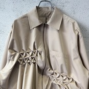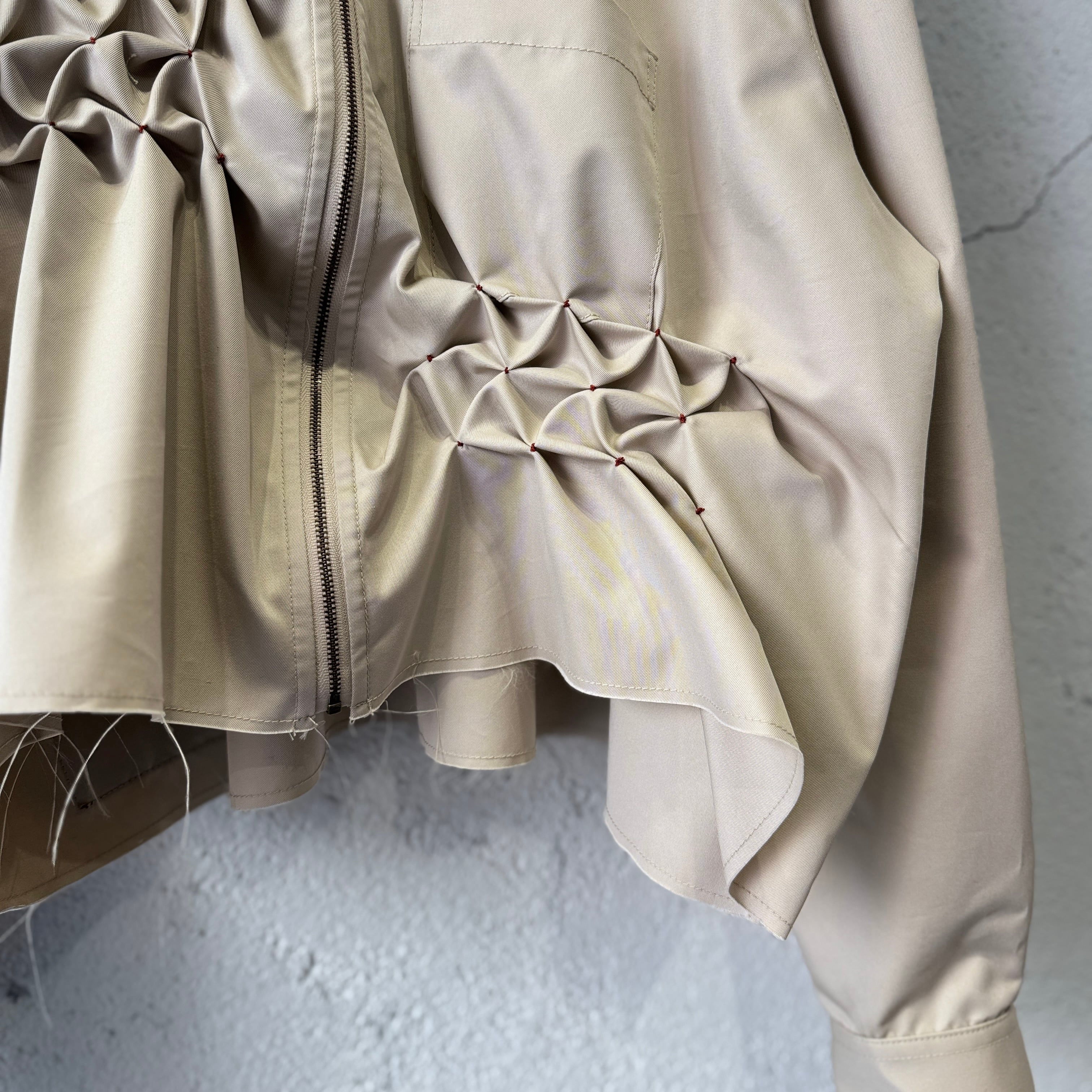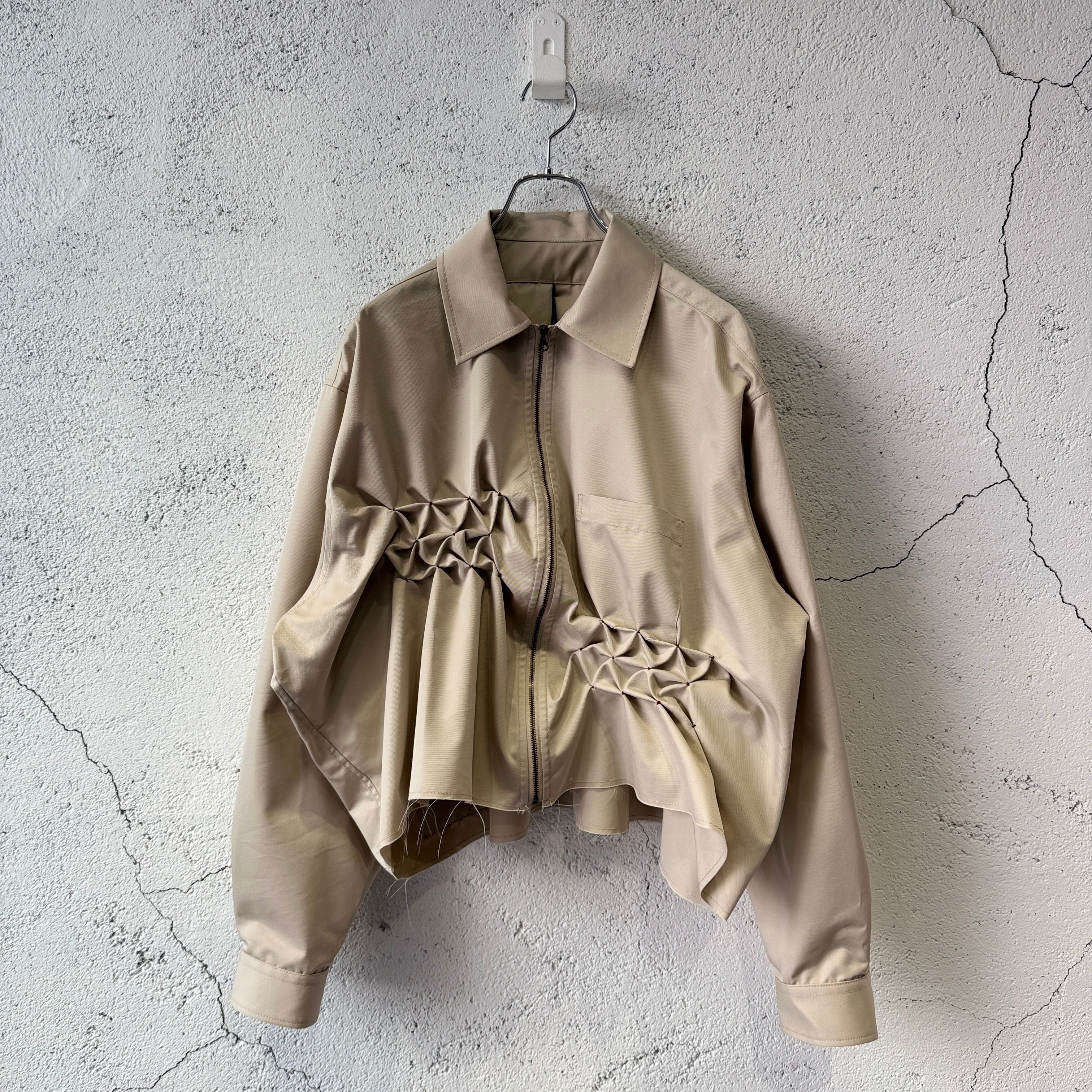 スモッキング刺繍が特徴的なジップシャツ