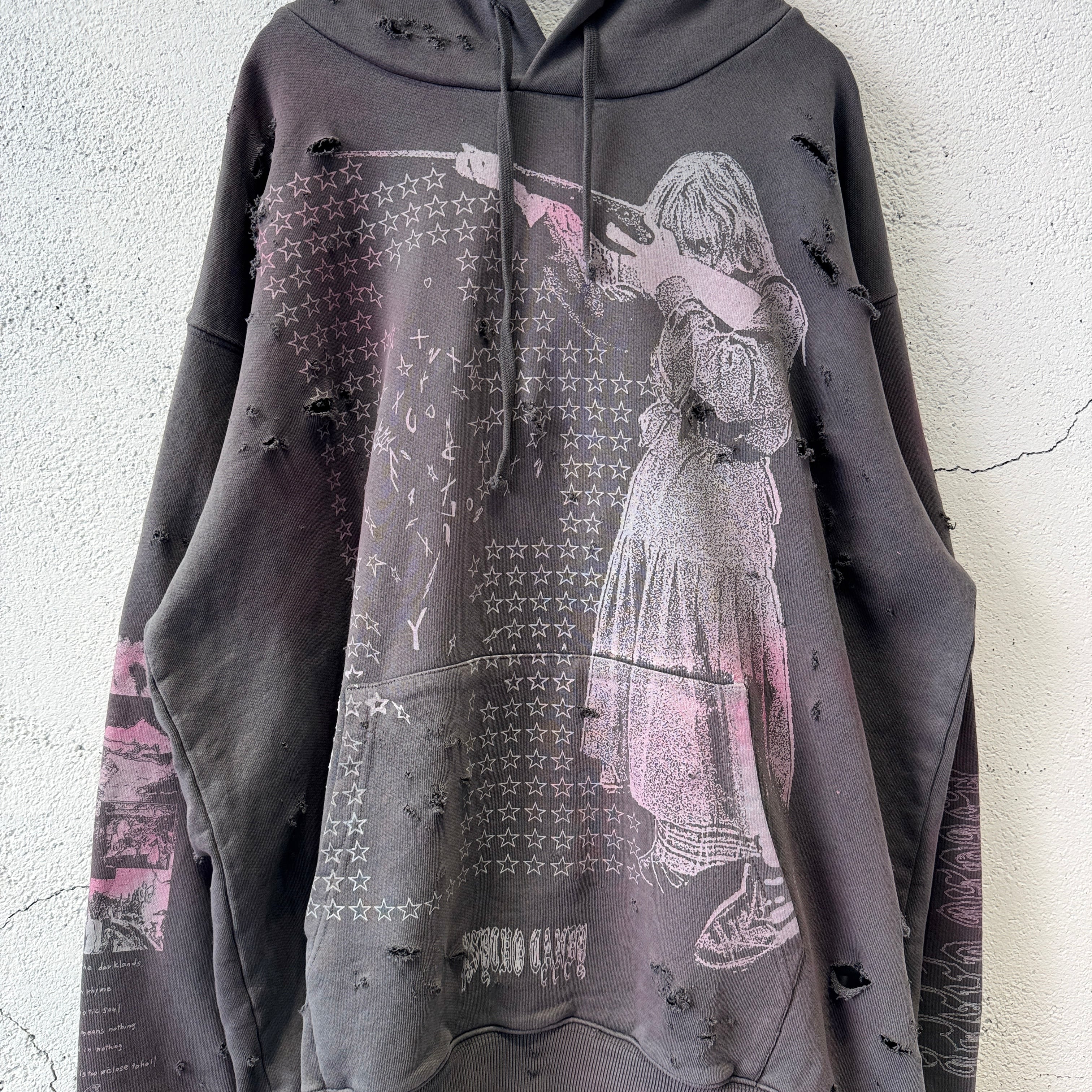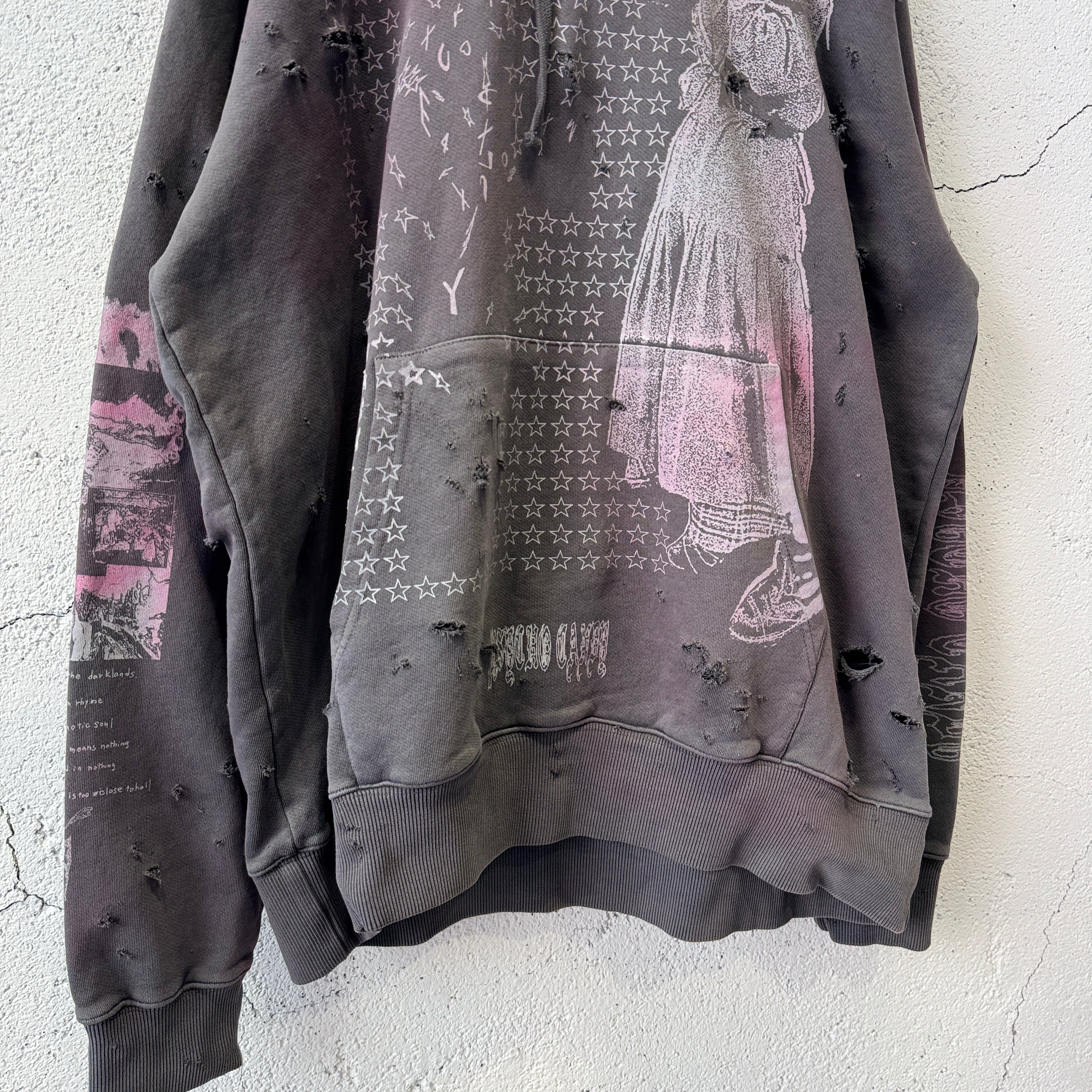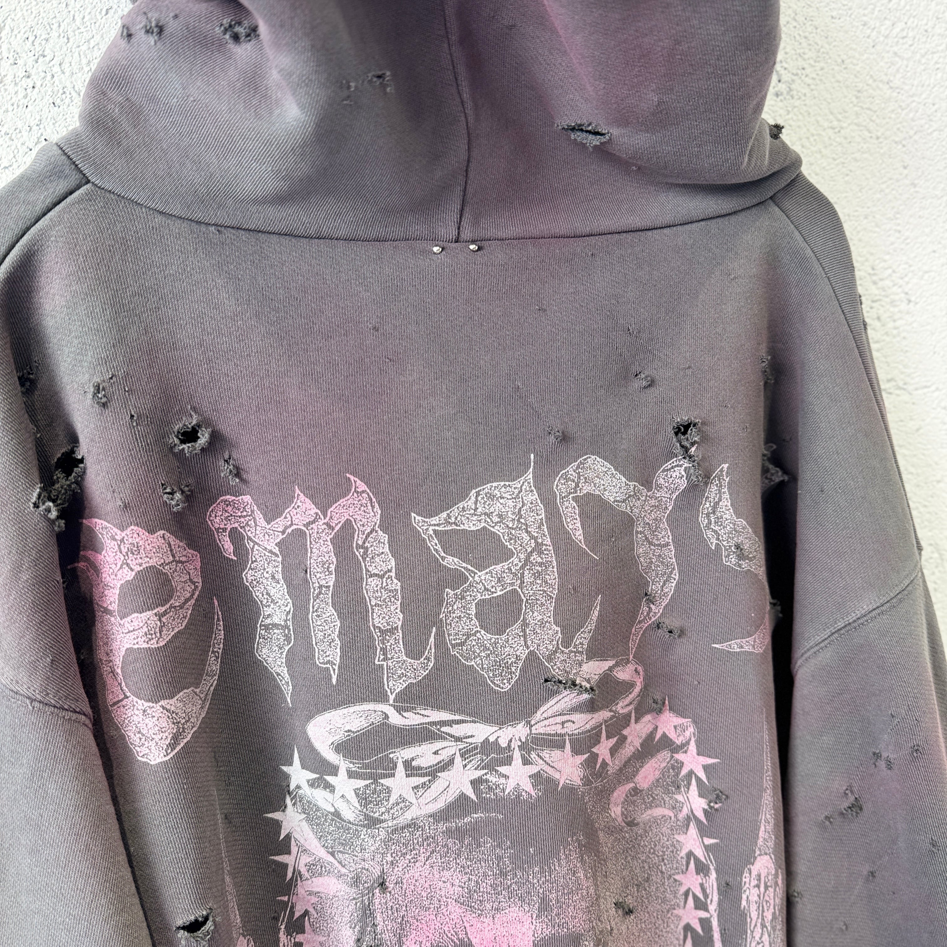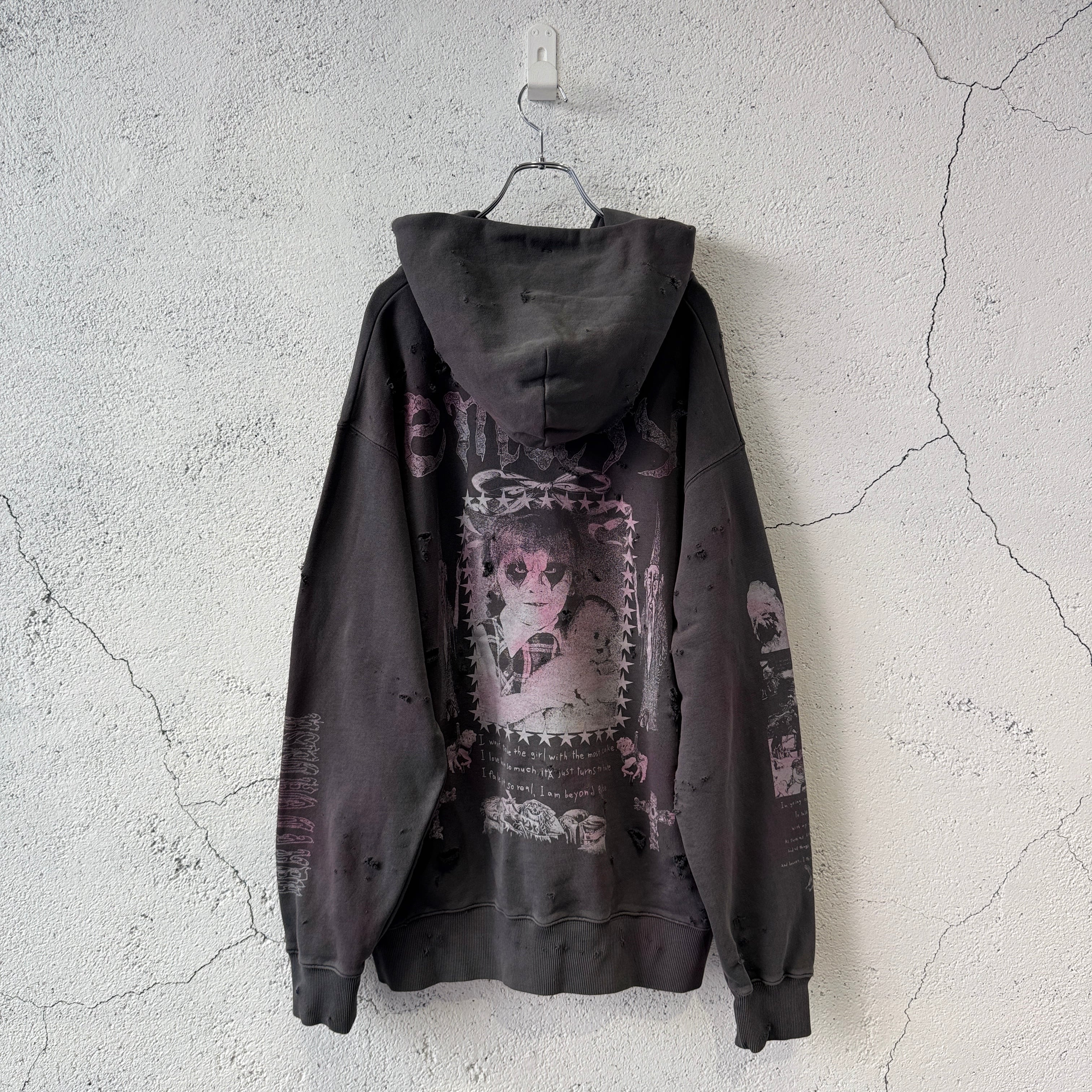 emary / Damaged Psycho candy hoodie / DEAD BLACK