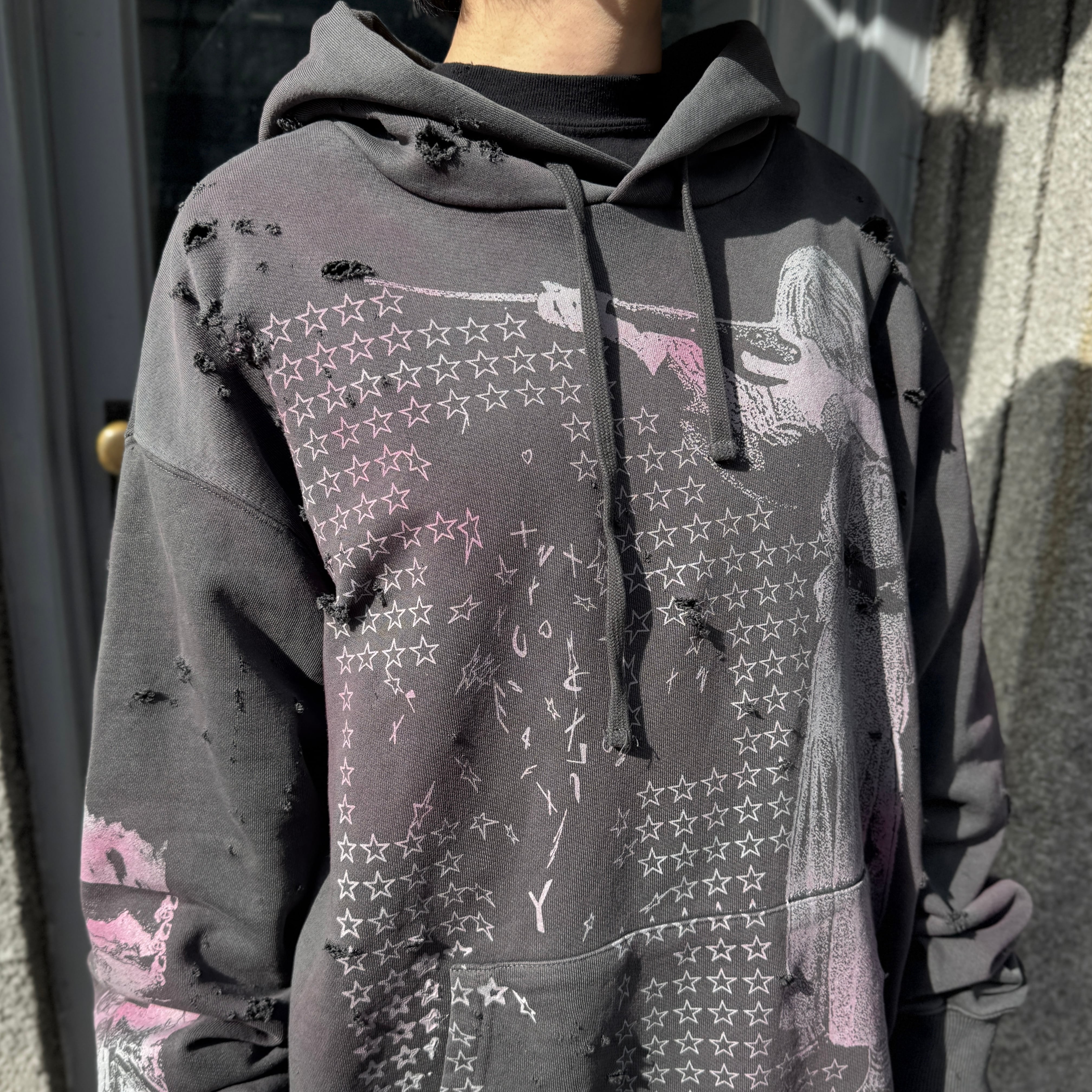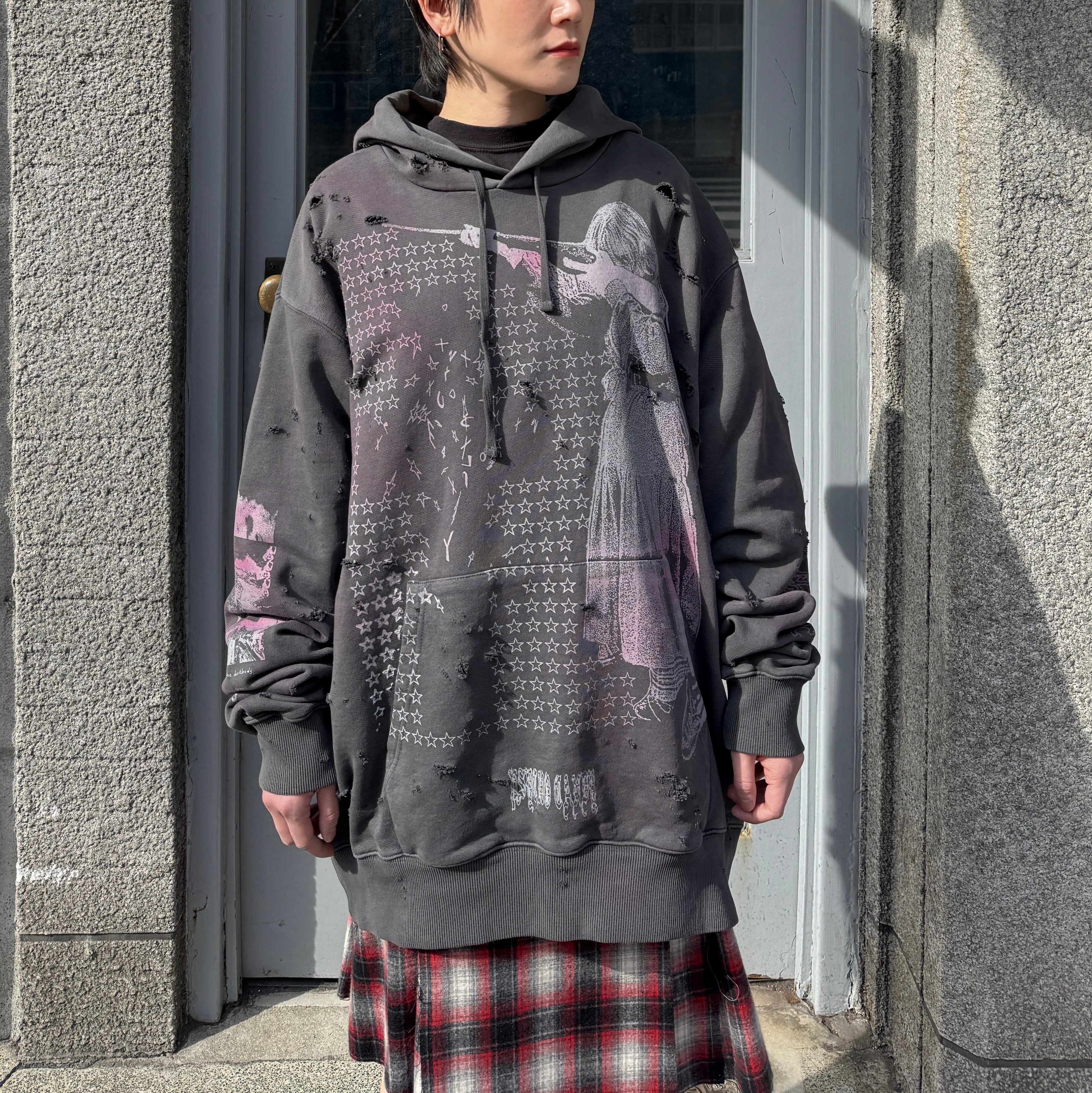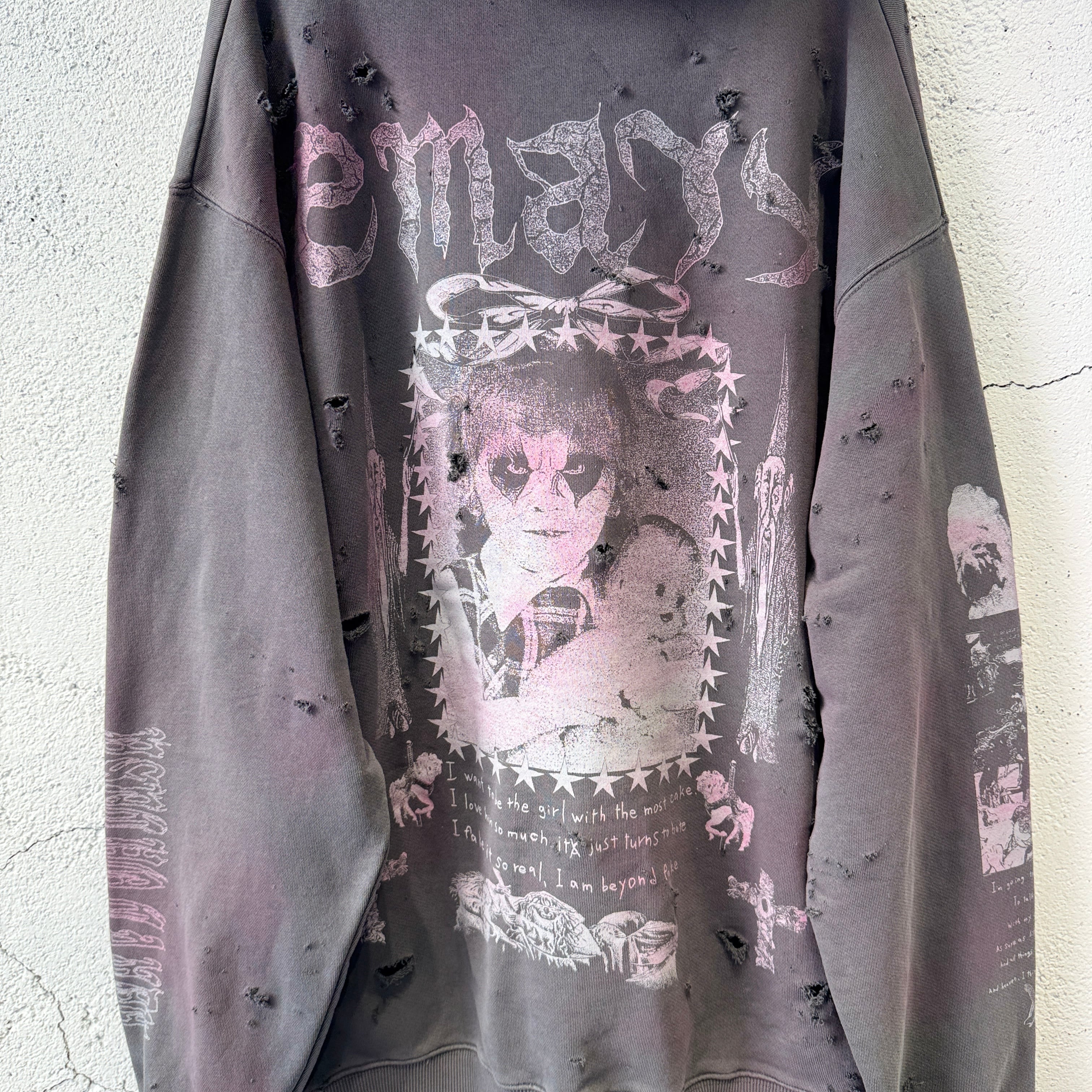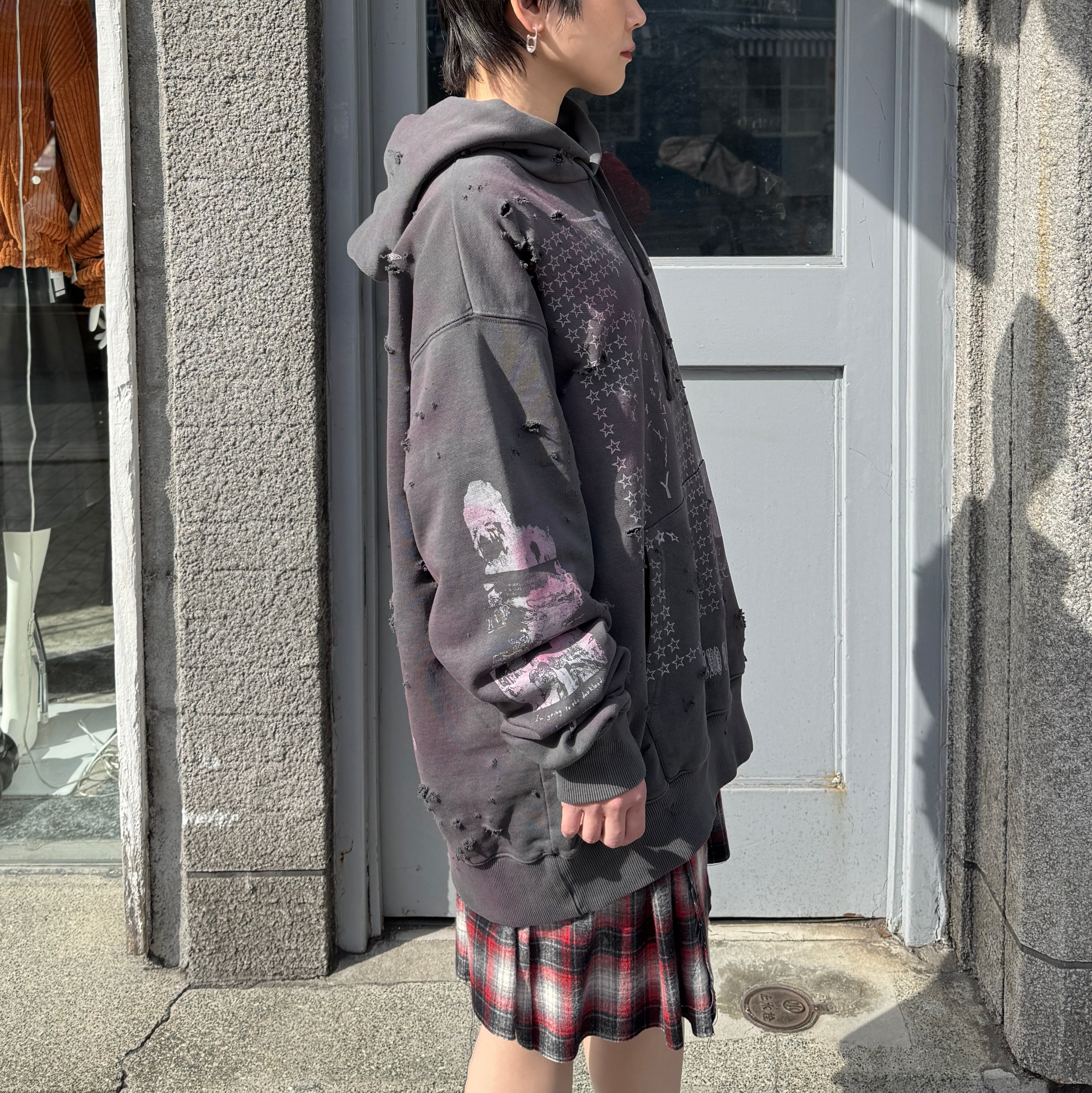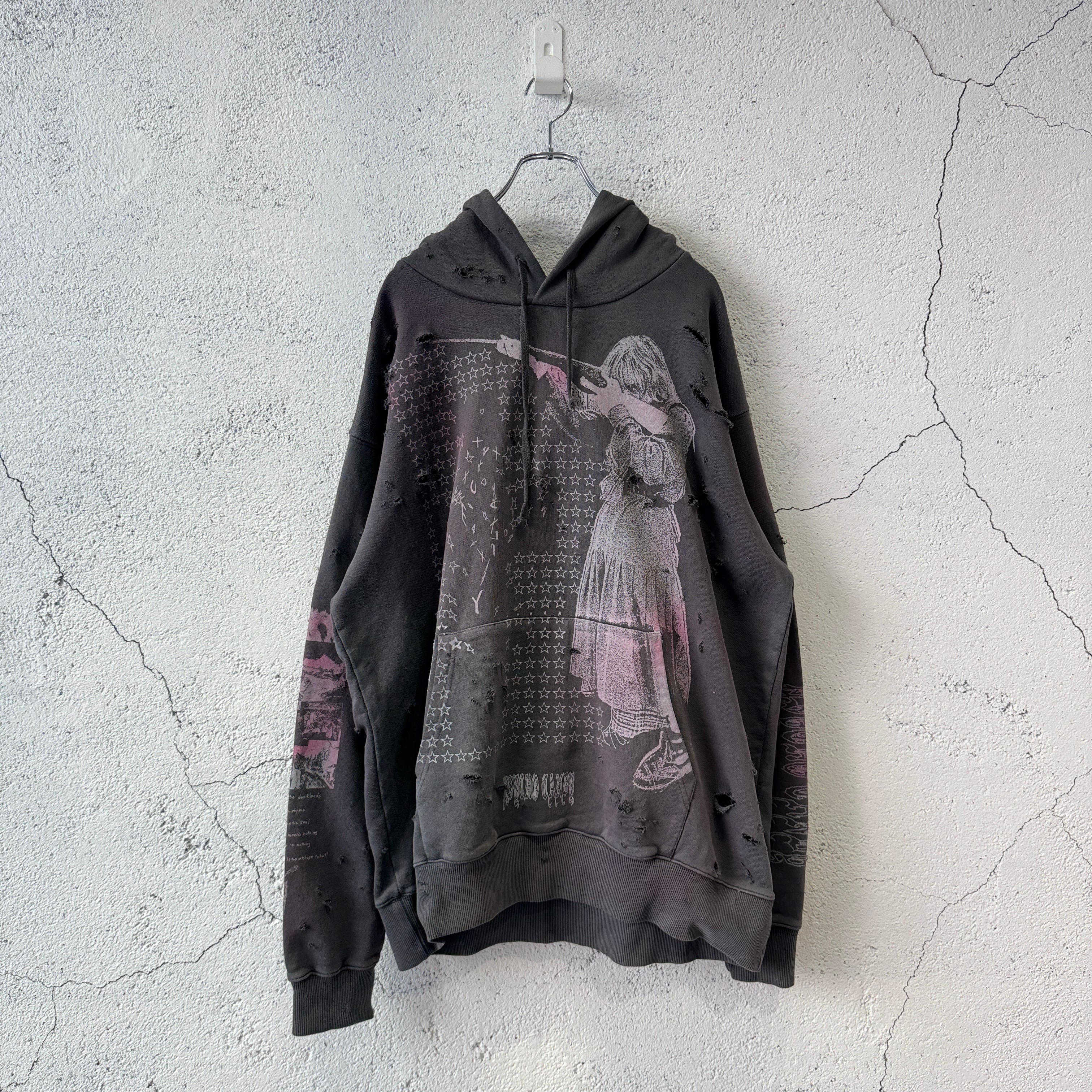 emary / Damaged Psycho candy hoodie / DEAD BLACK