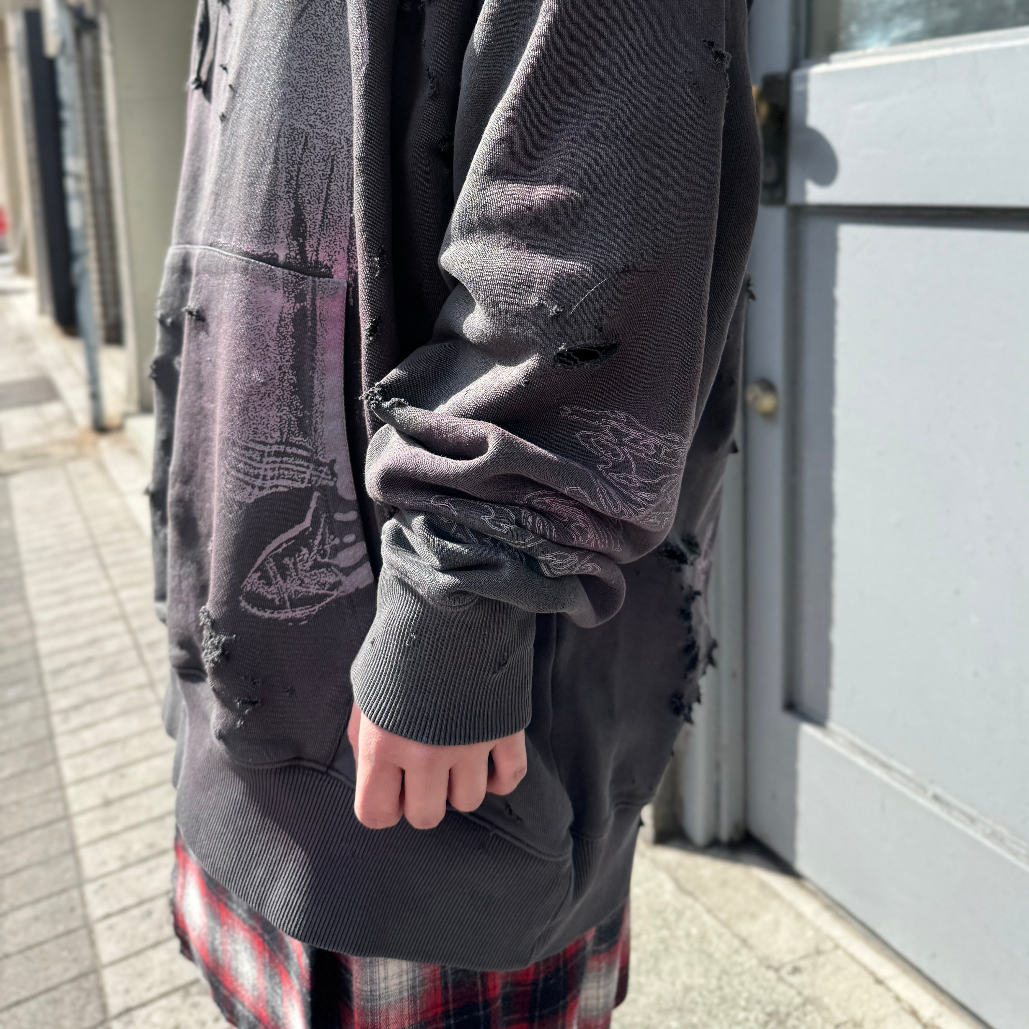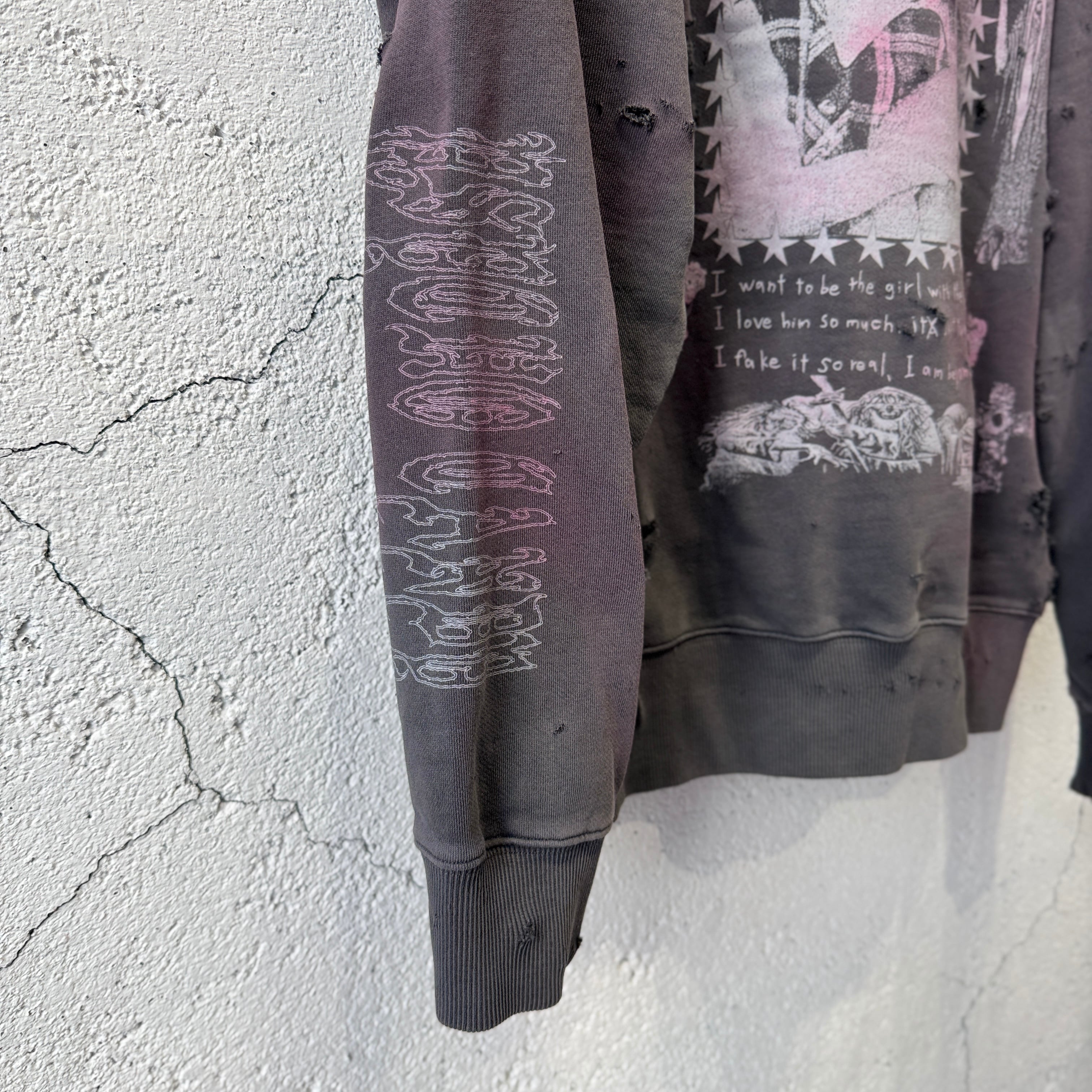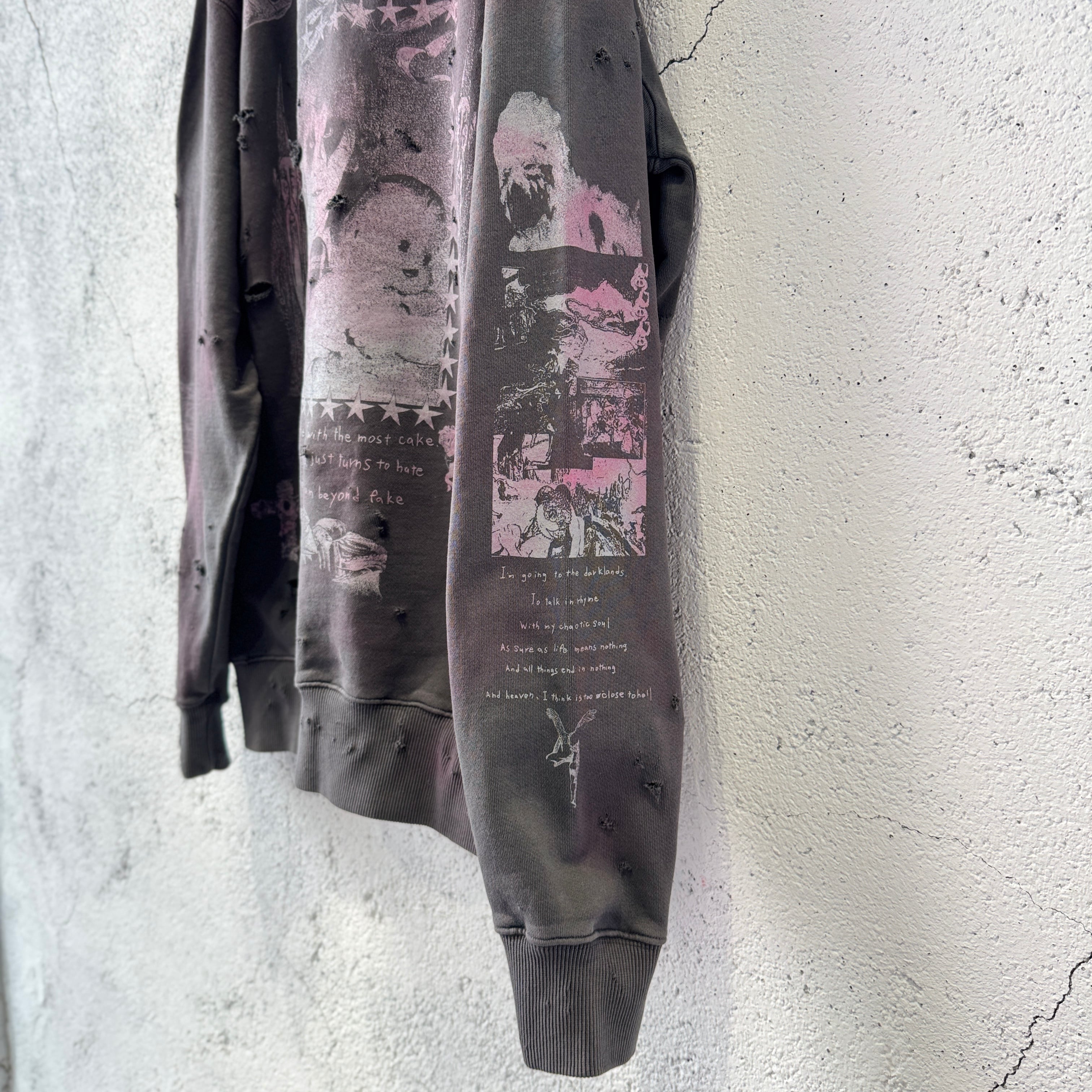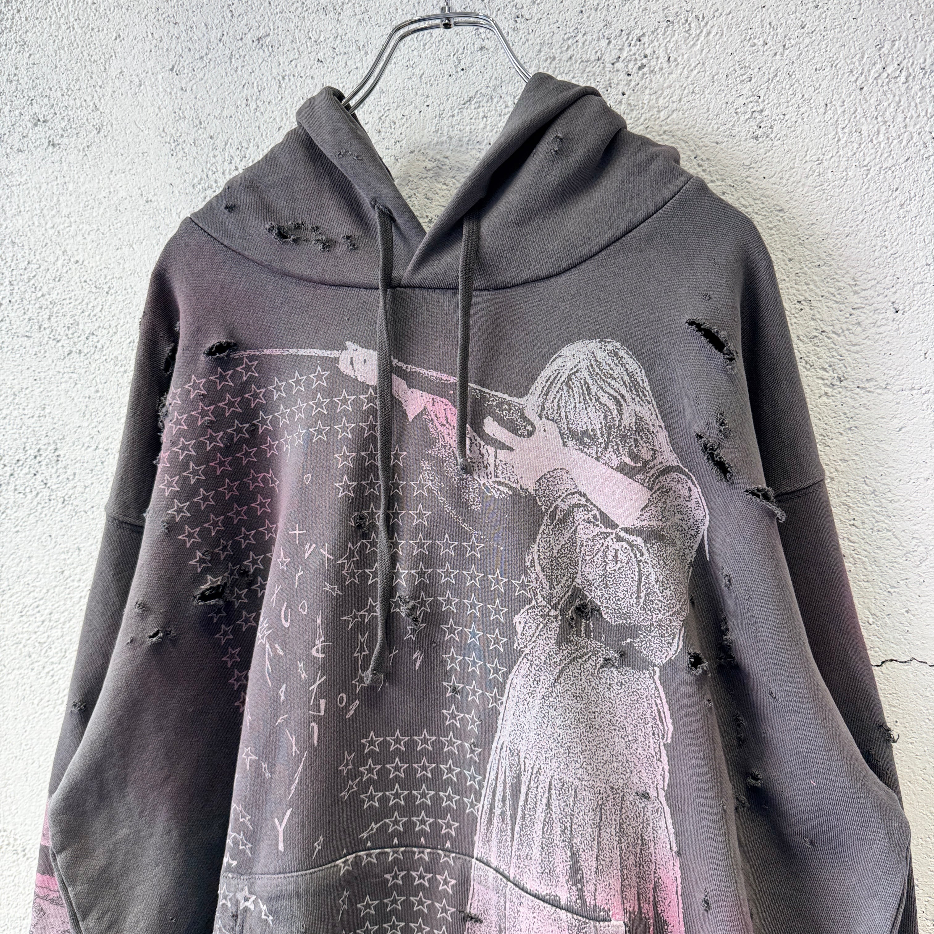 emary / Damaged Psycho candy hoodie / DEAD BLACK
