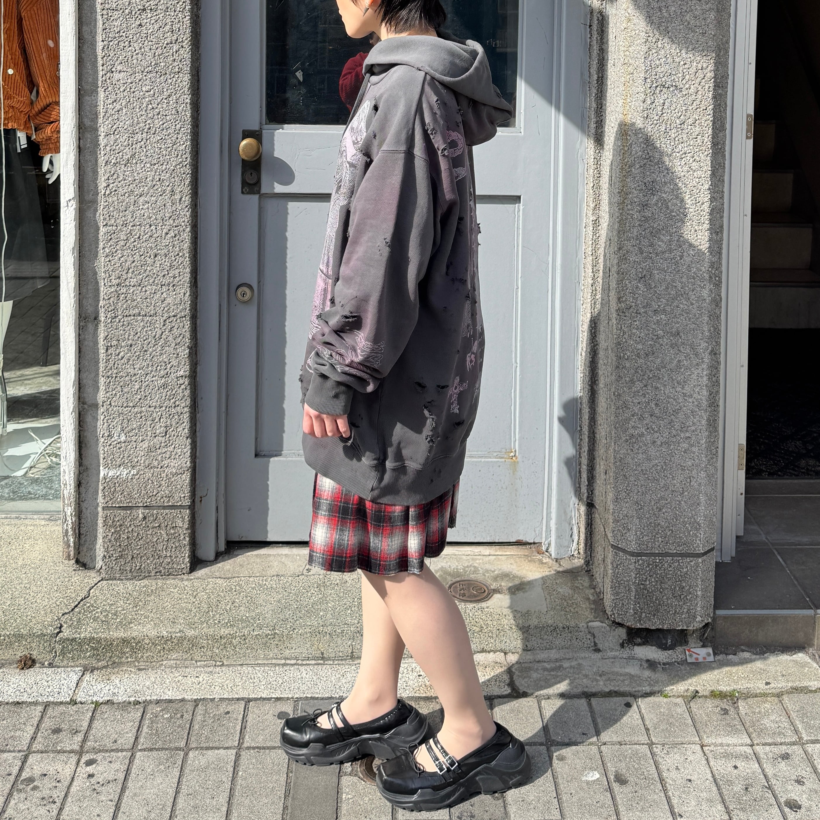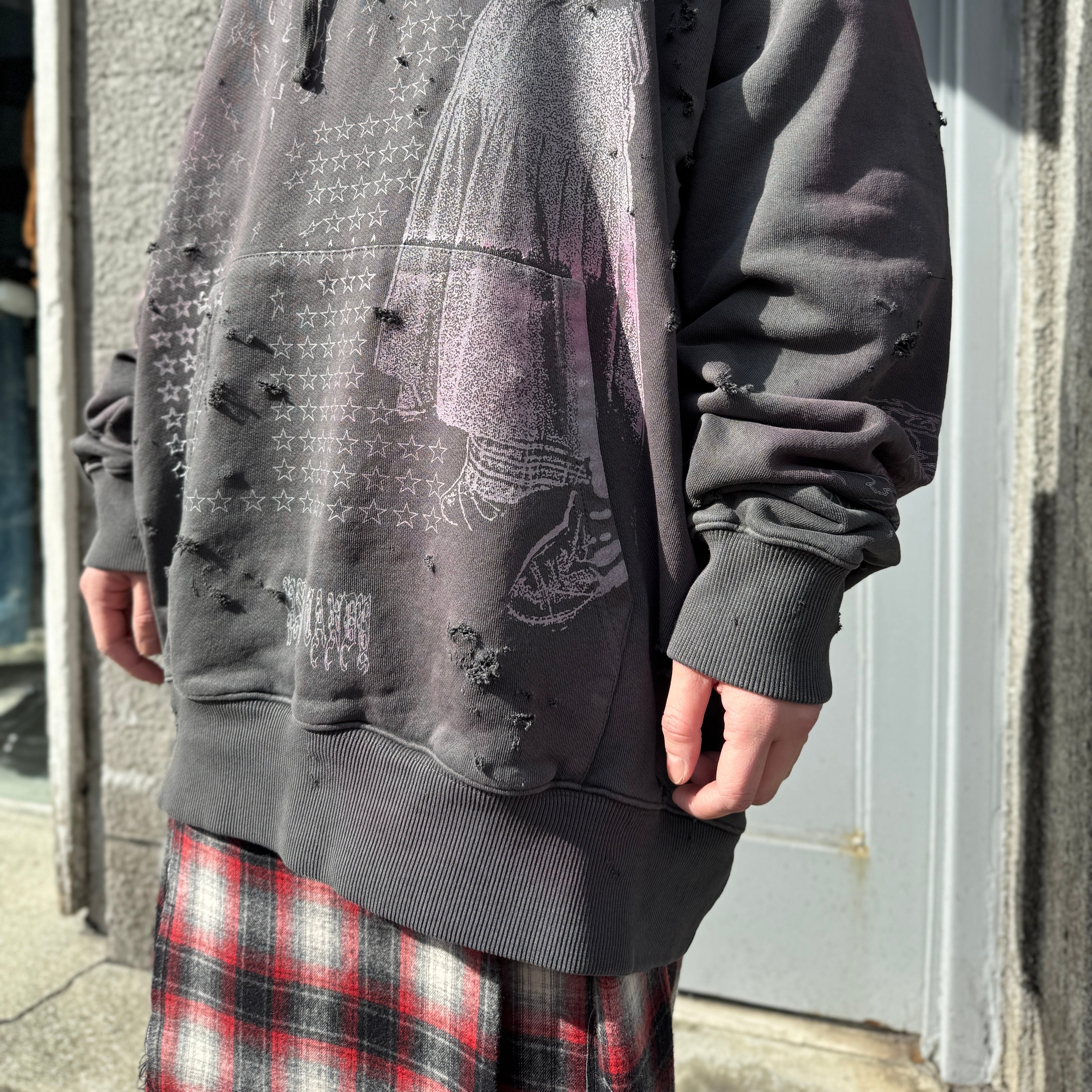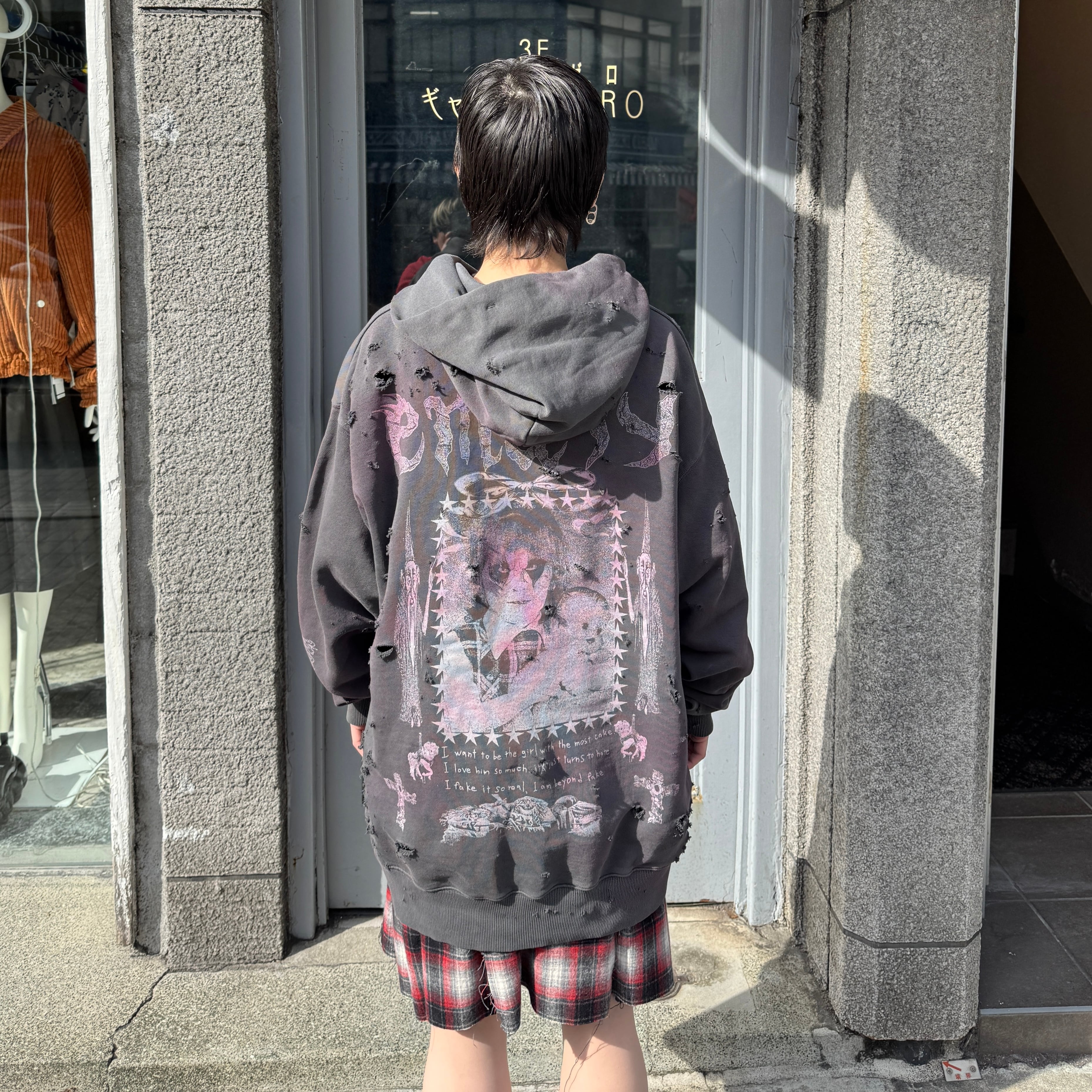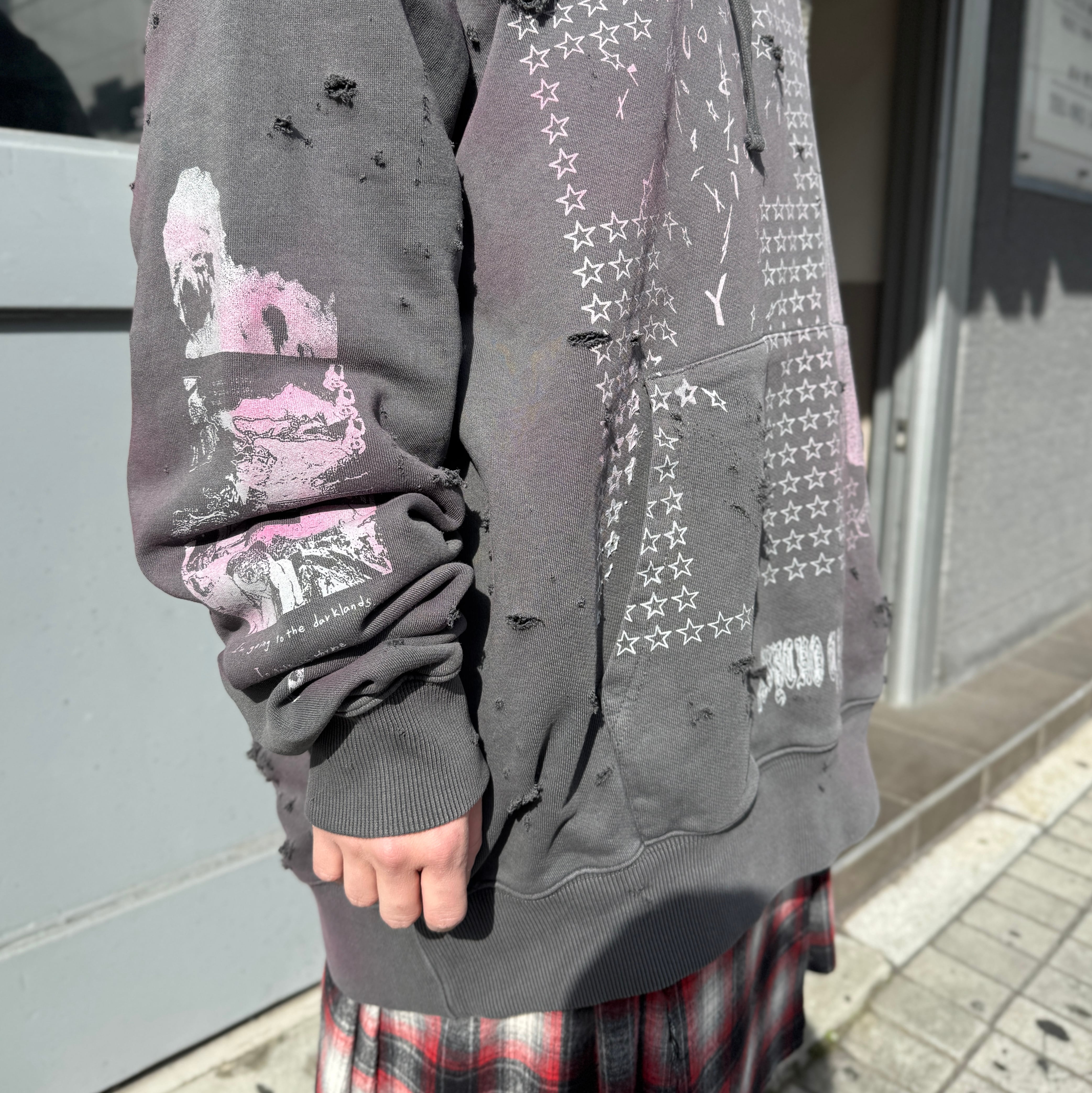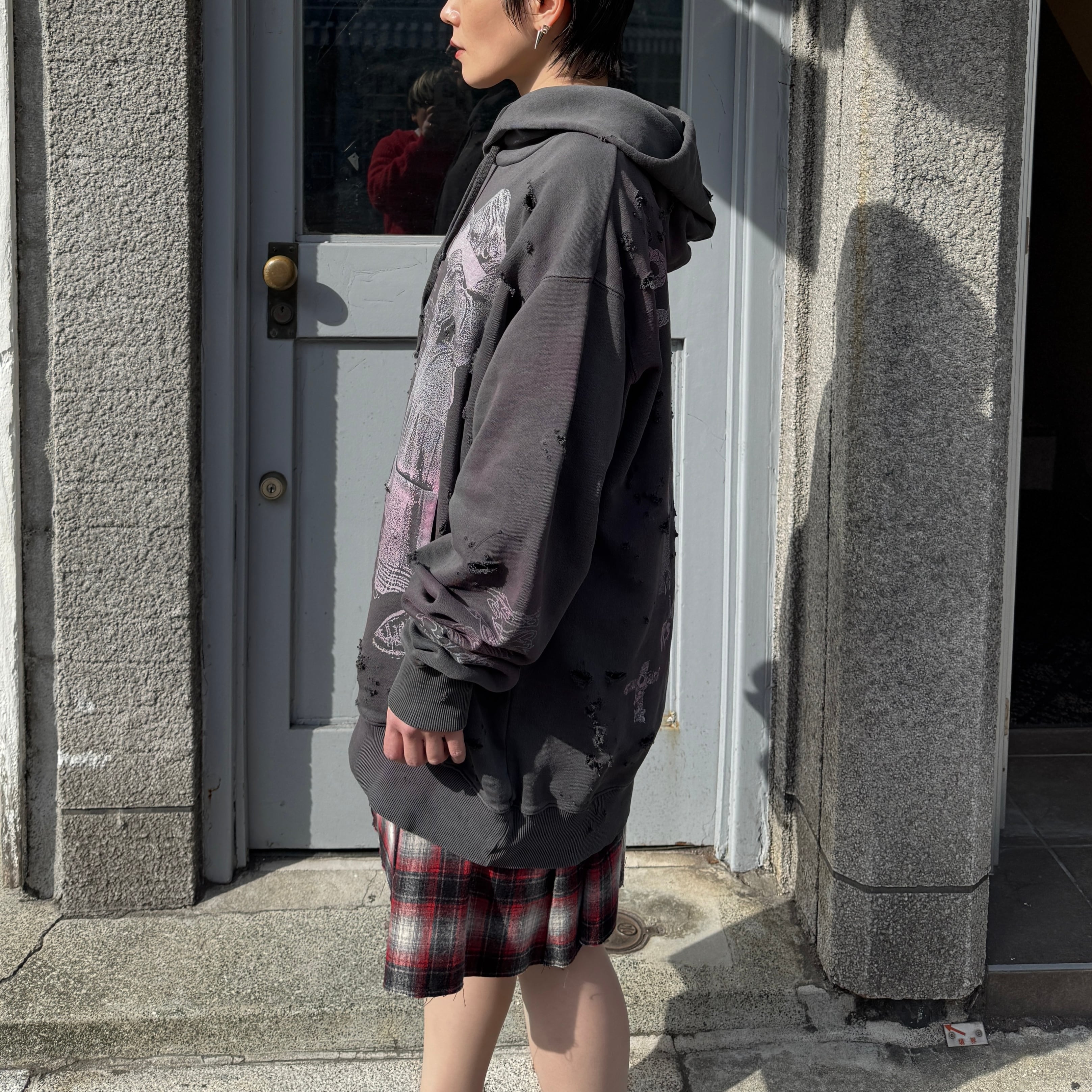 emary / Damaged Psycho candy hoodie / DEAD BLACK