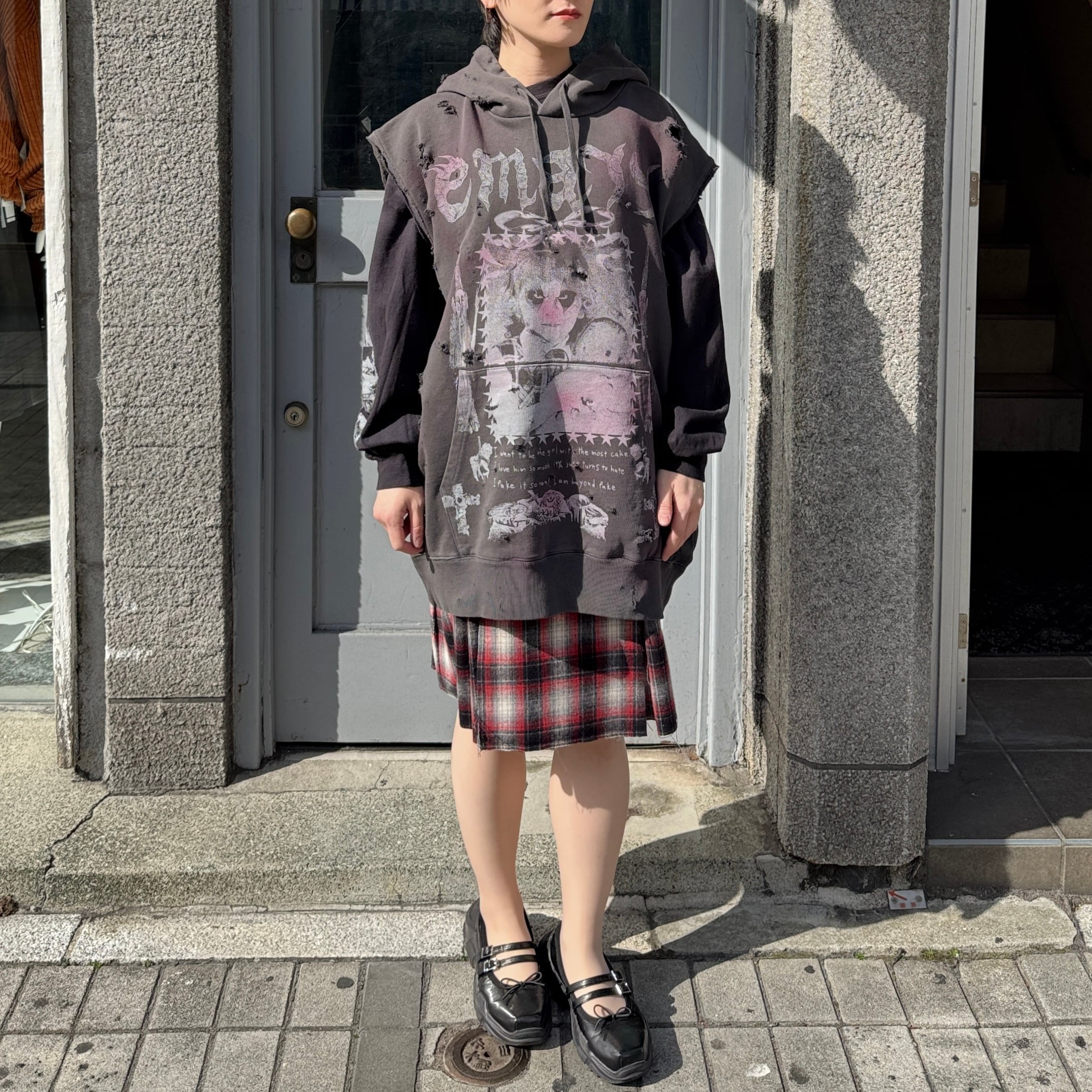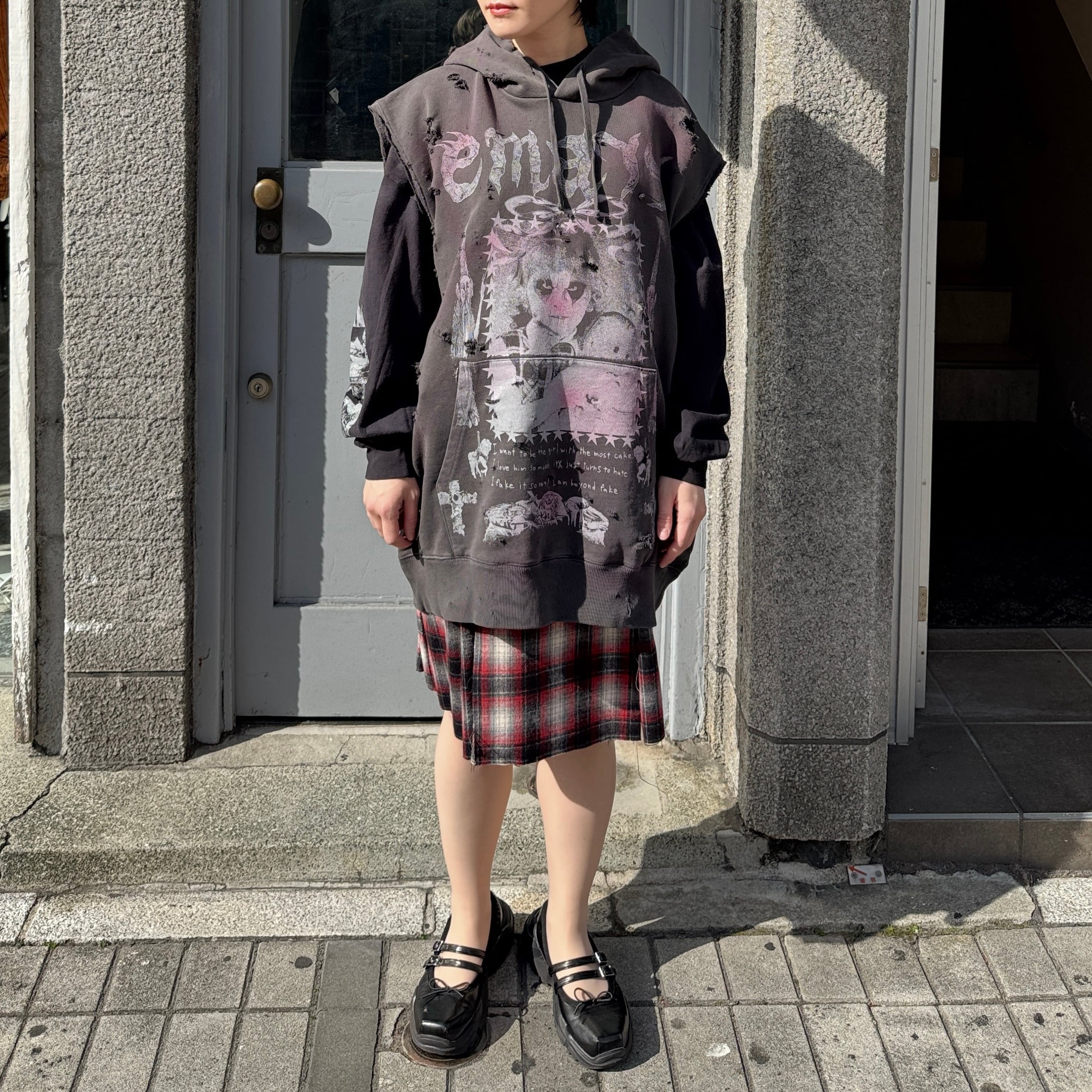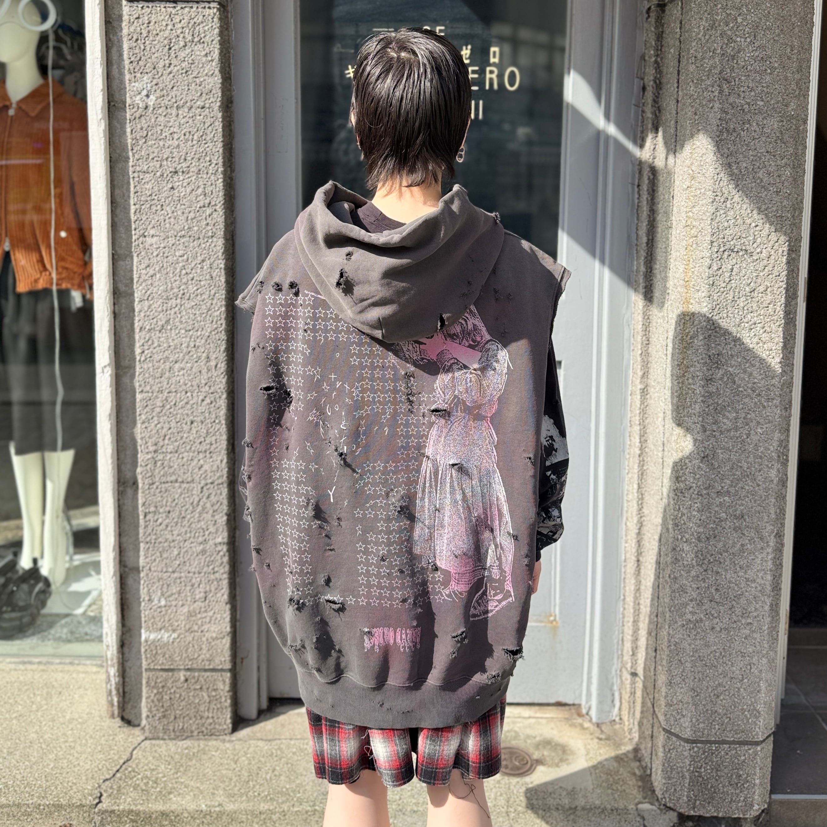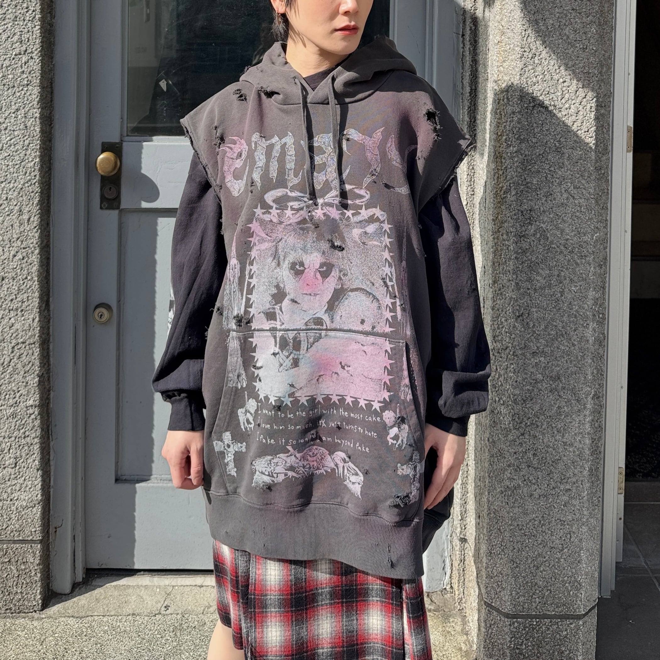 emary / Psycho candy no sleeve hoodie / DEAD BLACK
